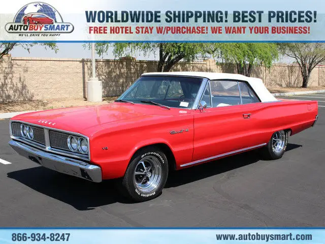 This 1966 Dodge Coronet 440 Convertible received a frame off restoration completed in 2003. Original 318 replaced with a period correct 383. New floor and trunk panels. 1989 Porsche red paint. Custom bright white interior with original stitching pattern. New convertible top in bright white. Also complete with a NOS front grille. This was a top of the line restoration finished with extreme care and a top of the line restoration.