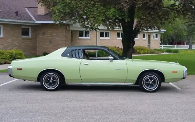 Rare mint green all original. Only one owner before me it was a daily driver in California where it was bought new and maintained meticulously. All registration and DOT registrations from 1973 included with car, with many of the maintenance records. A/C was converted to 134 and blows cold, it has power windows with new motors,power brakes front disc, rear defroster, stereo equalizer for rear, beautiful cloth bench in front with armrest in middle, original vinyl top, turn signal indicators on hood, absolutely no rust on or under car. Muffler needs replaced, has original spare tire. new window seals on door and surround. Very peppy V-8,318 2bbl, car only weighs around 3500 lbs so it is quite fast.