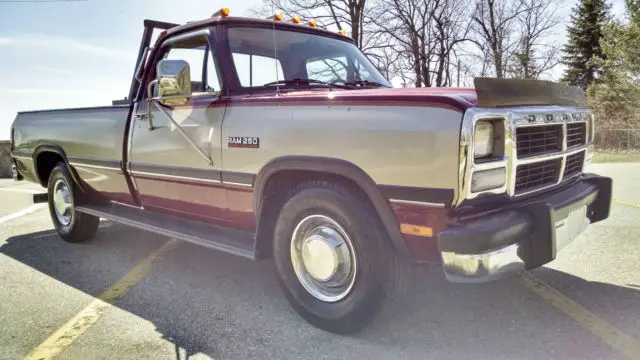 Up for auction is our 1993 Dodge W250 pickup truck that we purchased from the original owners (with 93k miles) a local retired couple who purchased it new. They used it only to pull their fifth wheel out west to avoid Michigan winters. The owner had logged ever mile, every fill up and every maintenance item they had completed since they purchased it new!