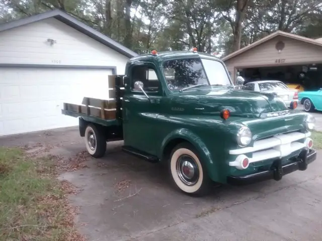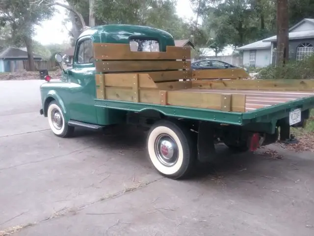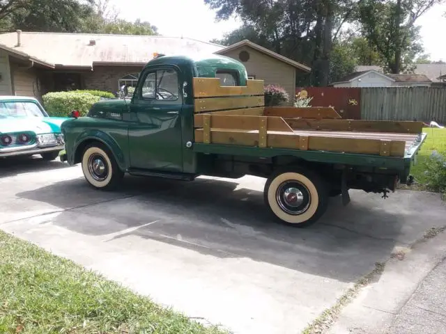 why have the same as everybody else at shows or even seen on the road like a typical chevy or ford older pick up from the 50s . well here you are ....... one rare truck, first of all its a dodge and whats really rare is its a factory 3/4 flat bed, and ready to drive anywhere with no issues at all. its reliable as hell. wont leave you stranded ever. all of it has been gone through a 2 year restore project as time permitted to be worked on. first of all its a Alabama truck ( no salted roads) this truck has no filler in it anywhere.garaged since new . completely rust and collision free since new. the chassis completely gone through front to back. the front end has completely rebuilt front axle ass, king pins,bushings, rubbers, shocks . u name it its been re-furbished front to back. and cleaned and driver detailed.all the brakes system has been gone through. everything has been replaced and resurfaced. engine and trans and clutch gone through few years back drives like new, shifts like butter .as the rad too. .take a look at the bed its awesome. and all painting was done when the truck was apart. drives and rides like new. everything is still 6 volt and everything works as it should all gauges, lights in and out and blinkers too. this truck needs nothing but to be driven. leaks no fluid,does not burn oil or smoke. starts right up every time. no rattles or shakes at all, tires have lots of tread.this is a rare truck done to a high quality driver status cond. gets looks and awards everywhere it goes. it runs cool will not overheat in hot fla weather. front and back cab glass is new with new seals. the side glass is good shape too with only minor bubbles here and there on the edges but its ok, id leave it alone, but cheap to replace. all doors and hood open and close as new. and fender to cowl seals replaced as well. all chrome was re-plated .as pix show.just a nice rare truck that needs nothing at all.just enjoy and be the envy of all those ford and chevys at the cruise -ins and shows.you will stick out in the crowd and also draw the ford and chevy lovers to this truck hands down. dare to be different.this is the truck for you.hate to sell it but its my wifes dream truck she loves the bed with is awesome wood and chrome strips,. but she having a hard time driving it lately . due to shifting is getting hard on her legs as we are getting older and need an automatic. call 352 620 4934 mike anytime after 11am to 11 pm dont let this one get away. it needs nothing at all..only 15,000 miles since total rebuild of truck .