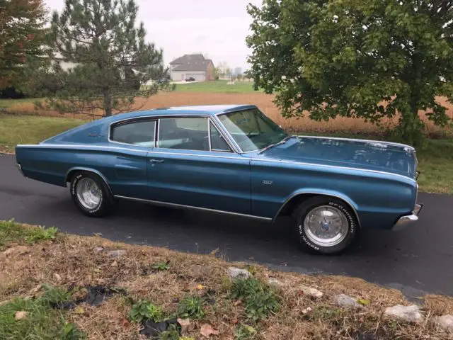 You are viewing a beautiful, highly optioned 1966 Charger. This charger spent much of its life in California and is 100% rust/rot free. The previous owner replaced the original 383 with a rebuilt, period correct 440 Magnum HP engine with stock cam and headers. The 727 transmission is a rebuilt TCI unit. The body has all original sheet metal and was repainted a number of years ago Crystal (Medium) Blue - code DD-1. The (original color was Silver Mist). All the glass including the windshield and rear window is in perfect condition. The underside and frame on this car is in amazing rust free condition -- solid clean and dry. All the sheet-metal appears factory original with no accident history.