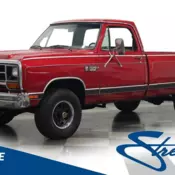 Somewhere between muscle car and workhorse lies this very cool 1984 Dodge Ram pickup. This aggressive red pickup has a performance-built V8, four-on-the-floor, and side pipes. But despite the go-fast build, it's still ready for work everyday.This pickup has one of the coolest presences around. The bold red paint, Cragar wheels, aggressive stance, and side pipes mix nicely with the factory elements like the protruding Ram hood ornament and bright front bumper. But overall, it's the blocky, muscular bodylines that make this one intimidating machine. It's especially nice that the smooth red paint highlights how straight the body is that's a near-miracle on a vehicle designed to be used as a work tool. But don't think of this one as a trailer queen. With a bed ready for a Home Depot run and a trailer ball on the rear step bumper, this is how to look cool on the weekdays and be envied as you haul round the toys on the weekends.The interior is built for comfort and easy use. The tan vinyl seat makes the atmosphere pleasant and airy. Plus, it matches nicely with the door panels, dash, and floor. Your comfort comes from resting one hand on the familiar Chrysler factory steering wheel, and the other on the handy gearshift. This pickup has a bit of a luxury touch with the wood paneling surrounding the tri-pod gauge setup, heat/defrost controls, and the factory AM/FM/cassette stereo. You also get a set of auxiliary gauges, which is another hint at something special under the hood.The moment you lay eyes on the 318 cubic-inch motor, you know there is plenty going on with the V8 beyond the flash of the air cleaner and valve covers. This one is built with performance components, including a classic Carter AFB performance carburetor, Weiand intake, and long tube headers. So while Dodge's 318 is a mainstay of reliability, this one also can put fear into others with the throaty rumble out of the side exhaust. You'll love the flexibility the four-speed manual transmission gives you. So at any point you can instantly choose from being a comfortable cruiser to a performance muscle truck. No matter how you chose to drive this one, you'll be glad to have great features like power steering, front disc brakes, and modern BF Goodrich tires backing you up.You get to be the most interesting person at the jobsite and the boat ramp all for an unbelievably affordable price. Don't let this opportunity slip by. Call today!!!