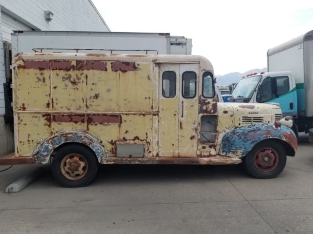 I hate doing this but I'm letting it go..this is a rare find. I've owned it for years and have never got around to finishing it the way I wanted . I have a clean and clear title for this. Low reserve..it needs to go! Its number 4 of 9 built with the a Herman box in 47 with the dodge cab. Its 99% Complete. We Had It running a few years ago..it purred and the gearbox functioned fine. The tires are in excellent condition and will last years. There's no rust. It doesnt leak at all. The Structural integrity of this is Amazing. It needs Headlights and One Ring. the steering wheel is in need of replacing due to its age and the guages have some cracked len's pictured. Some small glass pieces will need replacing but flat glass and inexpensive .Overall this is an amazing survivor that came in an unusual paint scheme...it was originally yellow bodied and blue fenders. Its had a modification on the passenger side that housed a propane tank and was actually done well. the bench seat has a 1 foot wide crawl through for easy access back. the inside pics were while it was wet after being washed out and a good idea of what it would look like if clear coated! I put for up for sale locally and getting a lot of interest so I reserve the right to end the auction early . I can be reached at 801 347 6366 or message through Ebay .