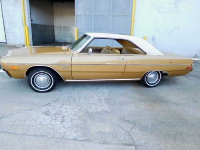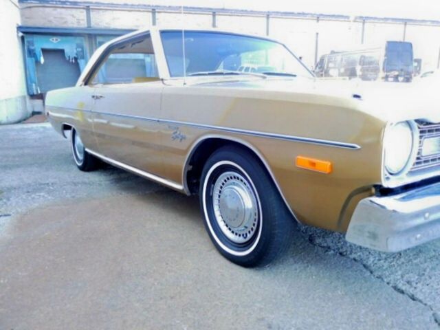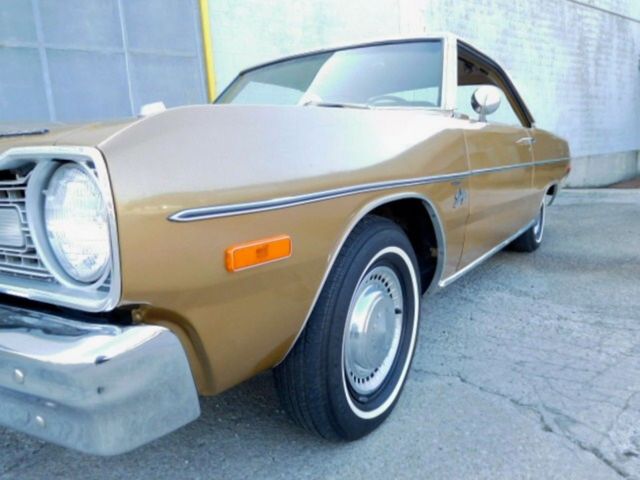 THIS IS A SHARP LITTLE DART SWINGER....SHOWING 43271 MILES...TITLE READS ACTUAL...IT IS AN OLDER REPAINT BUT STILL LOOKS GOOD...BRIGHT WORK IS GOOD. VINYL TOP LOOKS GOOD. ORIGINAL HUBCAPS IN GOOD CONDITION...TIRES ARE RADIAL. TRUNK IS CLEAN AND NEAT WITH THE CORRECT MAT. INTERIOR IS LIKE NEW...NO RIPS OR TEARS IN THE SEARTS...DOOR PANELS ARE GOOD...DASH IS LIKE NEW...ORIGINAL AM RADIO STILL WORKS....THE FACTORY AIR BLOWS COLD....IT HAS FACTORY POWER STEERING AND BRAKES....GREAT LITTLE DRIVER FOR MRS MOPAR....UNDER HOOD IS ALL ORIGINAL...NEAT AND CLEAN, BUT NOT SHOW DETAILED...UNDERCARRIAGE IS SOLID, BOTTOM OF DOORS VERY NICE....JUST A REAL NICE ORIGINAL DRIVER....READY FOR MRS MOPAR