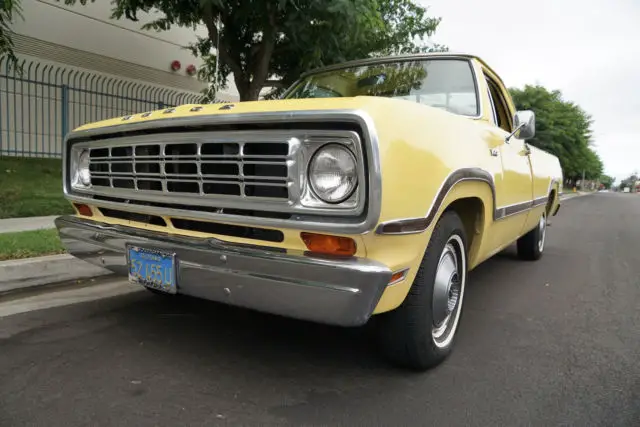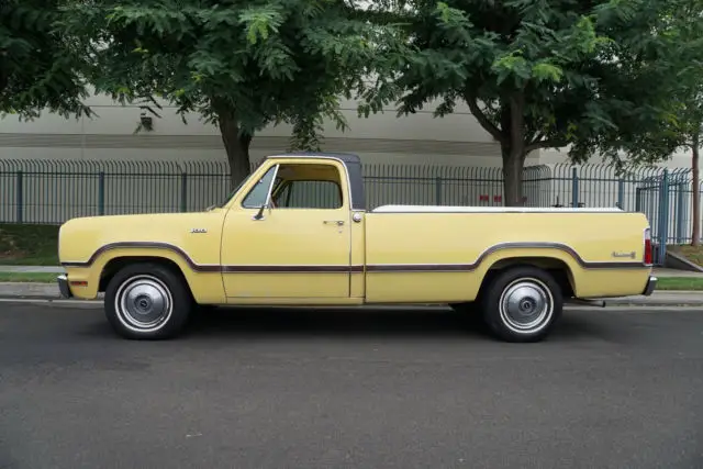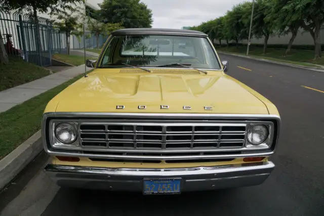 West Coast Classics are proud to present an absolutely exceptional example of this original southern California with original California blue license plates 1972 Dodge D100 Sweptline 1/2 ton 'Adventurer SE Package' Full Size Pick Up loaded with virtually every option available except the step bumper or big work truck mirrors and one of only 8 made in the rare 'Super Banana Yellow' color with the optional and top-of-the-line J code 400 V8 big block engine, 727 transmission, anti-spin differential, power... disc brakes, etc, etc and the top of the line Dodge truck in 1972 and with 88K original miles and the desirable 'Adventurer SE' trim package in it's all original 'Super Banana Yellow' paint and also boasting original factory options of:Rear Axle 3300# 323Rear Brakes 10x2.5Top-of-the-line 400 cu V8 with drop-forged crankshaft, silenced air cleaner, babbitt type main and connecting rod bearings, fast acting choke.Air ConditioningCalifornia Emission LabelsBattery 70 AmpsSpeed Control AutomaticRadioPaint Instrument Panel15x5.5 5 stud discRear SpringsPower SteeringH.D. Trailer Towing PackageAnti Spin DifferentialPower Front Disc Brakes3 Speed Loadlite Transmission50 amp AlternatorBeige TrimDual MirrorsTool Storage CompartmentVinyl RoofWheel CoversClockOil Pressure GaugeConvenience PackageSliding Rear WindowAdventurer Special Edition which includes:Standard Bench Seat with handsome color keyed tan long wearing cloth and vinyl coversBright Vent Wing DivisionBright Windshield MouldingExterior Body Side Mouldings with Wood Grained Insert along fender, door and bodySide Nameplate on Sweptline boxBright HubcapsBright Rear Window MouldingsTailgate Mouldings with Wood Grained insert & die cast nameBrigth Tail Lamp bexelsBright & Wood Grained Instrument Panel TrimBrigth & Wood Grained Instrument Cluster Face PlateColor Foam Core HeadlinerInner Door Trim Panels with integral armrests, nameplate and lower vinyl door storage pocketBrigth Door Sill Seal Retainer & tread plateBrigth Trim around accelerator, brake & clutch pedalsFront carpeting, color keyedCigar LighterHorn BarPurchased new on 11/17/1971 and reportedly one of only 8 finished in its original 'Super Banana Yellow' factory color paint with its original matching # 400 Big Block V8 engine with 88K original miles and with air conditioning equipment, power steering, power brakes, fairly new tires, Adventurer SE package with the attractive tailgate and a decorative paint filled body mouldings extending from front to rear with bright bumpers and hubcaps, color keyed seat interior and trim with matching carpets and kick panel carpet and dashboard and door trim panels.This truck is one extraordinarily rare and mostly all original incredibly honest truck which must be seen and driven to be fully appreciated - the original Big Block 400 V8 engine is extremely strong and responsive, the transmission shifts smoothly through the gears and the engine temperature always remains cool.In summary, this is one very fine example of this increasingly collectible and desirable 1972 year of the legendary full size Dodge D100 pick up in rare turn-key ready, daily appreciating, daily driving and daily head-turning condition and an all time classic American truck with it's original 400 Big Block V8 engine and fully loaded with factory options and the top-of-the-line trim package and engine with only 88K original miles!