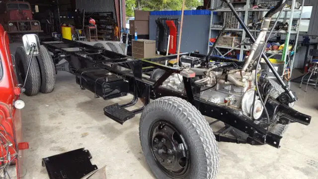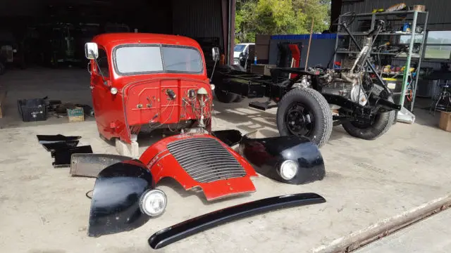 Engine is factory flat-head, inline 6 cylinder, (~250ci) gas motor and has recently been started and ran. Transmission is the factory 4-speed manual with a 2-speed axle. Original 24,607 miles, with the original Goodyear tires. There are two Carter carburetors (rare), one was recently rebuilt and one was a spare. There is also a 1947 Dodge COE that was used as a parts truck and reference for rebuilding that can be taken also, depending on the negotiated price. The truck was undergoing a partial restoration when the owner passed away, thus is partially disassembled. The family is selling the truck as-is and will be taking the best cash offer by November.