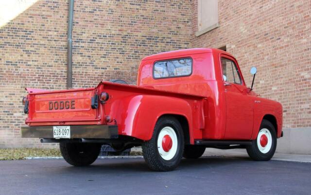 1954 Dodge C1-B6 Pickup EXCELLENT DRIVER 230ci Six / 3spd Manual 116” Wheelbase VIN: C1-B6-116 C1: First Series B: Half Ton 6: 217ci Flat Head Six Vehicle Number: 82358134 Trim Tag Options: 100, 110 Engine: D42-402I53 (230ci Dodge 6) We purchased this beautiful ‘54 Dodge C1-B6 from a gentleman in Minnesota who had owned it for the last ten years. The truck had been restored before he bought it, and it served as a routine driver throughout his ownership. As it sits now, this is a very nicely sorted, clean, dry truck that is ready to be used and enjoyed by its next owner. Exterior: - Please see the video along with the listing, as the truck is shown in detail. Blemishes are all shown close-up. Blemishes include a spot on the back of the cabin where the paint is showing its age by way of light checking, a couple spots of overspray on inside weatherstripping, as well as a partial crack in the lower passenger window (does not inhibit use of window). - Paintwork, although older, presents quite well. This truck has been garage kept and responsibly owned and it shows. Step panels are nice and clean, not scuffed up and worn. Beautiful wood-lined bed is in great shape, not scuffed up and faded. Stained bed looks just right against the red and black exterior. Black vinyl bed cover is in decent shape and fits nice and snug. Two small punctures on it, bits of fraying around the outside buttons. - Doors open and close nice and smoothly, as does the rear hatch and hood. No slamming or anything like that. - Polished surfaces are all in excellent shape. Mirror-like finish, minimal oxidation or pitting. - Light lenses are clear and crack free. Lights and signals are all functional. - Wheels are free of any oxidation or damage. Cooper Discoverer AT3 tires are from 2011 and are in excellent shape. Spare is older and fairly bald, but with no dry rot. Interior: - Again, please defer to the photos and video. Interior is very nice, albeit bare-bones. Lower doors show some small scuffs, no actual damage though. Body-colored dash looks great. Seat bottom is freshly reupholstered in black vinyl and is free of any wear whatsoever. Fuel gauge and odometer are not functional. Odometer reads 71,747 miles, but we are unsure of exact chassis mileage. One-piece rubber floormat is in nice shape, with just one crack/cut. While this truck does have a heater installed under the passenger side of the dash, it does not blow air out with force. There is also a crack in the inside rear view mirror. Mechanical / Underbody: - Please take a look through the underbody photos, as the truck is shown in detail. Underbody is excellent. No rust whatsoever. - The truck runs and drives beautifully. Truly no tendencies or noises of concern. It starts right up first push of the starter pedal, idles nice and steady, pulls hard through the gears with no hesitation, shifts smoothly, has great clutch feel with no chatter, and the ride quality is outstanding. No shakes, rattles, pulling under acceleration/braking, etc. Suspension is nice and tight, eats up bumps with ease. Very much a well-sorted, confidence-inspiring driver. - While originally a 217ci six, the truck now has a 230 in it. The engine wears a tag from a rebuild, “Montgomery Ward Remanufactured, #97454, Bore .060, Rods .030, Mains .030”, and there is record of an inspection and subsequent brake service in 2012. With any further questions, requests, or to discuss purchasing, please reach out to Jake at 773-303-6122.