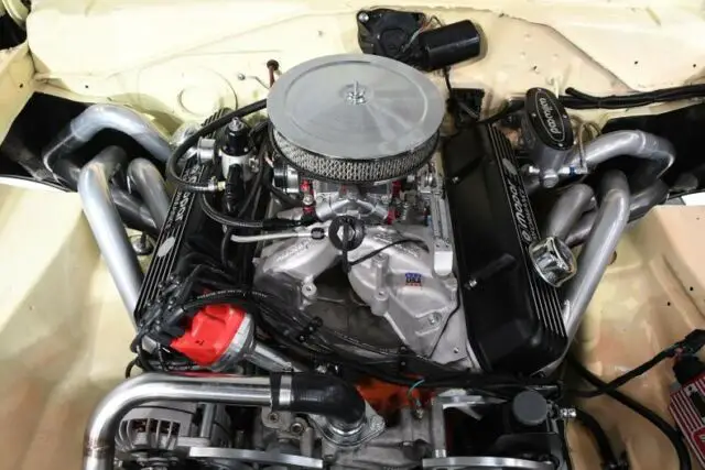 ENGINE COMPARTMENT: This is where it gets really good! A $12,000 performance built 511 with 595 horsepower and 680 lbs of torque sits under the hood. Started as a 440, it has been stroked, balanced and Dyno tuned. Some of the features include Comp roller cam, aluminum heads, roller rockers, billet timing chain and much more. On top it has an Edelbrock high rise intake, giant Quick Fuel carb, custom fuel delivery system and throttle linkage and MSD ignition system. Has $1,777 Nitros system, the owner only went through one bottle. Those are some really wild Hedman competition headers going through the fender wells. The front of the motor has March brackets and pulley system with serpentine belt. Runs cool thanks to an aluminum radiator, water pump and overflow bottle and dual electric fans. Has Wilwood master cylinder.