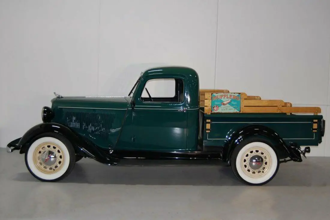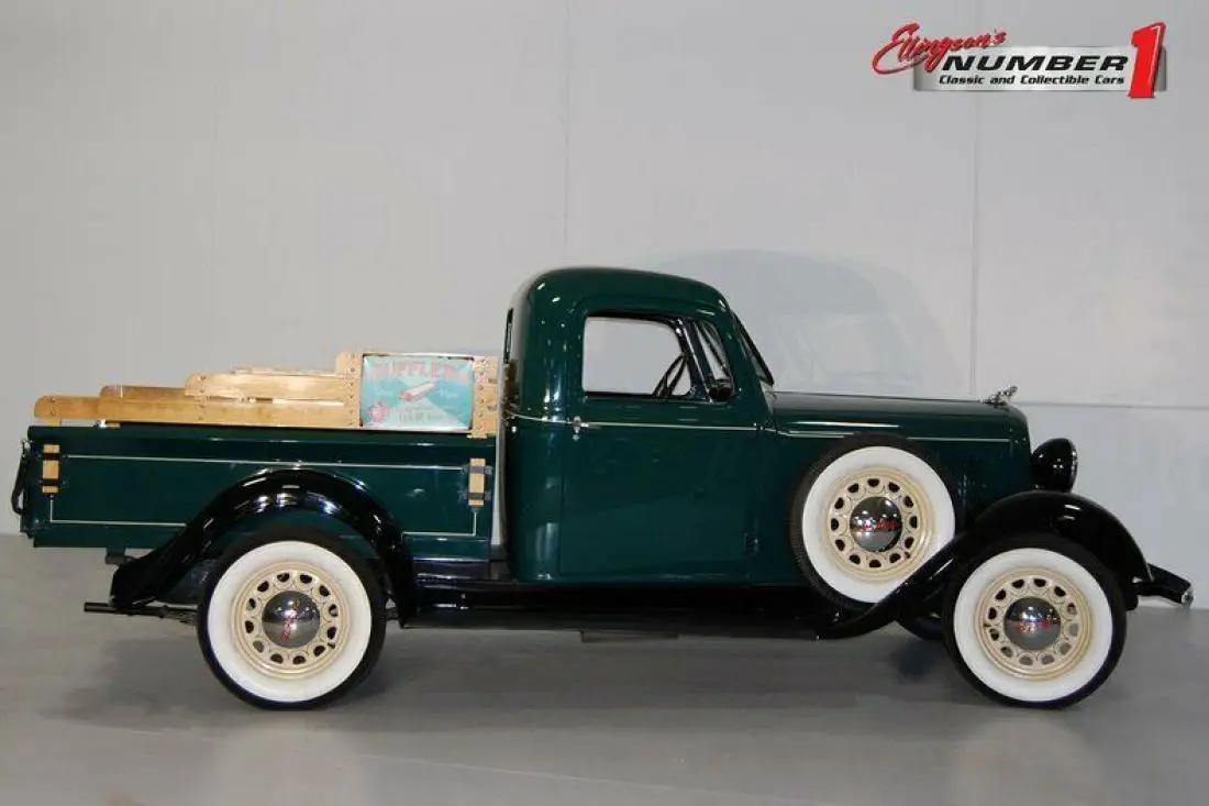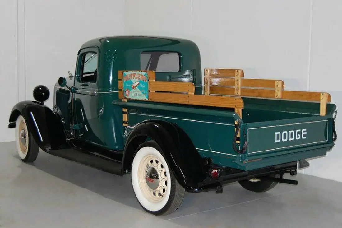 A 1936 Dodge 1/2 Ton Pickup is a rarity indeed. A 1936 Dodge 1/2 Ton Pickup this nice is a REAL rarity. Fully restored classic Green and Black with excellent chrome, this one stands out. A crank out windshield, chrome hubcaps, and 5 new wide whitewall tires make a statement. The interior is perfect including the factory gauges. The inline 6 cylinder, and 3 speed transmission work smoothly on this Mopar.