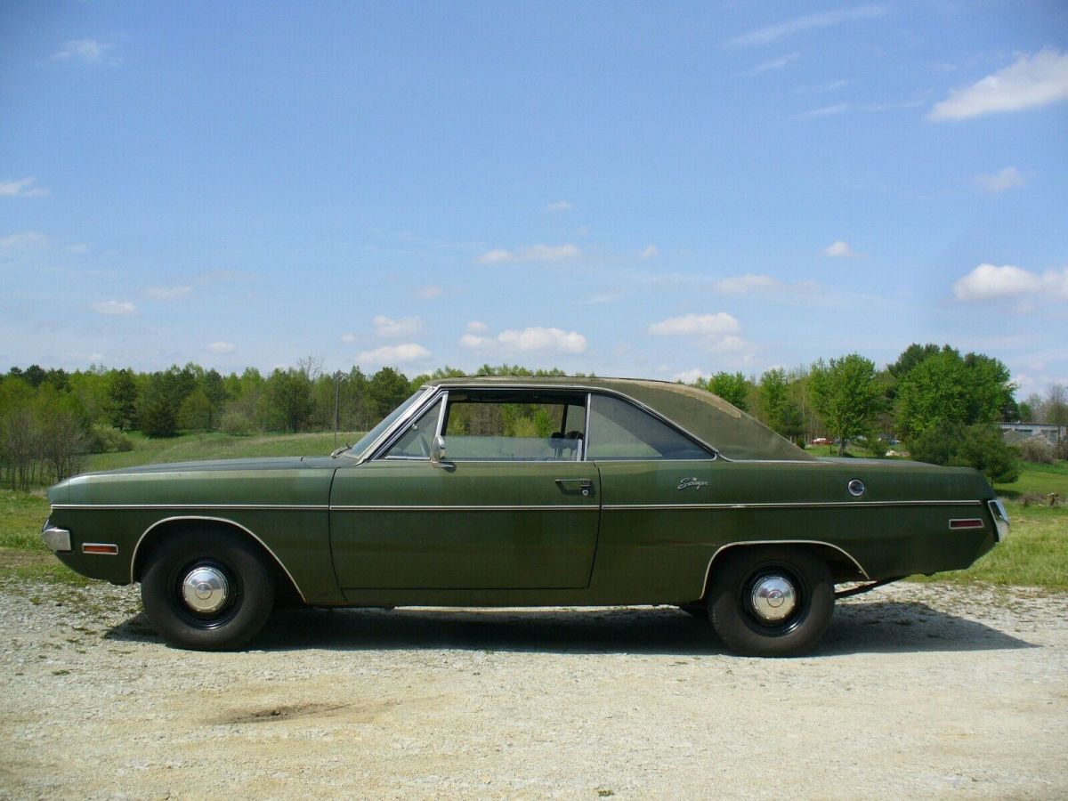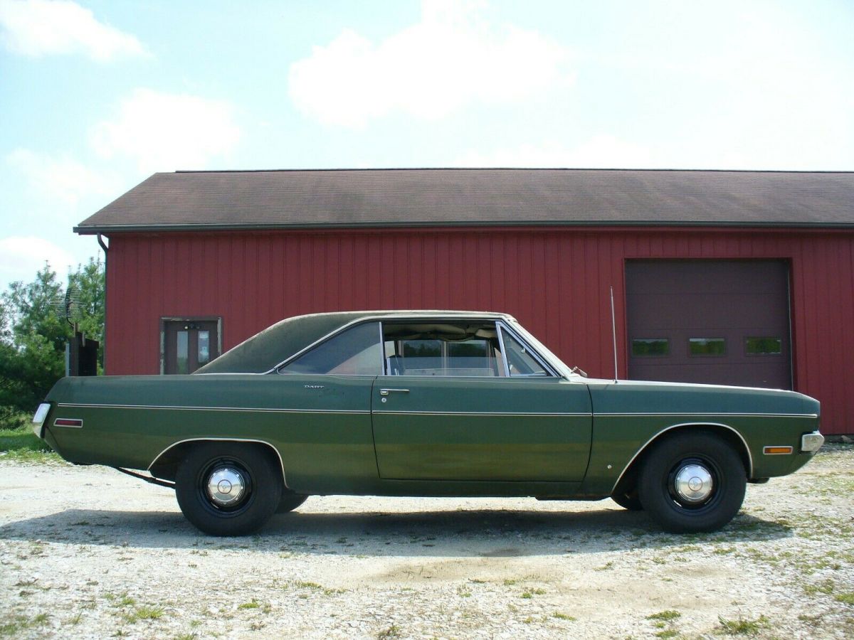 1970 Dodge Dart Swinger, factory V-8. Factory 318 engine and 904 automatic transmission 8 3/4 rear axle. Purchased the car in 1998, out of Georgia, always stored heated and dry. The grill is in very good condition. Has new U-joints, and fuel tank sending unit. The Dart runs and drives good. The coolant temp gauge is not working. The rear axle has a slight whine to it. The power steering system has a slow drip. The car was bumped on the back bumper, dented rear bumper. The car comes with a good metal dash frame and a front fender corner piece. As shown in picture. The car needs restored. Sold as is. It's a great car. Thanks for looking.