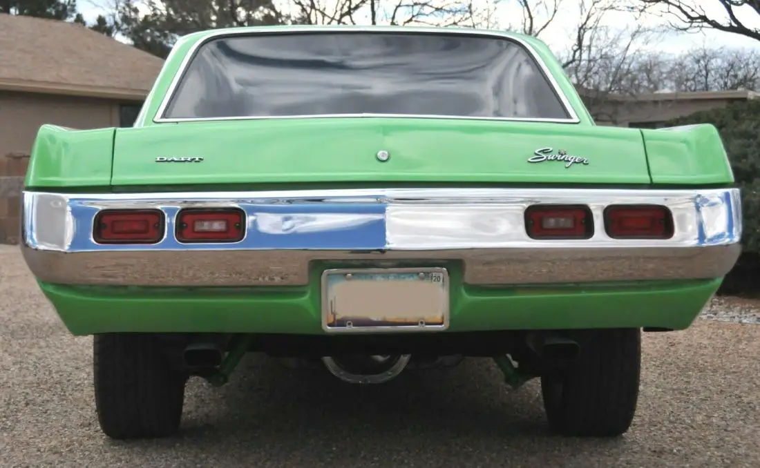 Time to move on to another project. Parting with my restomod 1971 Dart Swinger. I spent more than three years restoring and modifying this Swinger and the results show. It has won multiple awards at numerous car shows over the last few years. Car has approximately 860 miles since completion of the build in 2016. Photos of complete restoration process as well as all parts invoices are included.Interior:Auto Meter Ultra Lite guagesAll new weatherstripping including rubber stoppers and body plugsA-body acoustic shield kitNew front/rear door panel cardsClear powder coated custom stainless steel dash panelNew headliner and carpetClassic Auto air conditioning system Sony audio(CD) systemNew rubber trunk mat w/spare tire wall boardRon Francis MOPAR ACCESS 24/7 wiring kitNew sunvisors and door jamb switchesExterior:New bearings and seals in rearendNew gas tank sending unitNew Prothane (polyurathane) suspension bushing setNew parking lamp and tail light lensesDisc brakesNew exhaust from headers on back including chrome tipsNew hood scoop bezelsRechromed bumpersAll stainless trim has either been polished or replacedAmerican Racing Hot Rod Torq Thrust II wheels, 16x7 w/4" back spaceGoodyear Eagle GT 225/50R16 tires with 860 milesNew Sherbet Green Pearl paint.Mechanical:318 ci V-8904 automatic transmissionWeiand aluminum intake manifoldEdelbrock Performer series 600 CFM carbLokar universal gas pedal and linkage assemblyAluminum 3-row radiator with overflow tankMarch Serpentine Brackets & Pulley systemElectronic ignitionElectric 'Puller' fan and wire kitTrunk mount battery cable kitTaylor Vertex green poly wiresJet-Hot Topcoat solid ceramic header coating (green)This Dart is in immaculate condition. It runs and shifts flawlessly.You will not be disappointed.