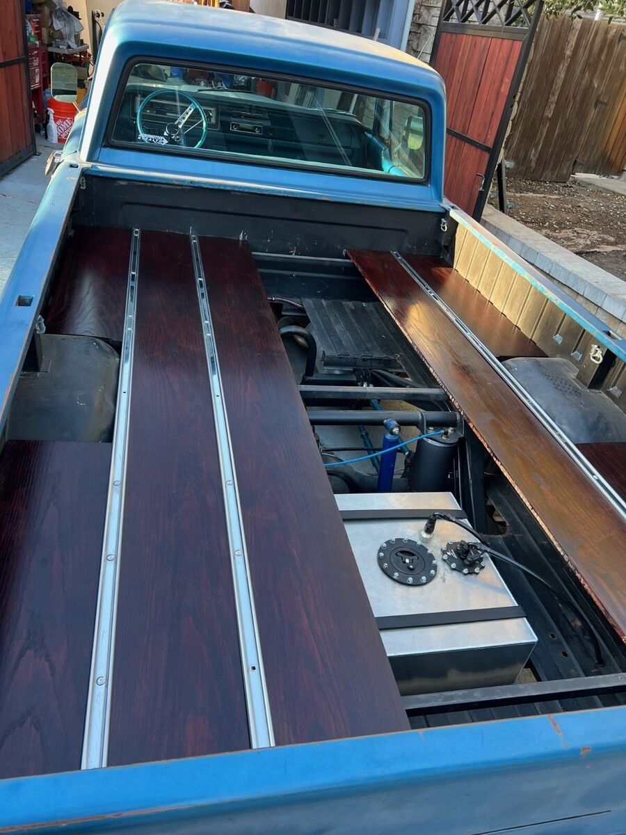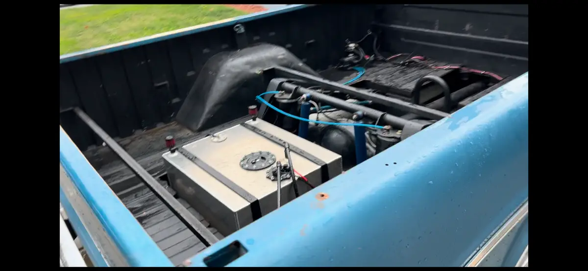 Body- mild dent on passenger side of bed. The rest of it is solid and rust free. No rust in roof rails, no rust in floors, rockers, bed, fenders. Very very, small hole on driver side floor pan. I did not install Dynamat or carpeting on floors so next owner can see condition. Obviously, the bed has been cut to accommodate the 4-link rear suspension and fuel cell. Previous owner had a shop make a raised bed with a fuel filler neck. I had to remove it when I upgraded to a larger 20 gallon, Aeromotive Stealth 340 fuel cell, (baffled and in-tank fuel pump).