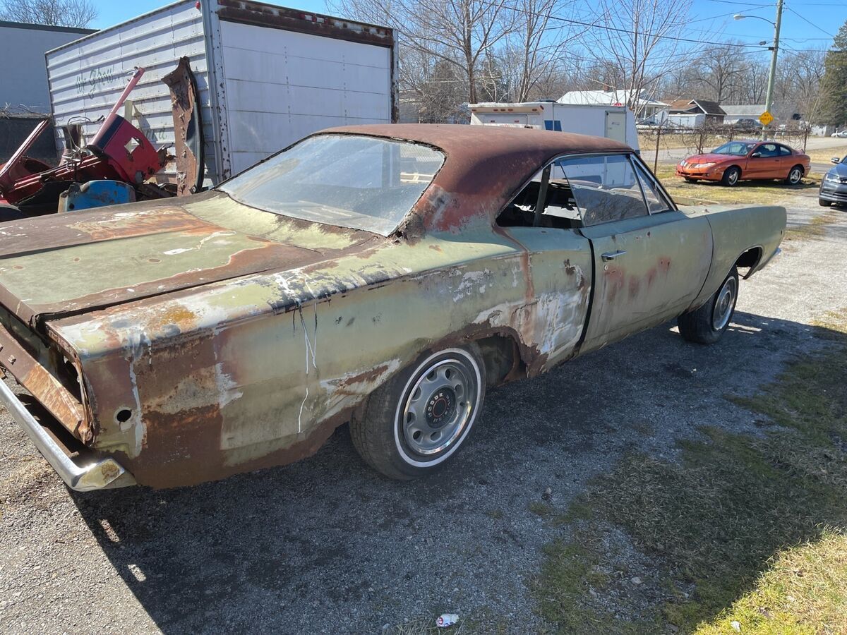 VERY HARD TO FIND 1968 CORONET R/TMAJOR PROJECT BUT WITH CLEAR TITLE THIS IS PRICED TO MOVE AND A STARTING POINTGREAT FOR THE CRAFTSMAN THAT CAN ATTACK THIS TYPE OF PROJECT.CAR IS LOCATED IN LORAIN, OHO WHICH IS 30 MILES WEST OF CLEVELAND OFF I-90.WHAT YOU SEE IS WHAT IS INCLUDEDTHERE IS NO STEERING COLUMN BUT THE CARS ROLLS STRAIGHT AND TIRES ARE EASY TO TURN FOR STEERING THAT WAY AND THE CAR ROLLS VERY EASY AND TIRES WILL HOLD AIR FOR LOADING, BUT DEPENDING ON LENGTH OF TRIP COULD NEED AIR FOR ROLL OFF.ALL SALES ARE FINAL AND CAR IS SOLD AS IS WHERE IS WITH NO WARRANTIES WHAT SO EVER.YOU ARE MORE THAN WELCOME TO INSPECT THE CAR, BUT ONCE IT PAID FOR AND PICKED UP, THERE ARE NO RETURNS AND SALE IS FINAL.WE WILL HELP YOUR TRANSPORTER TO LOAD THE CAR IF NEED BE.