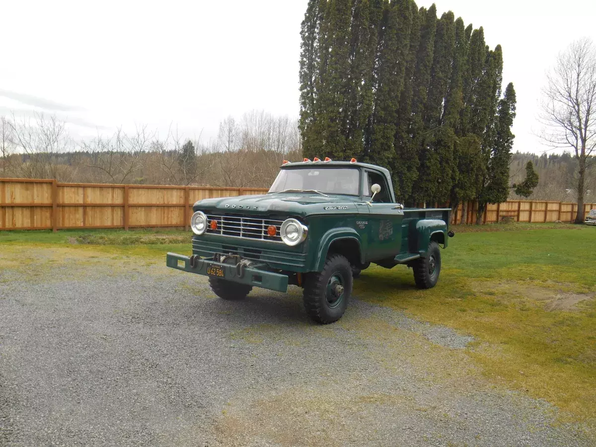 selling a unique 1966 Dodge W300 1 ton Power Wagon in real nice original condition..... one owner truck spent most of it's life in Southern New Mexico where it was ordered by Southwestern Public Service Company through Sam Thomas Motor Company in Carlsbad, New Mexico.....see pic of original owners manual....both doors had the company lightning bolt logo on it.....this truck is a real cool survivor with most of it's original paint still on it and has hardly any rust........underside is rock solid.....body is pretty good with minor dings and scratches.....passenger side fender and door look like they were replaced way back in the day......it was ordered with a Poly 318 2bbl which starts right up and runs and drives great....has 55 lbs oil pressure.....new stock heavy duty clutch and brakes....has manual steering with power brakes and factory PTO with Braden Winch which still works great.....factory locking Warn hubs work as they should.....this is an original single rear wheel truck with it's original 9 foot bed......will need new wood floor though as it is shot.....still has it's factory 16 inch split rims with brand new 7.50 16 bias tires....4.88 rear....has factory white gauges in it....the only thing I added was the optional 66 chrome grille but original painted green grille comes with it....everything works on this truck including all dash lites, gauges, turn signals, brake lites, heater, cab lites, wipers, winch, etc......all glass is good with new gasket seals.....radio delete.....this truck will go anywhere and pull anything.......this truck isn't hammered like most 1 ton's.....not a perfect truck but as nice a survivor as you will find.......I have lots of extra parts that come with it and I also have a 64 W300 single wheel parts truck available for a little extra cash if someone wants it.....see pic........bank wire will work.... IF ANY Questions? 425 219 3663 truck sold as is.
