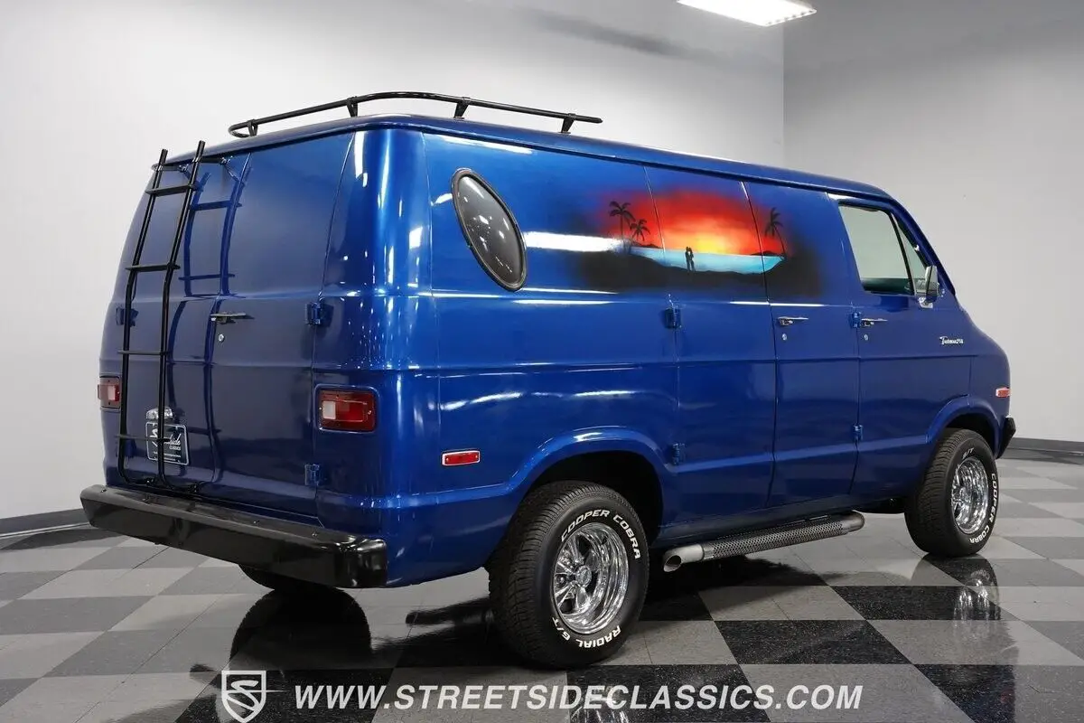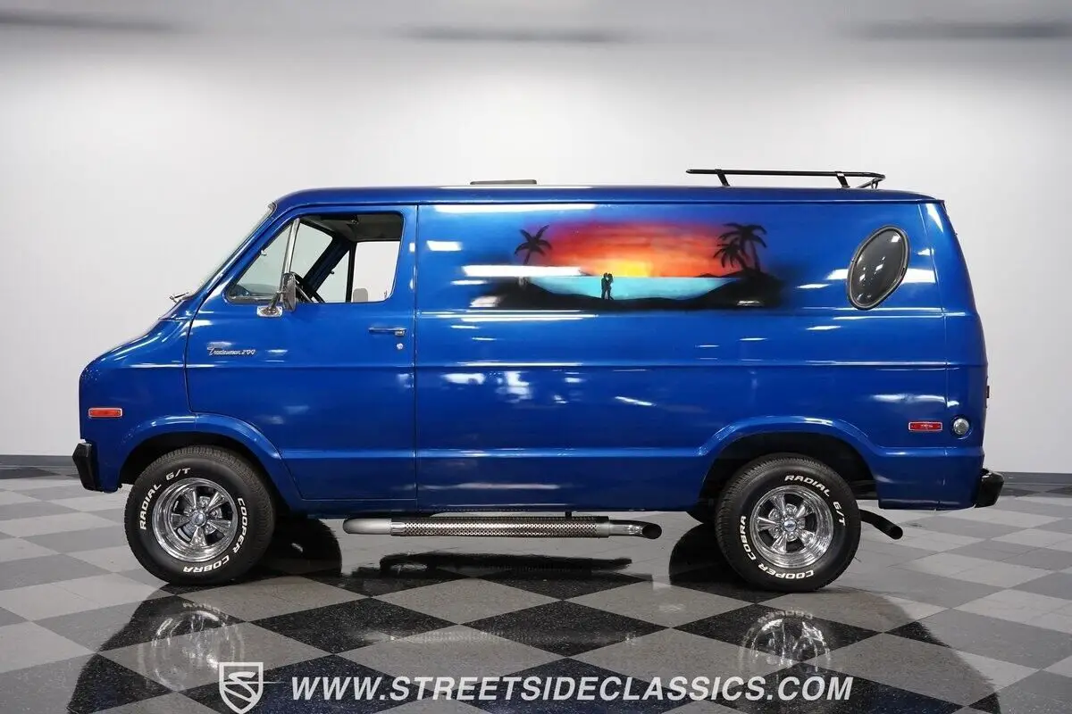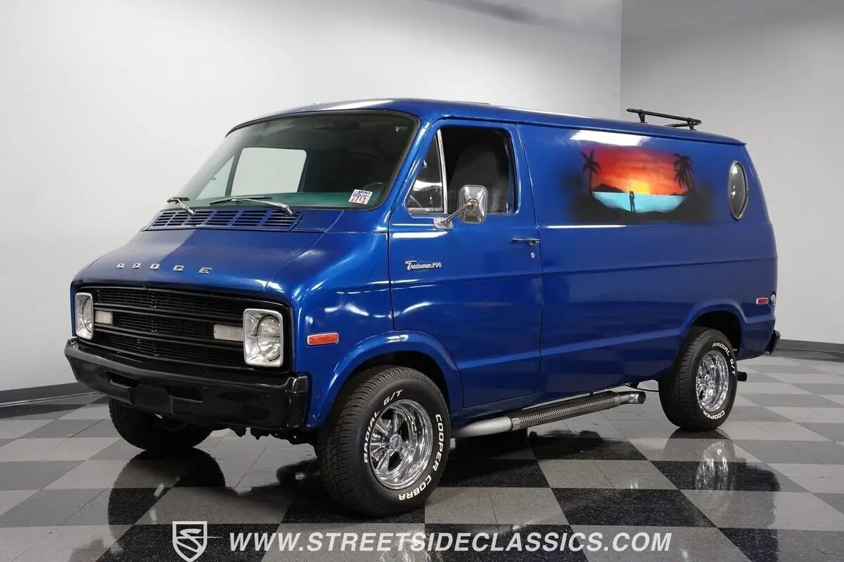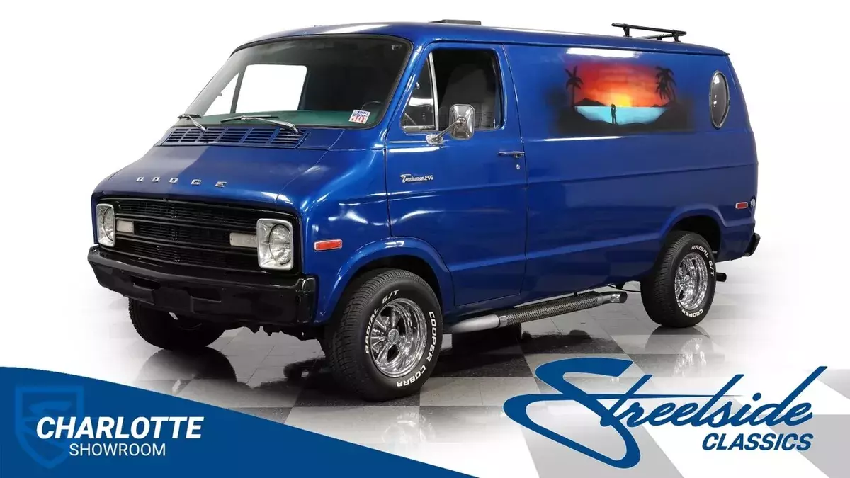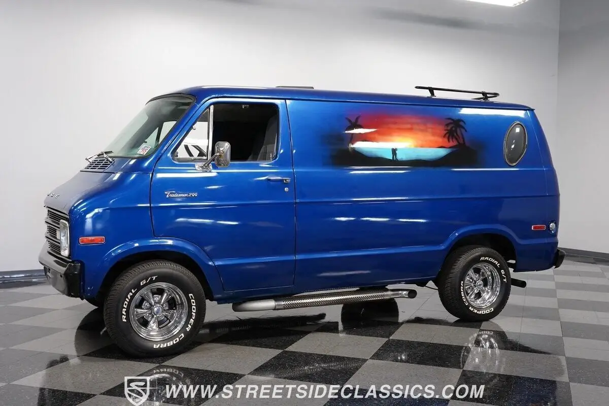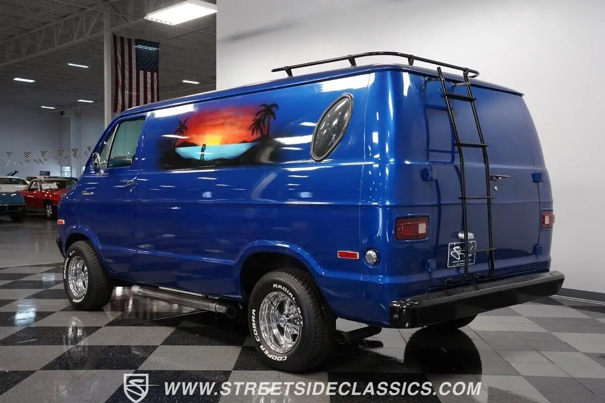 Vehicle Original VIN : B21BF6X118165HIGHLIGHTS: • 360 V8 Engine • 727 Torqueflite 3-Speed Automatic Transmission • 2-Barrel Carburetor • Power Front Disc Brakes • Aluminum Radiator • Torsion Bar Front Suspension • Leaf Spring Rear Suspension • Dual to Single Exhaust with Aftermarket Muffler • New Front and Rear Shocks • Custom Beach Scene Murals on Blue Paint • 14" Cragar SS Wheels with 225/70R14 Cooper Cobra Radial T/A Tires • Blacked-Out Grille and Bumpers • Chrome Side Pipes • Roof Storage Rack • Rear-Mounted Ladder • Blue Interior with Bucket Seats • Power Steering • AM/FM Radio • Custom Wooden Storage Cabinets • Sink • Fold-Out Table • Convertible Sofa Bed • Full Shag Carpeting