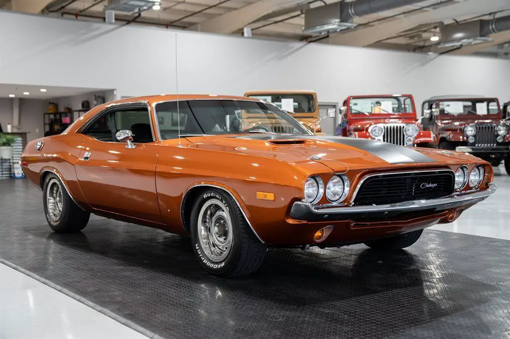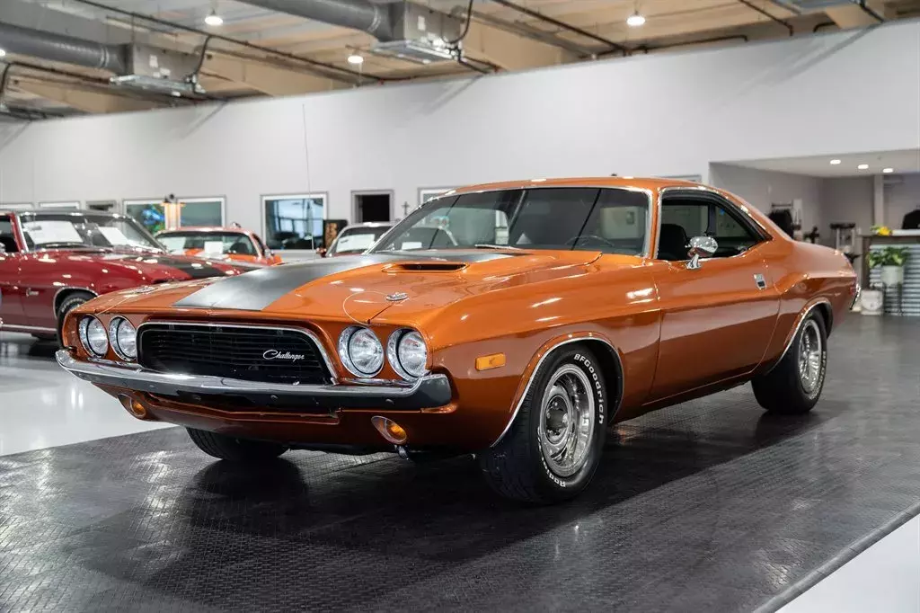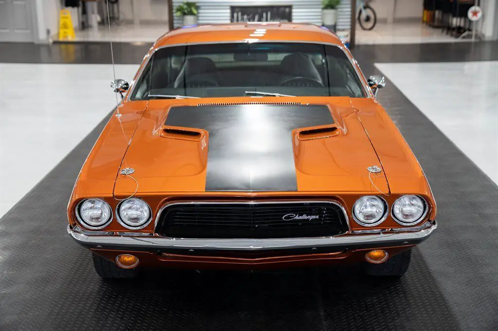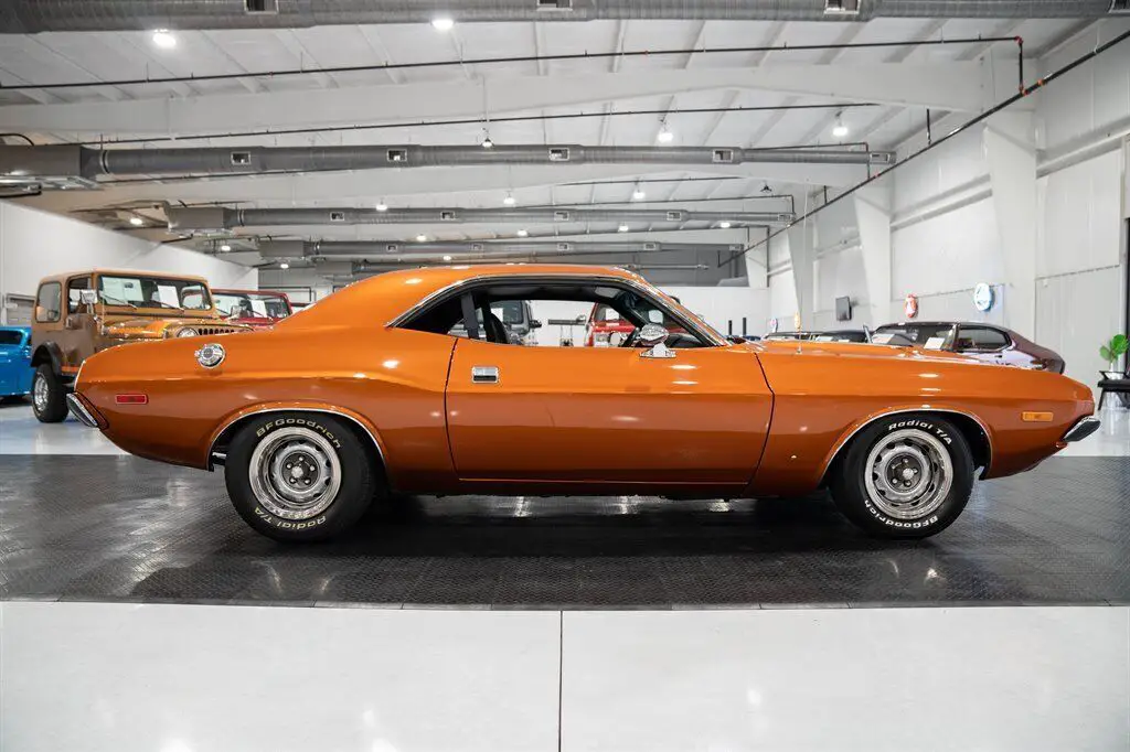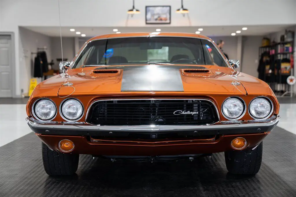 This charming Challenger is a runner and a stunner. Finished in gorgeous Toxic orange metallic with classic Mopar rallye wheels and white letter BFG's, this Challenger is a real head turner. The chrome and glass are in excellent condition, and all weatherstripping has been replaced. The fit and finish are better than what would have been in the showroom in 73', and the tinted windows and black vinyl on the hood really set off the orange paint. Inside this Challenger is a black vinyl interior with pretty much everything new or restored. The woodgrain on the console and doors helps to break up all the black and the two spoke steering wheel is the perfect one for this car. The seats have been re-foamed and recovered, carpets are new, dash pad is new, even the headliner is new. The radio is a modern solid-state AM/FM unit with the classic looks and plays through all new speakers. A tilt steering column has been added to make entry and egress easier. The factory gages have been swapped out to add a tach where the clock once resided, pretty trick. Under the hood is where the real money was spent, and this is one all out built small block. The 318CI V-8 has been rebuilt with Keith Black pistons in a .010 overbore size, Isky roller racing cam, Comp. cams pushrods, roller rockers, Edelbrock Aluminum cylinder heads, Edelbrock aluminum intake with 650cfm carburetor, and blackout Hooker headers. This mighty motor puts the power through a freshly rebuilt A904 Torqflite automatic and back to a 8 3/4in. Chrysler diff that has been converted to fully floating axles, sure grip, and a 3.55:1 rear gear. All this power is nothing without control, and to that end the suspension has been rebuilt with new shocks, bushings, ball joint, tie rods, and has Hotchtkiss sway bars front and rear. A five-leaf rear spring was added to help keep axle hop under control. Lest you think this is an uncomfortable race car, this orange beauty is easy to drive thanks to power front disc brakes, power steering, and even that ultimate option of options, ice cold air conditioning! This Challenger has been completely restored and is ready to go burn some rubber and make some memories. She goes fast, and she will go fast, so call Brian at 352-307-1968 and take home this Challenger today. Financing and transportation services are available! FEES & TAX INFORMATION - We are a licensed dealer in the State of Florida and adhere to all state and federal laws and regulations concerning the sale of a used vehicle. All applicable taxes and fees will be charged accordingly as required by the State of Florida. A fee of $495.00 will be charged to process the vehicle. Classic Car Quality Disclaimer: We do our best to inspect, drive our vehicles, and note any imperfections in the advertisement and pre-sale. However, due to the nature of classic automobiles we cannot guarantee that every function, electrical or mechanical etc., will work as it should. These components will need upkeep and attention. In addition, often these vehicles can sit for periods of time and once you begin to drive them issues can arise without warning. Please make sure you are comfortable with this before buying a vintage automobile. We did NOT build or restore the vehicle. Vehicles are sold AS-IS, with all faults known/unknown and with no implied warranty. Pre-Purchase inspections are welcome, we describe these vehicles to the best of our knowledge.