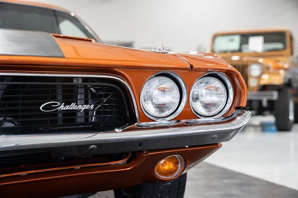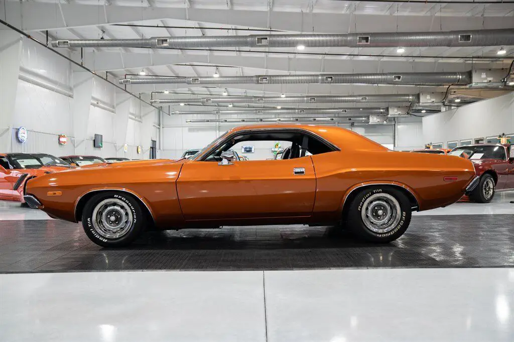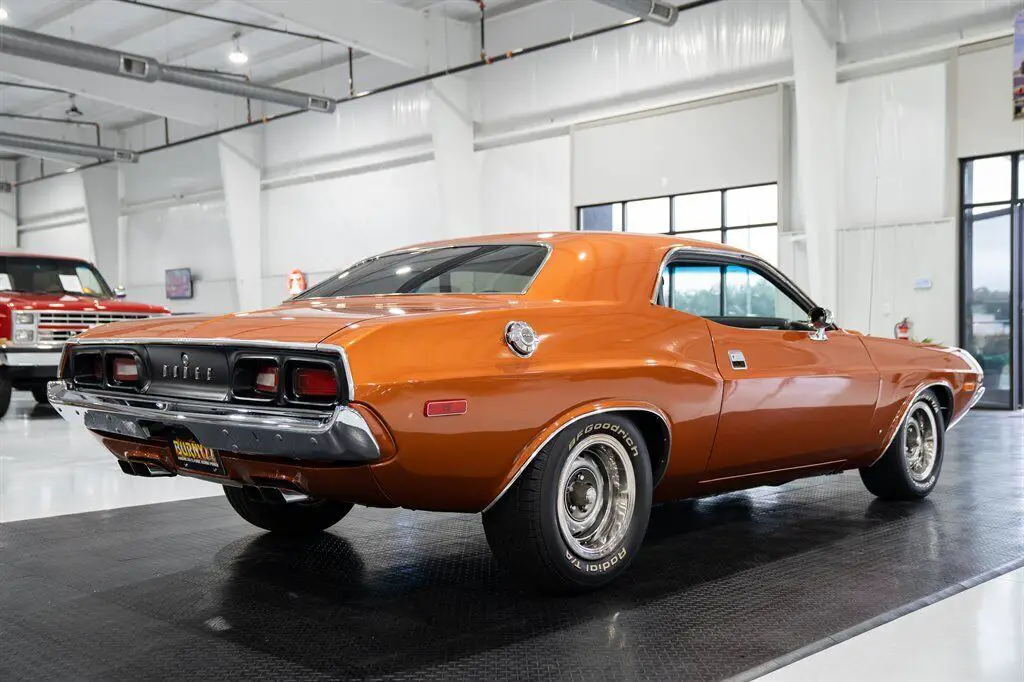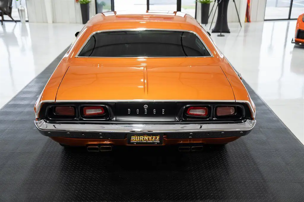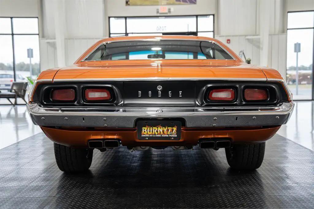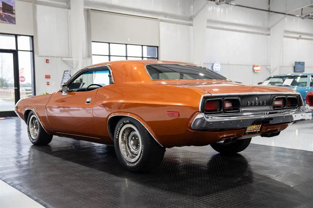 This charming Challenger is a runner and a stunner. Finished in gorgeous Toxic orange metallic with classic Mopar rallye wheels and white letter BFG's, this Challenger is a real head turner. The chrome and glass are in excellent condition, and all weatherstripping has been replaced. The fit and finish are better than what would have been in the showroom in 73', and the tinted windows and black vinyl on the hood really set off the orange paint. Inside this Challenger is a black vinyl interior with pretty much everything new or restored. The woodgrain on the console and doors helps to break up all the black and the two spoke steering wheel is the perfect one for this car. The seats have been re-foamed and recovered, carpets are new, dash pad is new, even the headliner is new. The radio is a modern solid-state AM/FM unit with the classic looks and plays through all new speakers. A tilt steering column has been added to make entry and egress easier. The factory gages have been swapped out to add a tach where the clock once resided, pretty trick. Under the hood is where the real money was spent, and this is one all out built small block. The 318CI V-8 has been rebuilt with Keith Black pistons in a .010 overbore size, Isky roller racing cam, Comp. cams pushrods, roller rockers, Edelbrock Aluminum cylinder heads, Edelbrock aluminum intake with 650cfm carburetor, and blackout Hooker headers. This mighty motor puts the power through a freshly rebuilt A904 Torqflite automatic and back to a 8 3/4in. Chrysler diff that has been converted to fully floating axles, sure grip, and a 3.55:1 rear gear. All this power is nothing without control, and to that end the suspension has been rebuilt with new shocks, bushings, ball joint, tie rods, and has Hotchtkiss sway bars front and rear. A five-leaf rear spring was added to help keep axle hop under control. Lest you think this is an uncomfortable race car, this orange beauty is easy to drive thanks to power front disc brakes, power steering, and even that ultimate option of options, ice cold air conditioning! This Challenger has been completely restored and is ready to go burn some rubber and make some memories. She goes fast, and she will go fast, so call Brian at 352-307-1968 and take home this Challenger today. Financing and transportation services are available! FEES & TAX INFORMATION - We are a licensed dealer in the State of Florida and adhere to all state and federal laws and regulations concerning the sale of a used vehicle. All applicable taxes and fees will be charged accordingly as required by the State of Florida. A fee of $495.00 will be charged to process the vehicle. Classic Car Quality Disclaimer: We do our best to inspect, drive our vehicles, and note any imperfections in the advertisement and pre-sale. However, due to the nature of classic automobiles we cannot guarantee that every function, electrical or mechanical etc., will work as it should. These components will need upkeep and attention. In addition, often these vehicles can sit for periods of time and once you begin to drive them issues can arise without warning. Please make sure you are comfortable with this before buying a vintage automobile. We did NOT build or restore the vehicle. Vehicles are sold AS-IS, with all faults known/unknown and with no implied warranty. Pre-Purchase inspections are welcome, we describe these vehicles to the best of our knowledge.