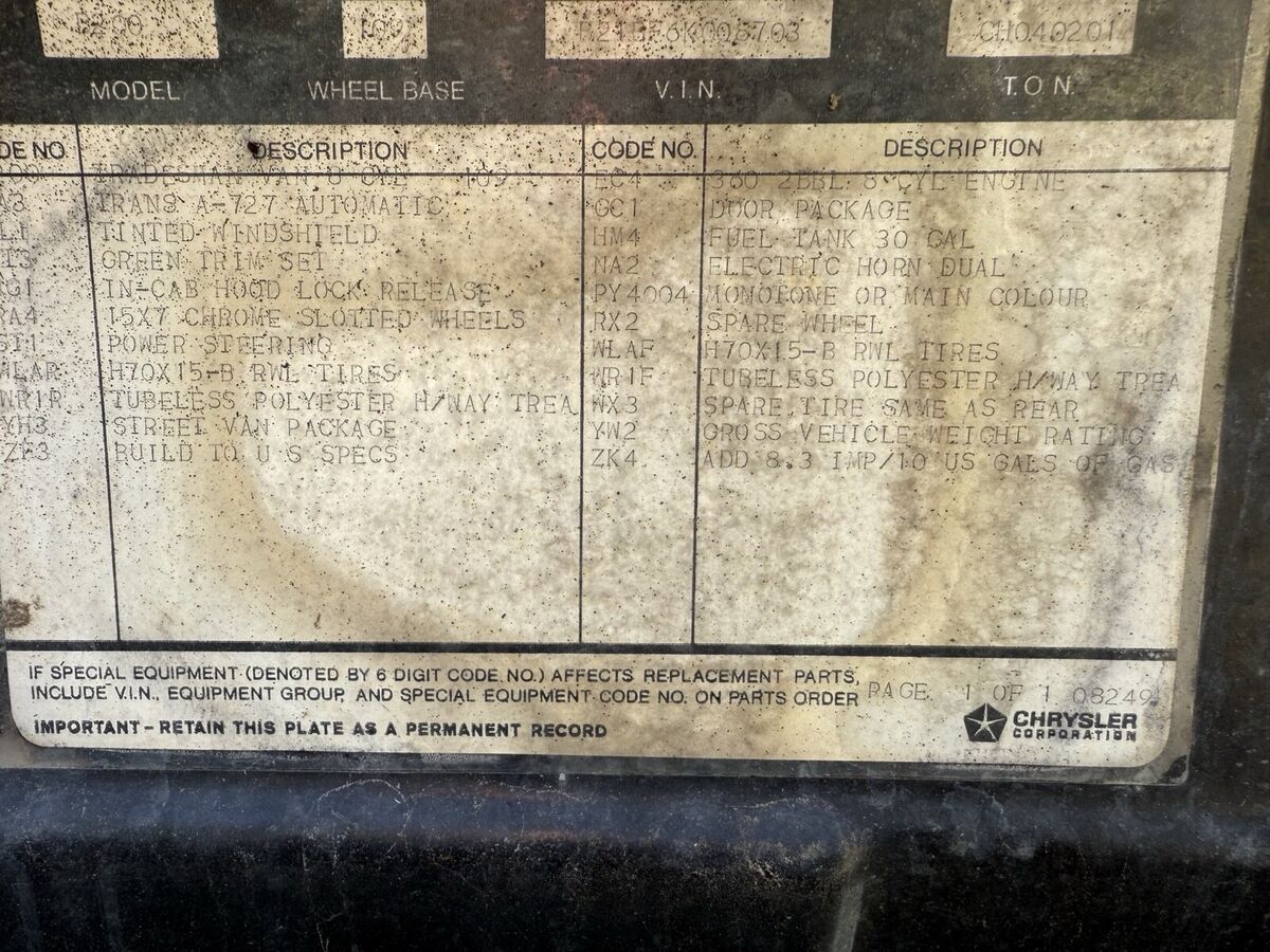 Selling a 1976 Dodge B200 Street van YH3 code. Has the factory 360 with 727 auto trans. This vehicle is rusty and hasn’t ran in a couple years. Comes with everything shown including Sheetmetal patch panels to repair most of the rust.