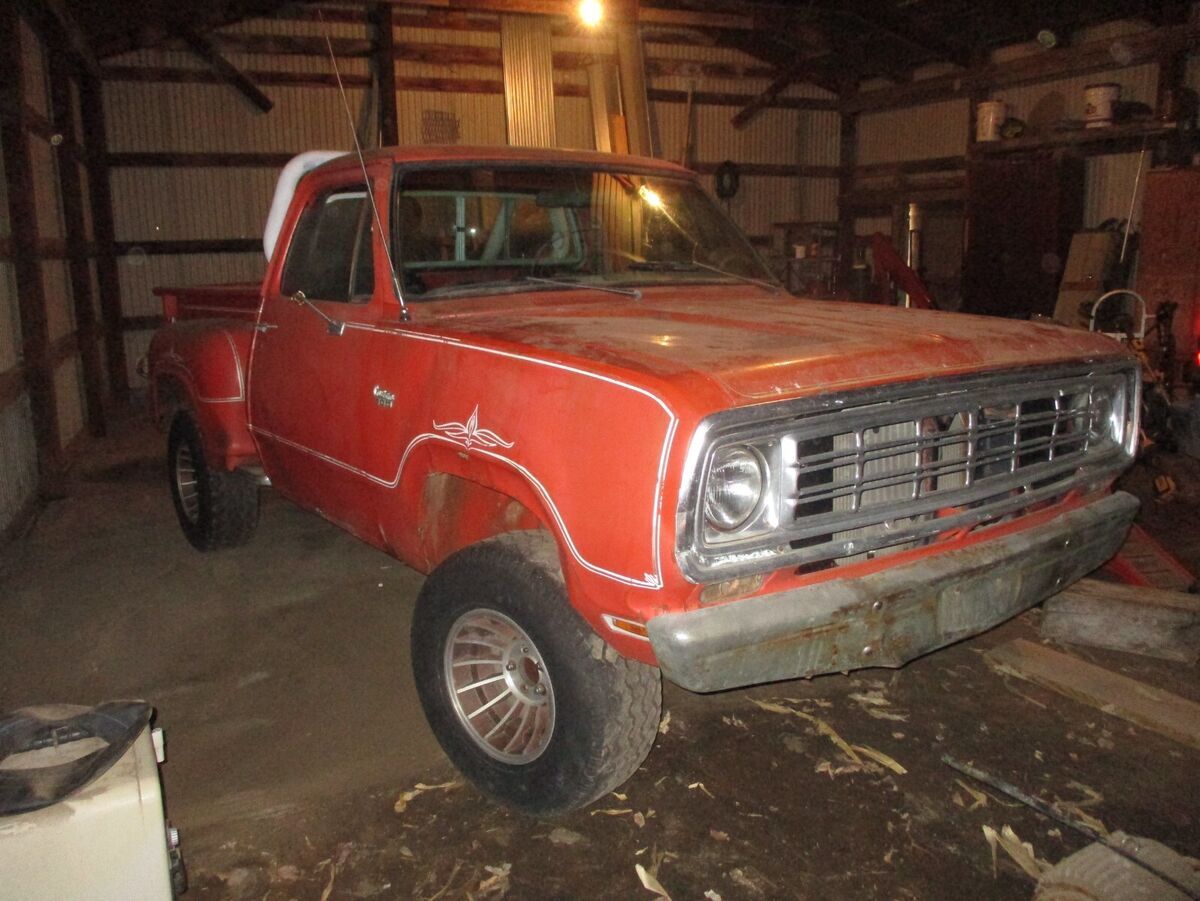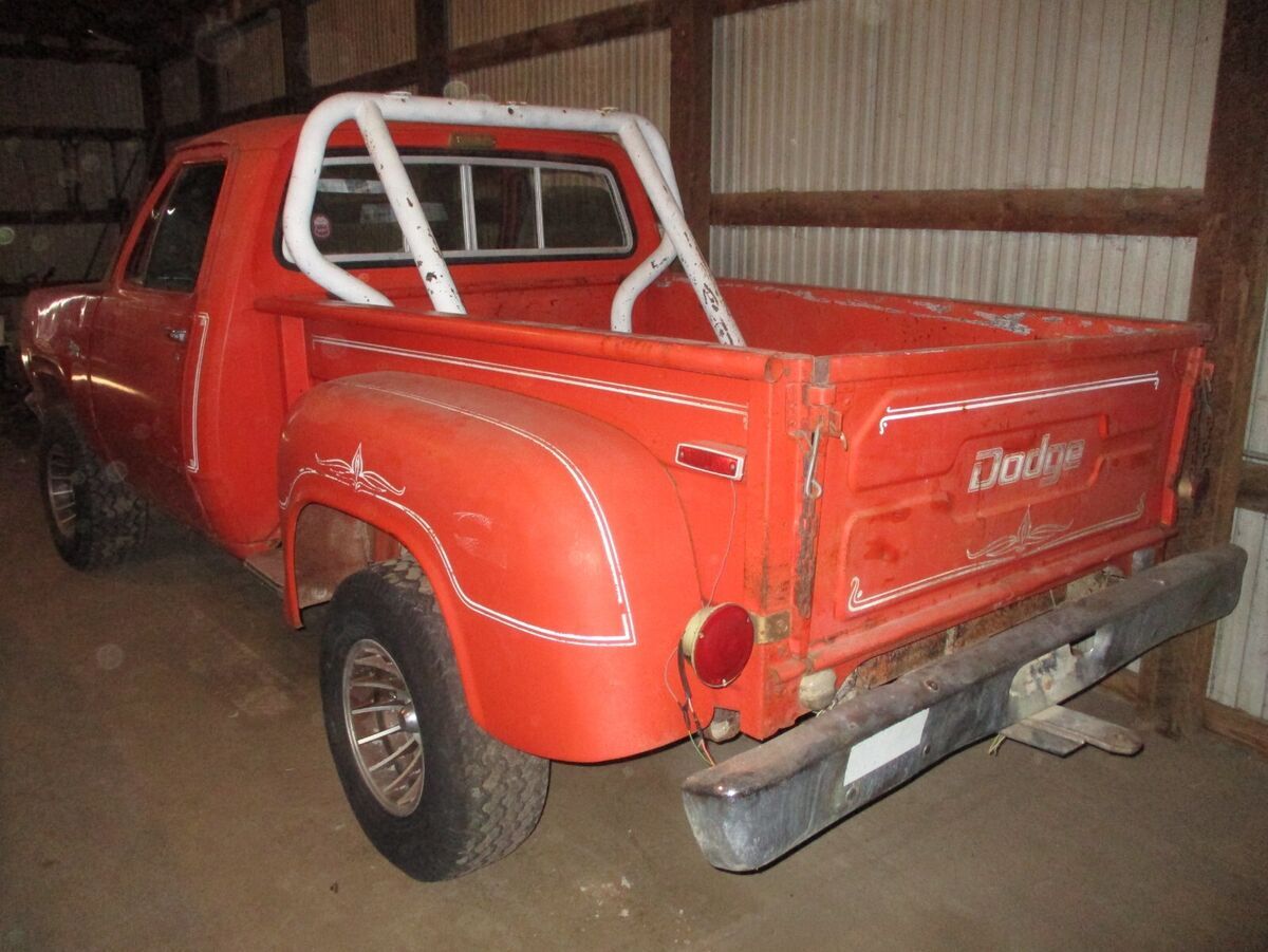 1976 Dodge Warlock 4X4 Rare!! Possibly the first Warlock built with a June of 1976 build date. In 1976 -Only 20 Dodge Warlock 4X4 were built on a very limited production in which the first Warlock was built June 1976. Actual production date for the Warlock did not start till 1977 to 1979. Factory rollbar with very rare and unusual Warlock written in block letters on lower passenger side of tailgate. (shown in 8th picture) This is truly a very unique and interesting Warlock. The truck is a 318 auto which currently does not run but this Warlock would make an excellent restoration project. Cell 605-214-0517