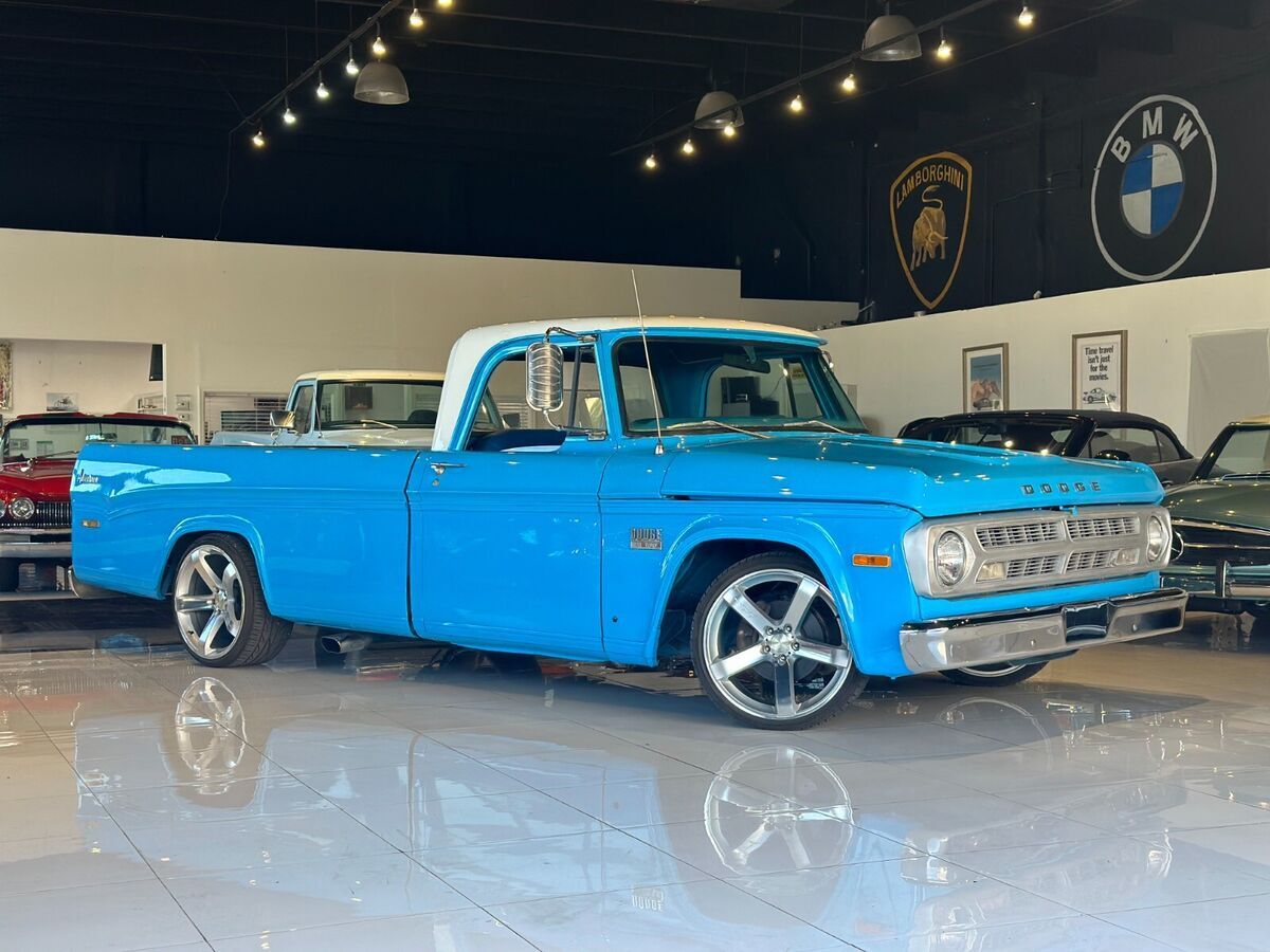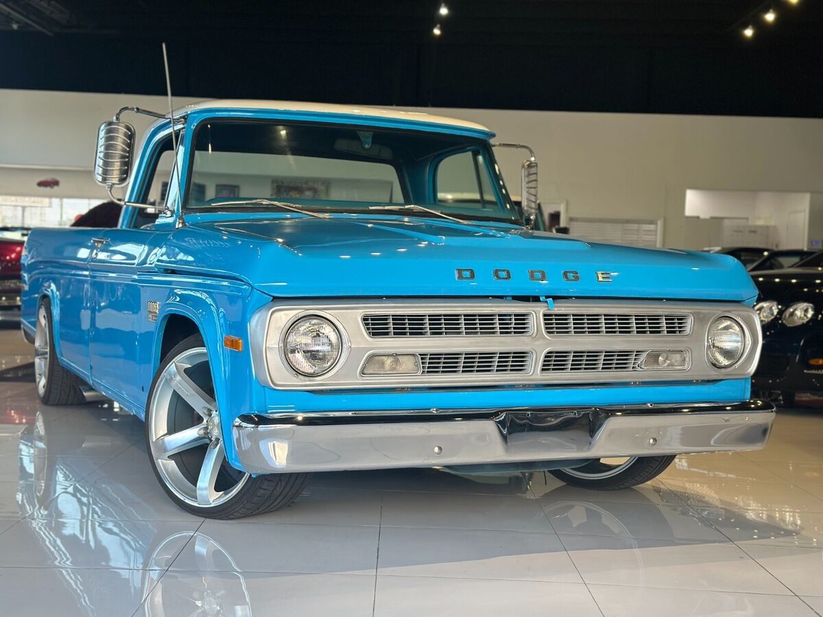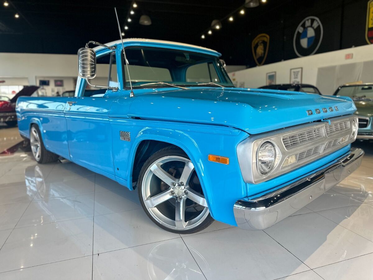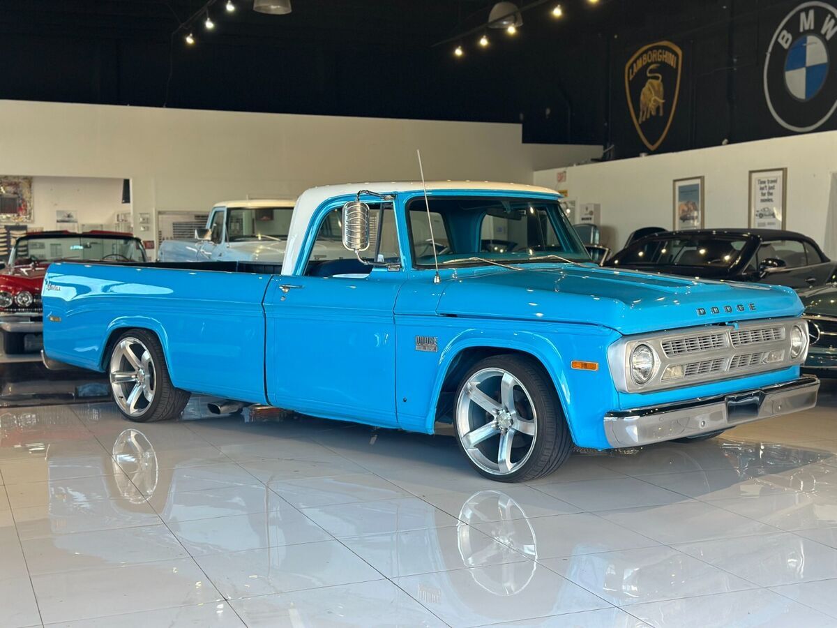 1971 Dodge D100 Adventurer Restomod Vin: D14AE1U307231 Step into a perfect blend of vintage style and modern performance with this 1971 Dodge D100 Restomod. Professionally restored and upgraded, this truck is a head-turner with its baby blue paint that pops in any light, complemented by a custom blue patterned interior adding a touch of retro flair. Under the hood, the heart of this beauty has been replaced with a powerful 4.6L flex-fuel V8 engine, sourced from a 2009 Ford Crown Victoria, delivering smooth and reliable power. Paired with an automatic transmission, this restomod combines effortless driving with classic truck aesthetics. Other features: - Power Steering: Enjoy precision handling and control. - Upgraded 4-Wheel Disc Brakes: Modern stopping power for confidence on the road. Whether you're cruising down the highway or turning heads at car shows, this Dodge D100 offers a perfect mix of vintage charm and modern performance upgrades. Don’t miss your chance to own a classic truck with all the right touches. Contact us today for more details.