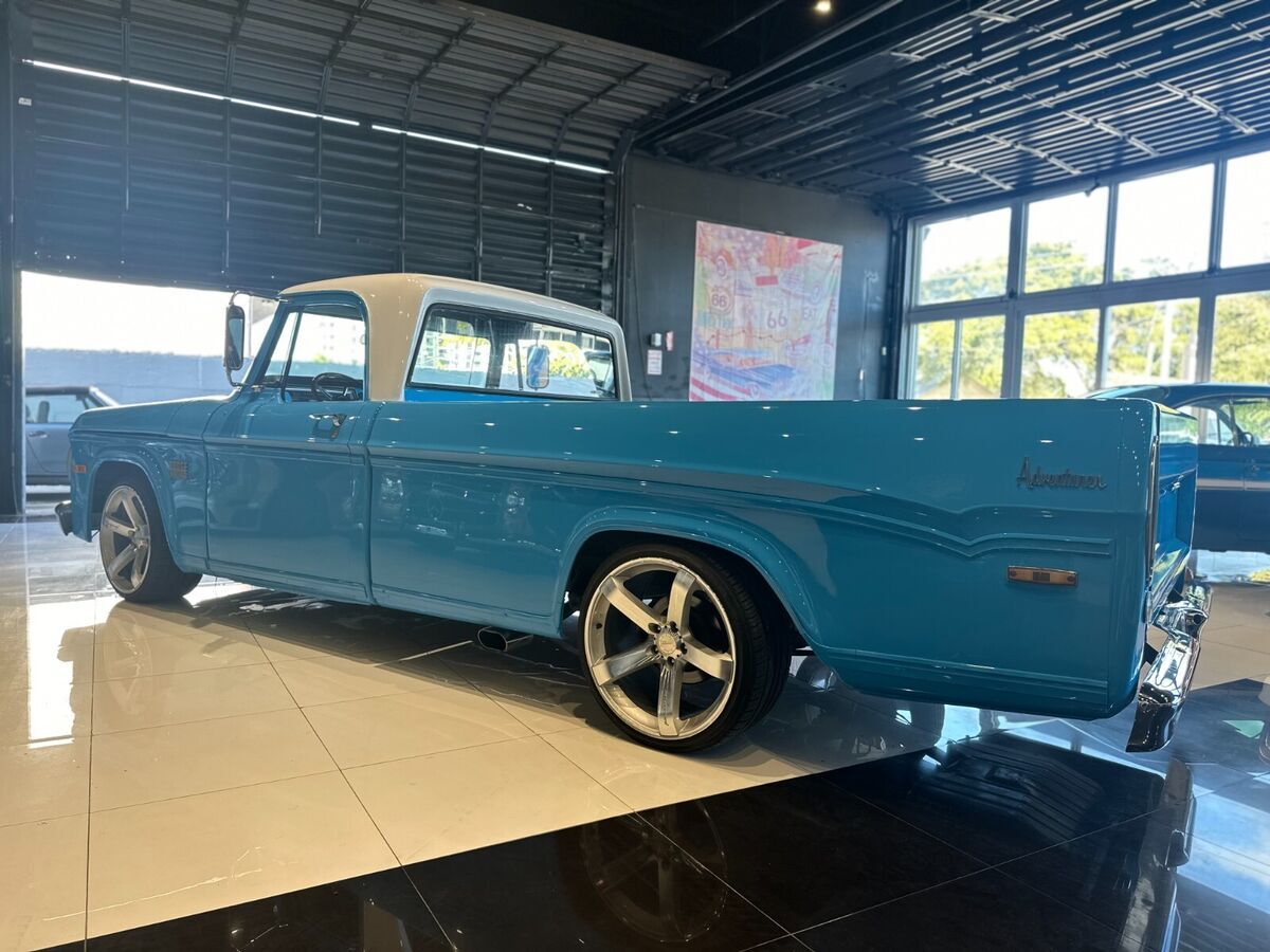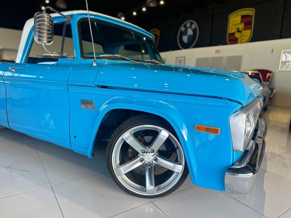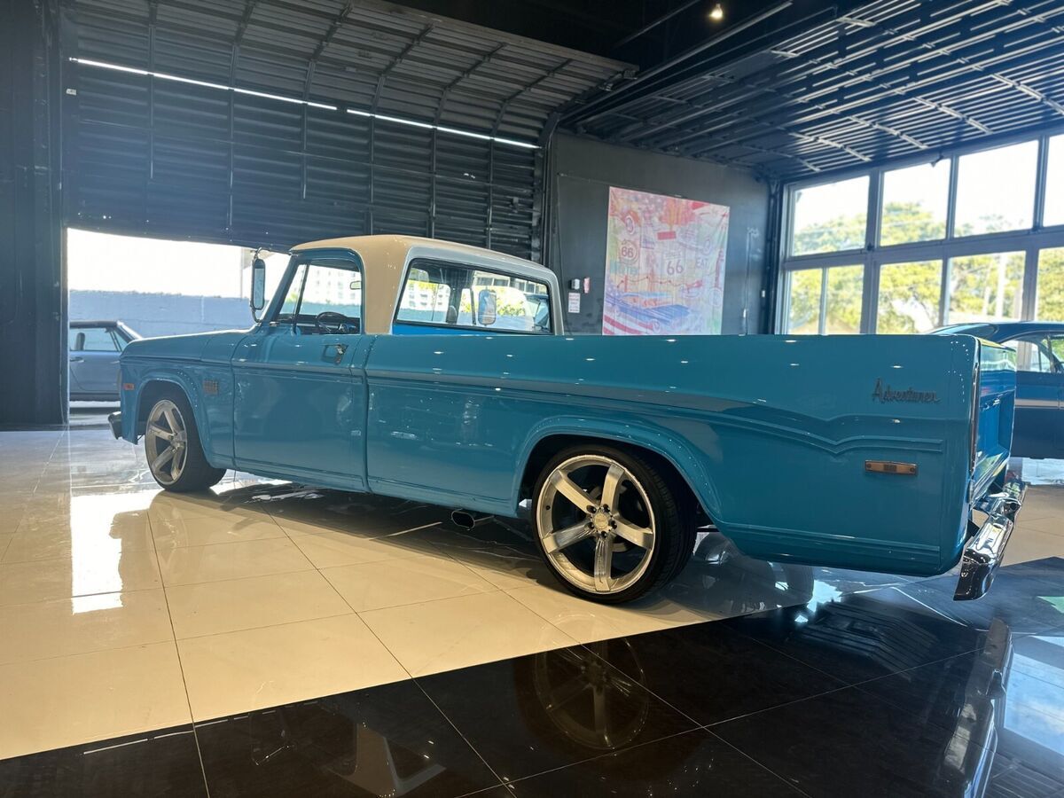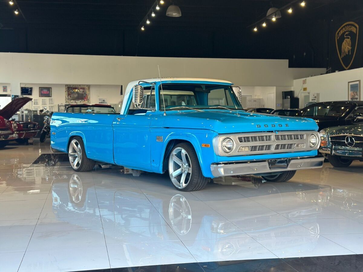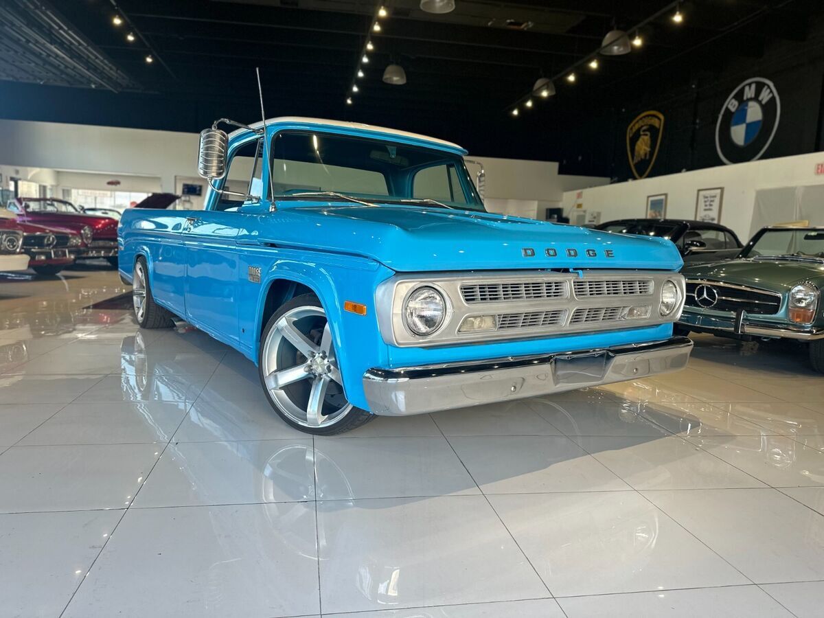 1971 Dodge D100 Adventurer Restomod Vin: D14AE1U307231 Step into a perfect blend of vintage style and modern performance with this 1971 Dodge D100 Restomod. Professionally restored and upgraded, this truck is a head-turner with its baby blue paint that pops in any light, complemented by a custom blue patterned interior adding a touch of retro flair. Under the hood, the heart of this beauty has been replaced with a powerful 4.6L flex-fuel V8 engine, sourced from a 2009 Ford Crown Victoria, delivering smooth and reliable power. Paired with an automatic transmission, this restomod combines effortless driving with classic truck aesthetics. Other features: - Power Steering: Enjoy precision handling and control. - Upgraded 4-Wheel Disc Brakes: Modern stopping power for confidence on the road. Whether you're cruising down the highway or turning heads at car shows, this Dodge D100 offers a perfect mix of vintage charm and modern performance upgrades. Don’t miss your chance to own a classic truck with all the right touches. Contact us today for more details.