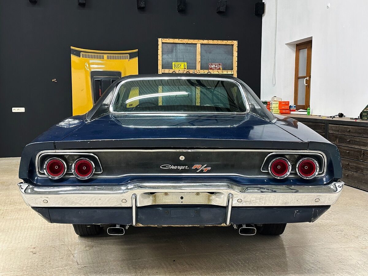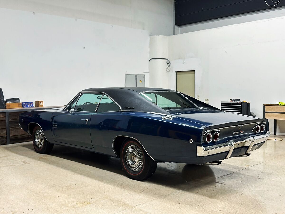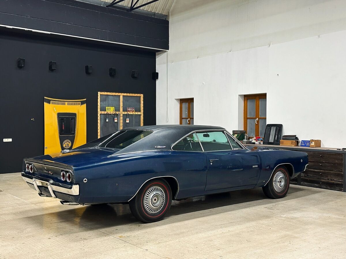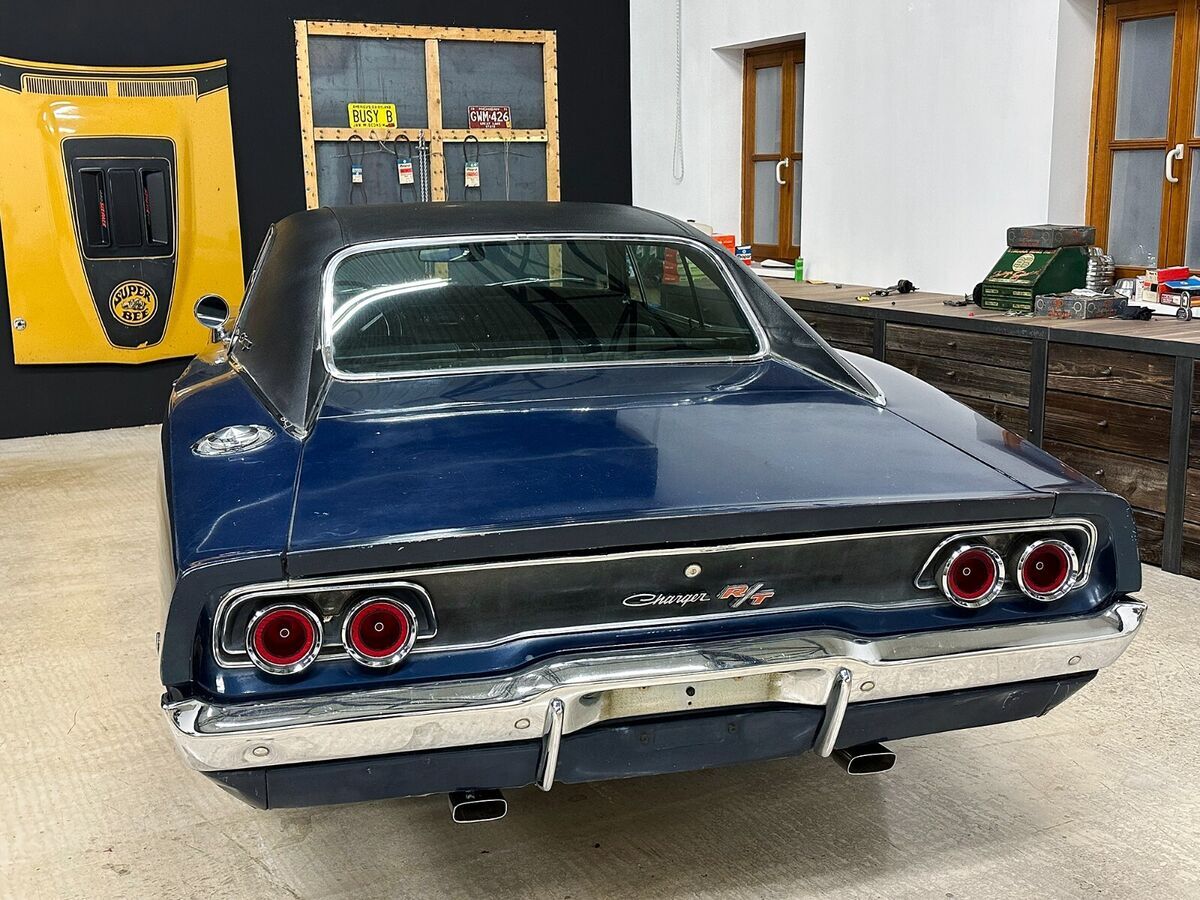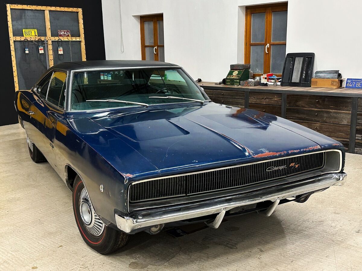 Survivor 1968 Hemi Charger R/T for sale. Factory J code Hemi car.Crazy rare factory export car with 240 KPH speedoLow mileage car: about 23,300 kilometers (about 14,500 miles)Very rare and desirable color combination: EE1 Dark Blue, black interior, black vinyl roof, stripe delete.Highly optioned car: power windows, power front disk brakes, power steering, remote mirror, console, 8-track stereo unit with 3 speaker dash, tic-toc-tach, tinted windows, locking gas cap, sure-grip, 15“ full wheel covers (Hemi with disc brakes only option)- Original paint,- Original interior,- Original vinyl roof,- Original chrome,- Original date coded glass all around,- Virtually rust free car, including rust free quarters, rust free undercarriage, rust free floors, with the exception of the center of the trunk pan,- Numbers matching engine, numbers matching transmission,- All bolt on parts are original, date coded and in their original finish,- Original date coded carburetors, distributor, alternator, fuel pump, exhaust manifolds, starter, radiator, etc.- Engine is all original, including original paint, has never been out of the car, needs some tlc- Car has new gas tank, NOS fuel sending unit, new KV rubber fuel lines, new red-streak Goodyear tires, new Gardner reproduction Hemi exhaust system, NOS exhaust tips, new wiring upfront, NOS master cylinder, etc.One family owned 1968-2018, and I have owned it since 2018.Documented with original fender tag, broadcast sheet, CertiCard, 426 Hemi-only owner’s manual, export manual and warranty leaflet. One broadcast sheet was retrieved from the rear seat back, and a second broadcast sheet was found under the carpet.This might be the most original 1968 Hemi Charger R/T anywhere, and it would be impossible to find another. Car is located in Austria, and I am happy to help with shipping anywhere in the world. Payment by bank wire only.Any questions feel free to message me.