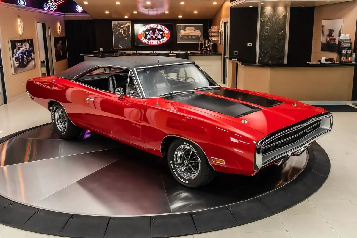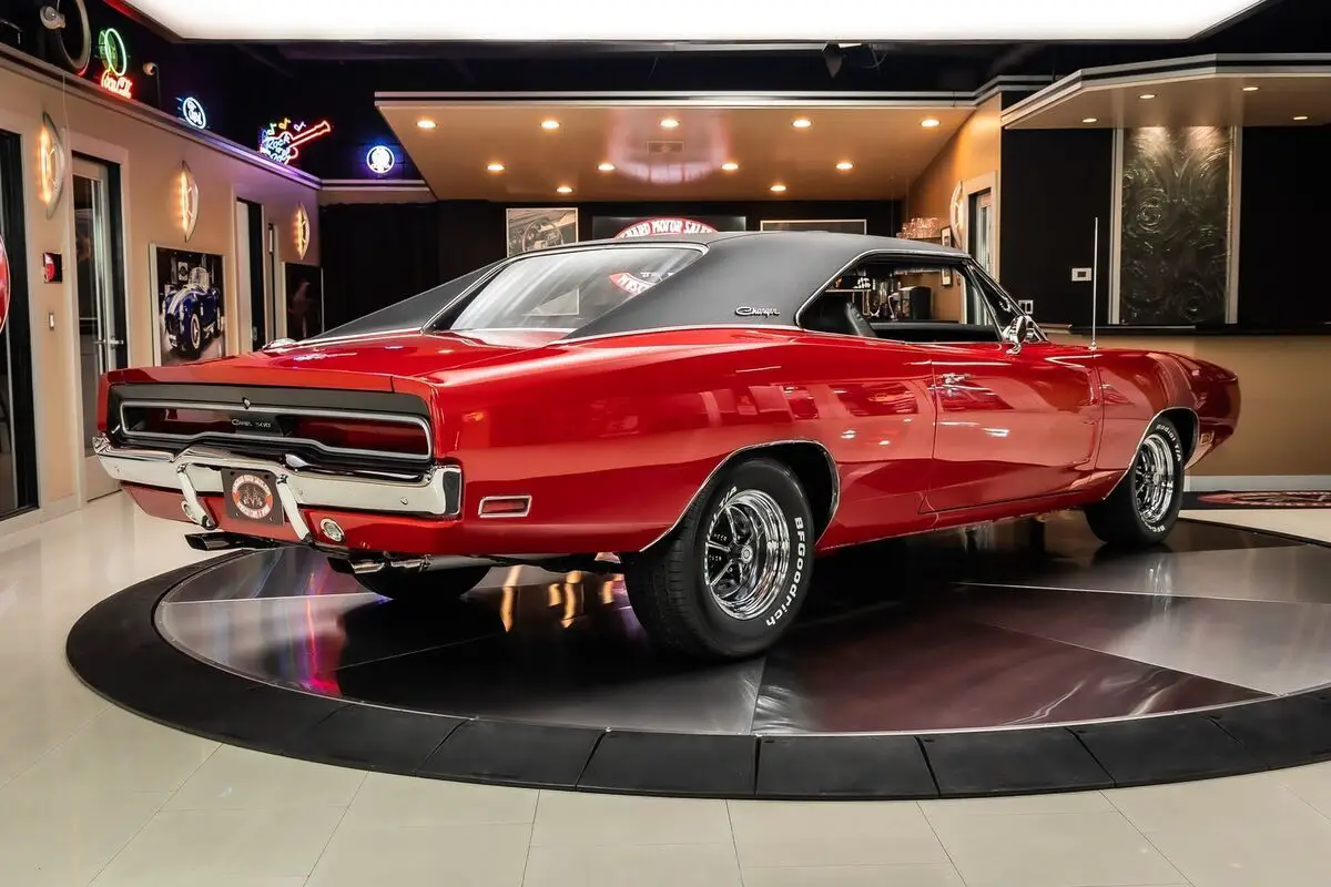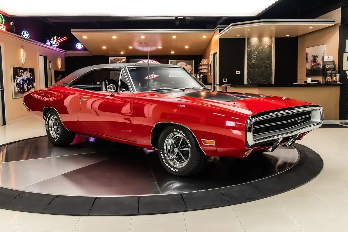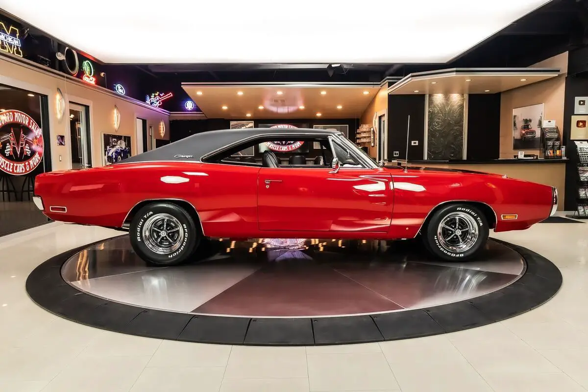 Check out this amazing 1970 Dodge Charger 500! This Charger has been Rotisserie restored to the closest detail with no expense spared! This Charger has been finished in beautiful Red with a Black Vinyl Top and sits on Magnum 500 Wheels Wrapped in BF Goodrich Radial TA tires! Under the hood sits a Dodge 505ci Stroker V8 Engine making around 700HP! Power is sent to the Rear Wheels through a A727 Torqueflite Automatic Transmission and Factory Rear End with a 3.93:1 Gear Ratio! Additional Features include, Power Brakes, Jet Coated Headers and Power Steering!