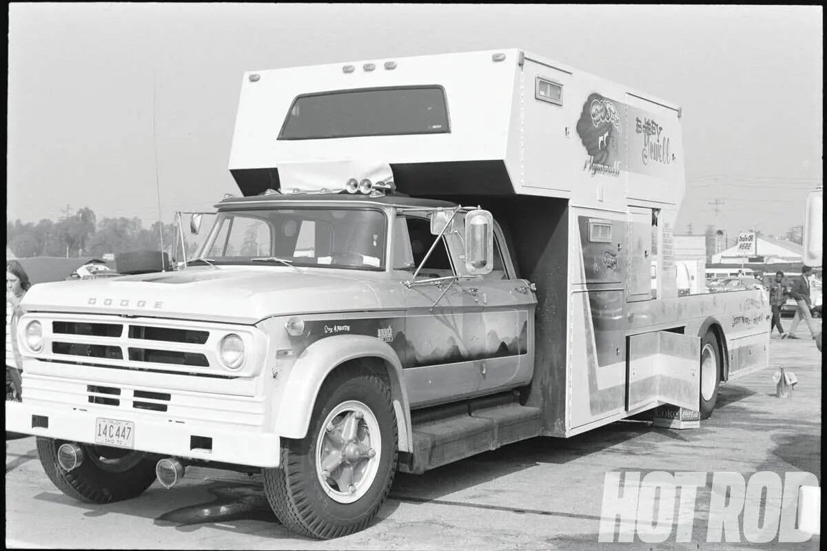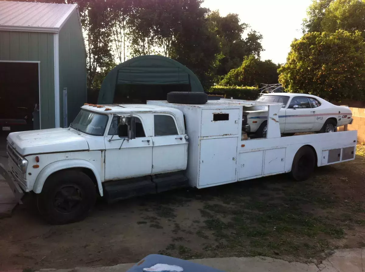 If you ever wanted a big Dodge car Hauler now is the time. Here's the former Bobby Yowell Pro Stock Dodge 1971 D700 Crewcab race car hauler. There's a couple pics of it now and some period ones from the early seventies. The Dart Sport on the back isn't included but can be bought separately. Also, most of the stuff stored in the truck isn't included but the extra fenders are.Apologies for the poor pics, its very hard to get good ones where I have it currently parked. It's about 33 feet long so be aware this is not a little 1 ton pick up.As you can see the original sleeper roof section was removed and of course there's a little bit of butchery related to that and the passenger side fuel tanks are missing. The engine is a 440 block with 413 Dodge Truck industrial heads, crank, water pump etc. Edelbrock carburetor and oil bath air cleaner. Full air brakes, power steering, double disk 13" hydraulic clutch, 5 speed Spicer transmission and a 2 speed rear end. It runs and can drive but hasn't in many years. I will need about 1 week to change out the fuel pump and get it moving again. You will need to tow this home as its not road worthy although it will run and drive and of course drive up onto a flatbed.In the past, I've driven it around the block on occasion and I completely rebuilt the rear brakes including new drums, shoes, brake cans, air line hoses and changed the rear end gear oil (4 gallons).Has bench seat front but missing the rear bench seat. The engine has an NOS direct drive starter, custom brackets for modern Sanden A/C compressor already installed as I was going to install a roof A/C unit as original. Engine is mechanically very solid and runs smooth. Radiator was serviced and is in good shape with new coolant. The airbrake compressor is a rebuilt unit and makes air quick.Any question please ask. Clean CA title in my name and its registered as an RV so its no longer a commercial truck. Cash in person or wire transferI can store it for free for a couple of months if that helps any serious buyer.