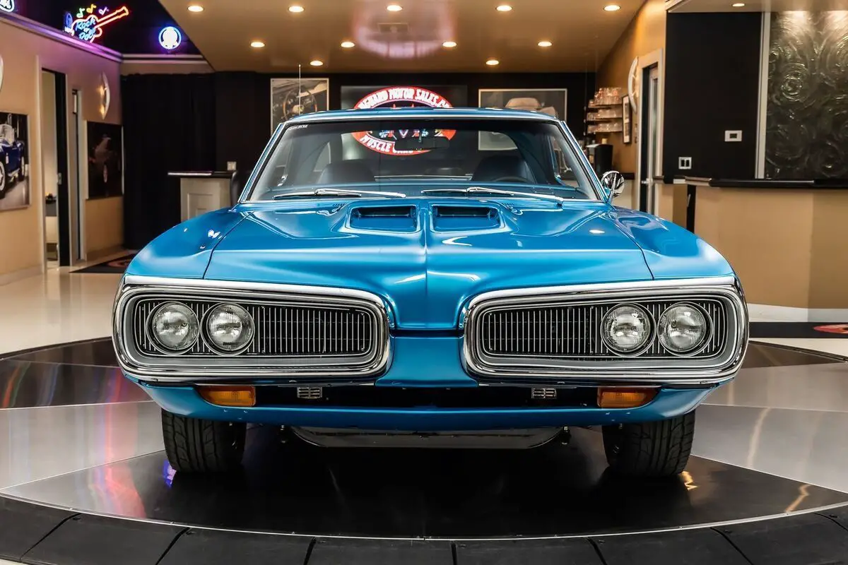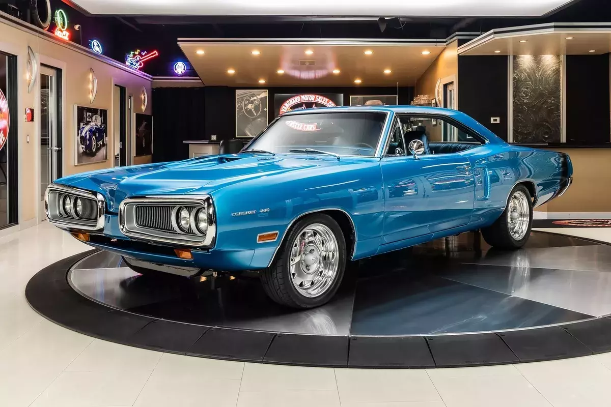 Check out this beautiful 1970 Dodge Coronet! This B5 Blue Coronet has been meticulously restored on the rotisserie with no expense spared! This Mopar combines modern elements along with classic muscle! Under the double scoop hood sits a 440ci V8 fitted with EFI, aluminum intake, long tube headers, & serpentine belt system. Power is sent to the rear wheels through a Tremec 5-speed manual transmission & Dana 60 rear end with a 3.55:1 sure-grip gear. Handling all that power is Wilwood power 4W disc brakes, power steering, coil-over suspension, & tubular control arms!