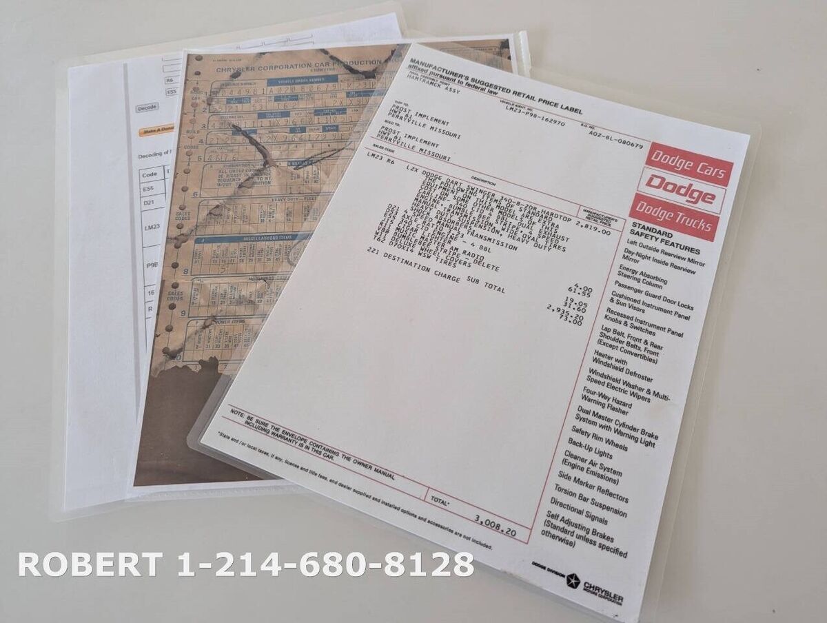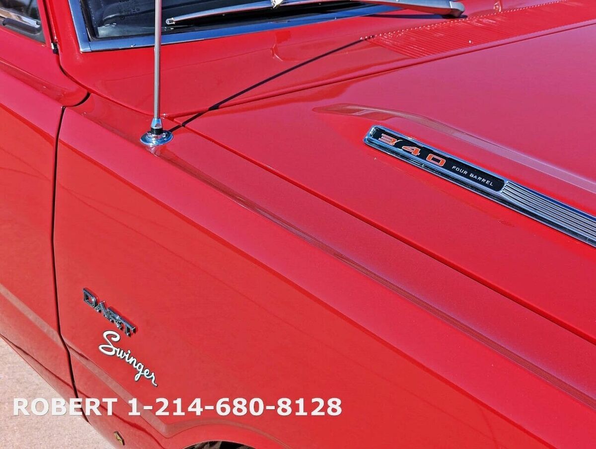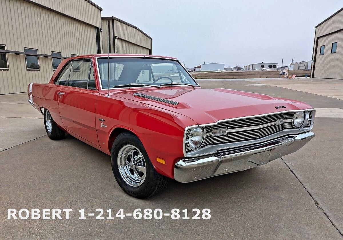 1969 Dodge Dart Swinger Numbers Matching 340cid 4-Speed RestoredFull Rotisserie restoration by Graveyard Carz in 2021, 1969 Dodge Dart Swinger in showroom condition powered by the original numbers matching 340cid 4BBL and mated to a 4-speed manual transmission. Finished in red over black vinyl with dual hood scoop, stainless exhaust, chrome-Cragar's and Hurst pistol-grip shifter. Features include AM/FM Solid State retro stereo, upgraded speaker system, heat and defrost controls along with upgraded panel lighting.Comes with window sticker, broadcast sheet, owner’s manual, brochures, a removed OEM shifter and intake manifold.Fender tag information:LM23 - Dodge Dart Swinger HardtopE55 - 340cid V8 Four-Barrel CarburetorD21 - Four-Speed Manual transmissionR6 - RedL2X – Black Vinyl Bench SeatsCar is located in McKinney Texas, with clean Arizona open titleVIN LM23P9B162970Odometer: 55,890 TMUVIDEO HERE: 0xxA47RlnsUDrive Line:· Numbers matching 340cid factory rated at 275-Horsepower and 330ft. Lbs torque, mild cam and upgraded LD340 aluminum intake manifold· Replacement 4-Speed Manual Gearbox with Hurst Pistol-grip shifter and OEM factory ball-shifter and linkage to accompany sale. 2nd gear pops out when decelerating.· 3:23 rear end· Factory OEM manifolds bolted to full stainless exhaust system and dual-chrome tips· Chrome-finished Cragar S/S 14? wheels are mounted with 215/70 front, 225/70 rear BFG Goodrich Radial T/A tires· Unassisted OEM factory front and rear drum brakes provide adequate stopping power· OEM Spring front suspension and leaf rears with newer shocks provide an excellent overall ride, smoothBody:· Doors, hood, deck lid, doors, fenders, fender wells, floors, frame, rockers, cowl and radiator supports are rust free and well aligned and appear OEM· Paint is an easy 9 of 10, Slight scuffs, no major imperfections· Clean body stainless and chrome trim; restored correctly· Door weather-stripping is pliable, hardware works and locks like new· Windshield and factory tinted door and back glass are good Mopar OEM; some glass sandblast etching on passenger window.Interior:· Factory optioned front and rear bench seats trimmed in black vinyl, excellent condition with no rips or tears· Headliner, sun-visors, dash bezel, dash pad and door panels are in restored condition, like new· Carpet is in like new condition· OEM seatbelts with OEM retainer position receptacles at bench front· Headlights, directionals, stop, reverse and hazards are complete and functionalCALL OR TEXT ANYTIMEROBERT1877-211-7157