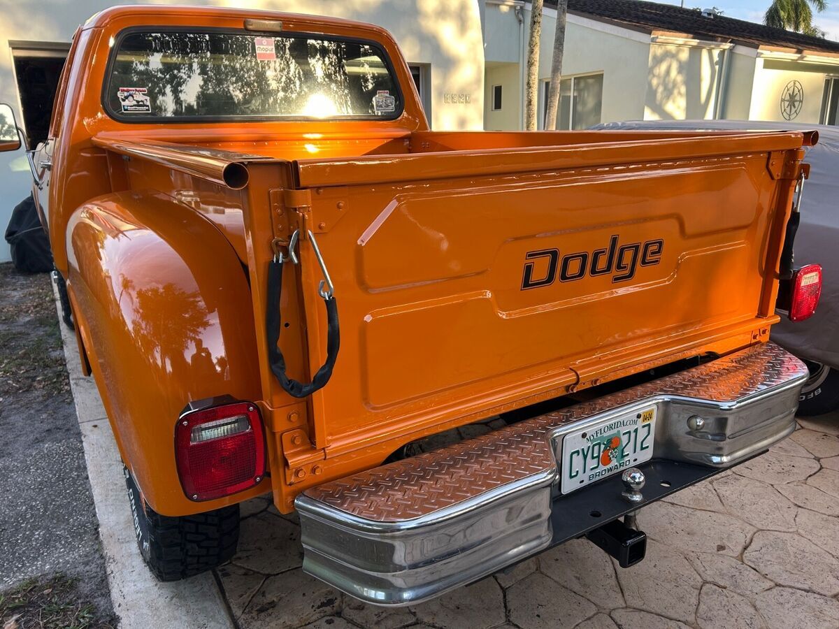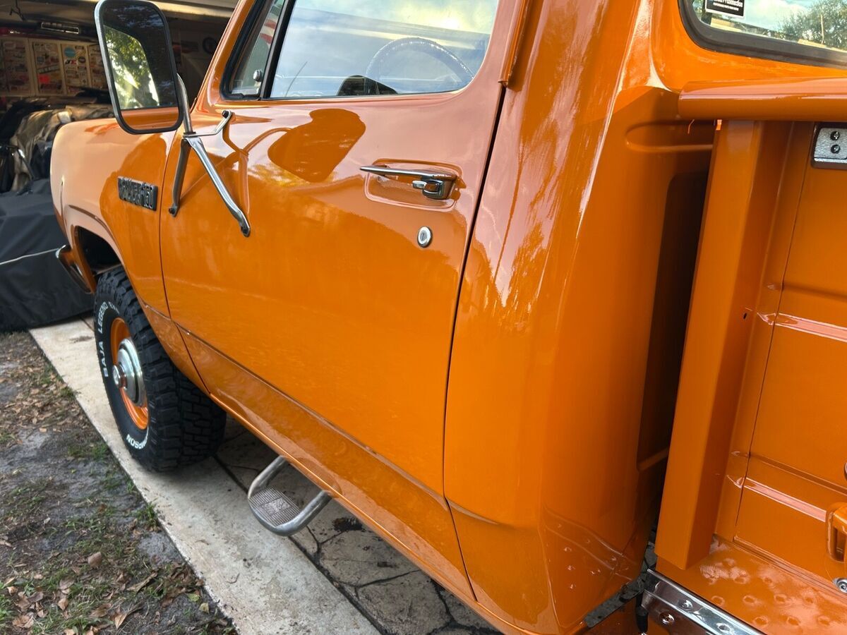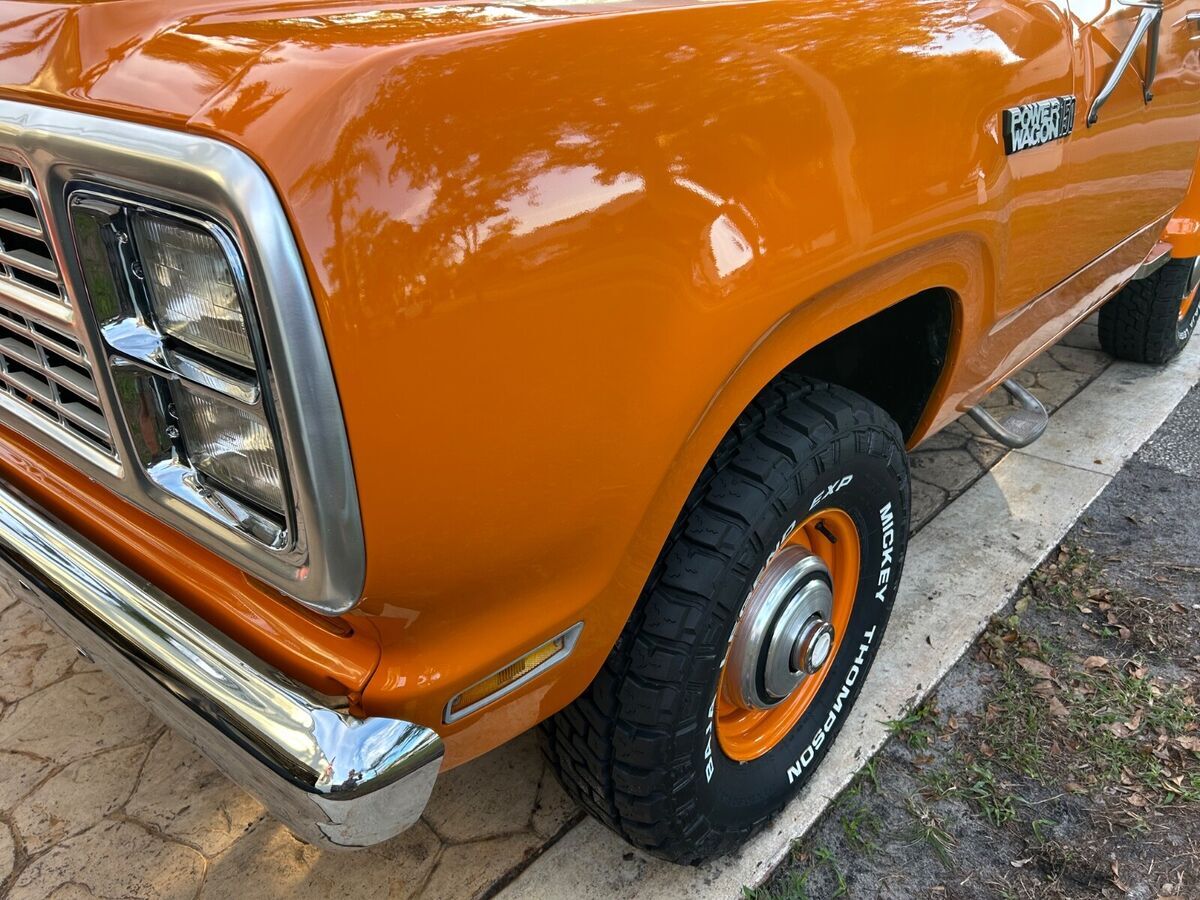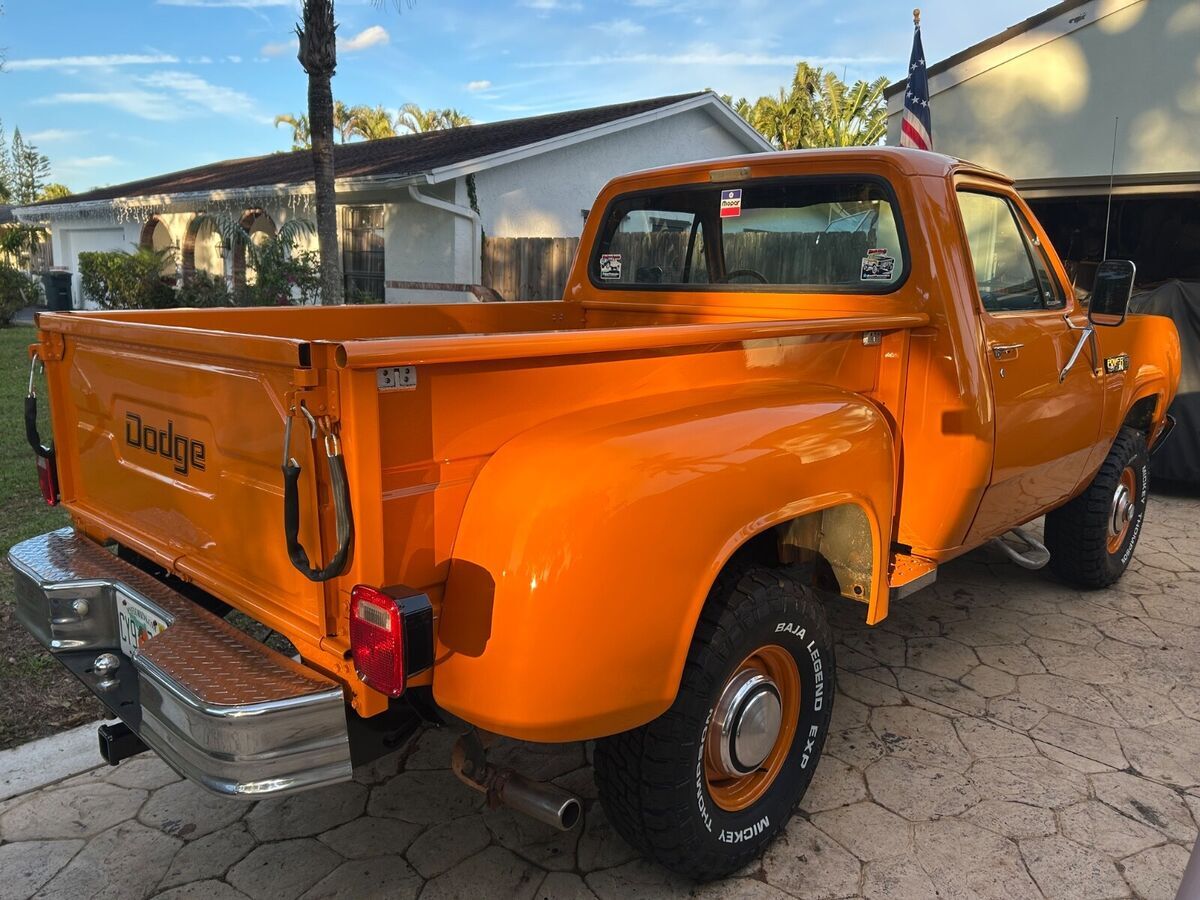 1980 Dodge W150 PowerWagonOriginal 4WD Dodge stepside pickup, in its original optional color of Sunburst Orange.I found this almost completely rust free Power Wagon in Texas, where it had been parked for years after the original engine quit running.The original engine was a 318 and the previous owner found that the block was cracked after pulling it for rebuild. The truck sat for several years. I bought the truck complete minus the 318 which was not rebuildable. I shipped the truck to my home in Florida.I installed a rebuilt 360 which a friend of mine built, he only builds 340 and 360 engines. I changed the interior, which was fried by the TX sun, from tan to black. I had the truck repainted in its original color which was an option in 79/80, Sunburst Orange. I sourced original wheels and had them painted to match, and located the correct original hubcaps. I purchased the original oak bed wood, stained and sealed it, and installed it. I power washed the underside of the truck, and painted everything with POR-15 which essentially seals it for good. I installed chrome diff covers for the front and rear axles. I had the front aluminum grille polished and then anodized to protect it. I replaced the front windshield with a good used one. New chrome front bumper, and original, (probably Dealer installed), rear stainless steel step bumper. Replacement Holley steel fuel tank with internal Holley electric fuel pump. I used good quality made in USA parts either new or NOS, and paid extra for them. I used grade 8 hardware when necessary, and stainless hardware pretty much everywhere else.Good running, good looking Power Wagon, in its original color. Turns heads, lots of thumbs up, many questions!Engine:Completely rebuilt 360, bored 30 thousands over, new pistons, rings, bearings, double roller timing chain, new oil pump, original cast iron 360 spread-bore intake manifold, rebuilt original Carter Thermo-Quad four barrel with correct serial number for truck 360, original truck 4WD center dump exhaust manifolds. Cylinder heads resurfaced, fresh valve job, new valve seals. NOS 1970 340 camshaft, NOS Mopar lifters, new spark plugs. new high performance ignition wires. New radiator built to original factory specs, looks original, and original fan shroud fits perfectly. Original Mopar seven blade fan with new fan clutch. New radiator hoses, and new heater hoses. New electronic Mopar distributor, and Orange Ignition box. Engine was broken in correctly using a high zinc racing oil. I have an original single scoop factory air-cleaner for the truck, not pictured.Exhaust:The truck has an original style two into one exhaust system. It still has the catalytic converter, and a single large muffler. So the truck is pretty quiet. I was going to replace with a set of dual exhaust, but I suspect some potential buyers may want the original exhaust with the cat for emissions inspection reasons? Easy enough to add the exhaust of your choice if you don't need emissions inspection in your State.Transmission:I installed a 2200rpm B&M torque converter, fresh fluid, new filter, new shifter selector seals, filter and pan gasket. Transmission was reportedly rebuilt a few years before 318 engine failed. Transmission shifts good and does not leak. I also installed new transmission cooler to radiator lines.Suspension:Is original and still at factory lift height. I installed NOS Rod Hall off road shocks. New power brake booster. New Front brake pads and brake calipers. Cleaned and adjusted the rear drum brakes. Added front and rear chrome differential covers, gaskets, and fresh gear oil. Gears are the factory 3:23. Front axle is Dana 44, and rear is Chrysler Corp 9.25”. Chrysler went to locking hubs in 1979, where before that they were full time four wheel drive. The original Spicer lockable hubs are still installed on the front axle. Everything under the truck was power washed and hand painted with POR-15, which seals it permanently from rust. I painted the frame, the axles, and the leaf springs. Also painted the bolted on Class 3 hitch.Cab:This TX truck body was almost completely rust free, very minor spots here and there to repair. We did patch two or three spots in the cab floors which were thin. These patches were cut from repro' floor pans, and were welded in properly, and the patch welds can be seen from under the cab. Installed a new chrome front bumper with new chrome bolts. I had the original aluminum front grille polished, after minor dents were removed, then anodized to protect it. These grilles are not reproduced and are very hard to find in good condition. The grille is not perfect with some minor corrosion marks still visible on the passenger side front corner. But over all it does look really good. I had the headlamp surrounds re-chromed. Someone added an aftermarket step on each side of the cab many years ago, they are pretty cool so I left them installed, easily removed if not wanted. I reused the original door mounted rear view mirrors, after polishing the stainless, and replacing the mirror glass in both mirrors. I replaced the original outside door handles with re-chromed door handles. New door locks and matching keys were also installed. New reproduction Power Wagon fender emblems, good used 150 fender emblems.Interior:The interior was originally tan in color, I changed it to black. I installed new ignition switch and key which matches the new door locks, and both door locks as a matching set. I replaced the door rubber window trim which looks good, but the windows are harder to roll up and down now, but seem to be getting easier. I added both inner and outer reproduction rocker aluminum floor trim. I installed a rubber floor mat which is vacuum molded to the shape of the floor just like carpet would be. NOS brake pedal rubber pad. I installed a new 4WD shifter boot, and polished the tarnished chrome shifter arm. I painted the lower metal dash frame black to match the other black interior components being c
