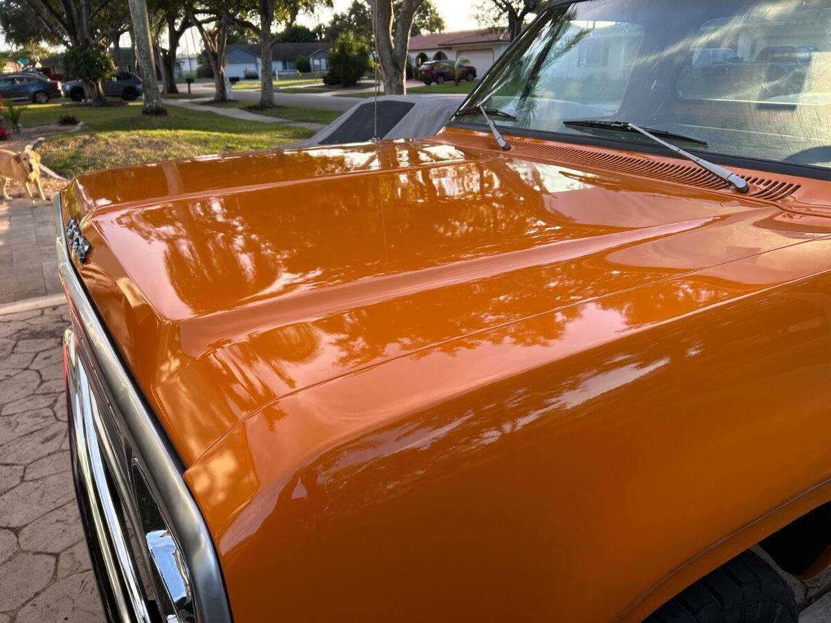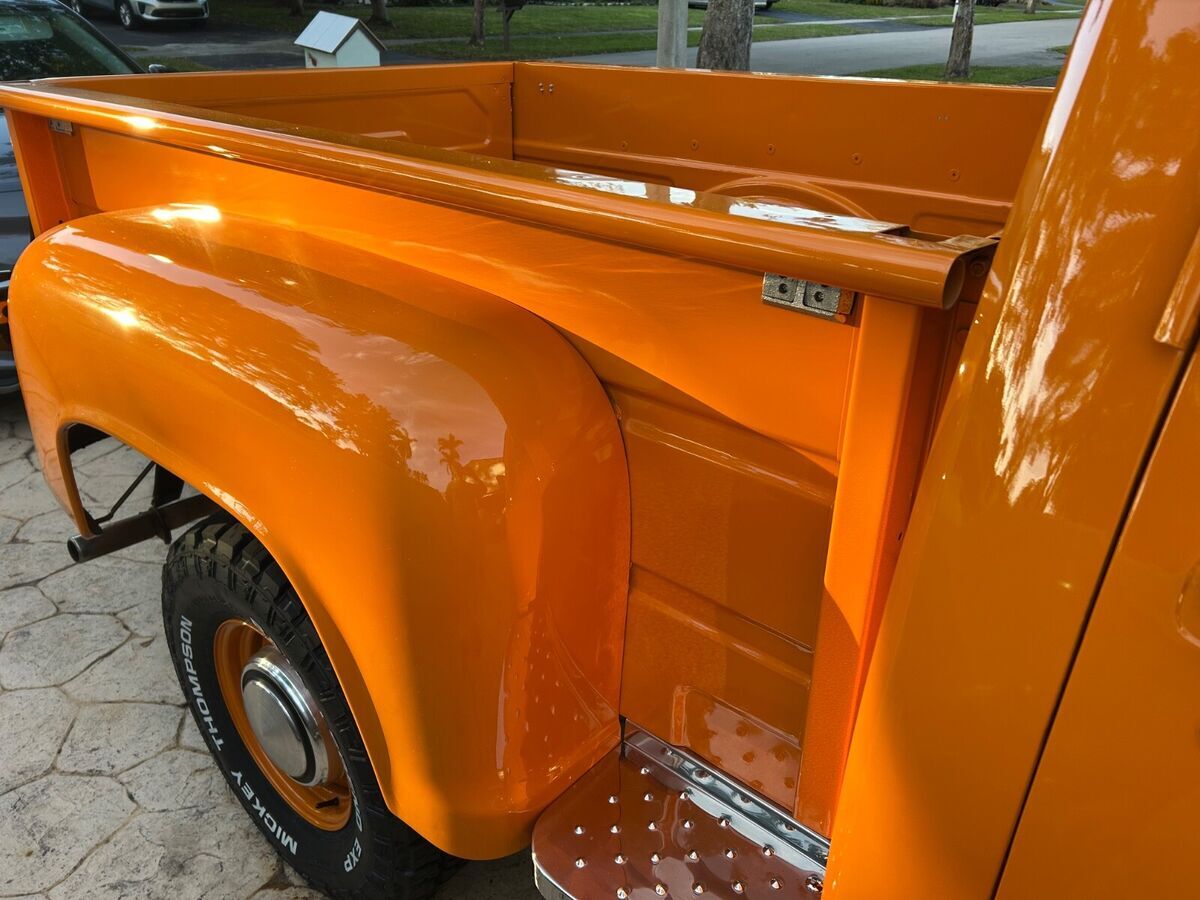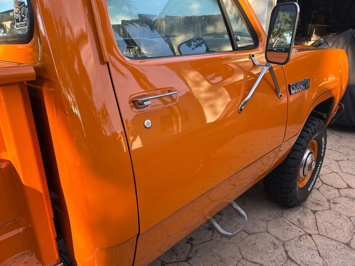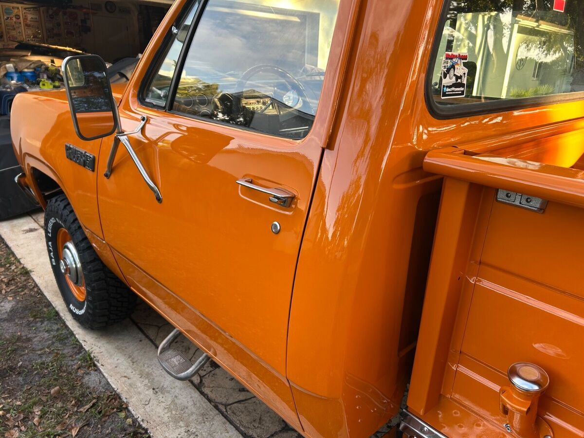 1980 Dodge W150 PowerWagonOriginal 4WD Dodge stepside pickup, in its original optional color of Sunburst Orange.I found this almost completely rust free Power Wagon in Texas, where it had been parked for years after the original engine quit running.The original engine was a 318 and the previous owner found that the block was cracked after pulling it for rebuild. The truck sat for several years. I bought the truck complete minus the 318 which was not rebuildable. I shipped the truck to my home in Florida.I installed a rebuilt 360 which a friend of mine built, he only builds 340 and 360 engines. I changed the interior, which was fried by the TX sun, from tan to black. I had the truck repainted in its original color which was an option in 79/80, Sunburst Orange. I sourced original wheels and had them painted to match, and located the correct original hubcaps. I purchased the original oak bed wood, stained and sealed it, and installed it. I power washed the underside of the truck, and painted everything with POR-15 which essentially seals it for good. I installed chrome diff covers for the front and rear axles. I had the front aluminum grille polished and then anodized to protect it. I replaced the front windshield with a good used one. New chrome front bumper, and original, (probably Dealer installed), rear stainless steel step bumper. Replacement Holley steel fuel tank with internal Holley electric fuel pump. I used good quality made in USA parts either new or NOS, and paid extra for them. I used grade 8 hardware when necessary, and stainless hardware pretty much everywhere else.Good running, good looking Power Wagon, in its original color. Turns heads, lots of thumbs up, many questions!Engine:Completely rebuilt 360, bored 30 thousands over, new pistons, rings, bearings, double roller timing chain, new oil pump, original cast iron 360 spread-bore intake manifold, rebuilt original Carter Thermo-Quad four barrel with correct serial number for truck 360, original truck 4WD center dump exhaust manifolds. Cylinder heads resurfaced, fresh valve job, new valve seals. NOS 1970 340 camshaft, NOS Mopar lifters, new spark plugs. new high performance ignition wires. New radiator built to original factory specs, looks original, and original fan shroud fits perfectly. Original Mopar seven blade fan with new fan clutch. New radiator hoses, and new heater hoses. New electronic Mopar distributor, and Orange Ignition box. Engine was broken in correctly using a high zinc racing oil. I have an original single scoop factory air-cleaner for the truck, not pictured.Exhaust:The truck has an original style two into one exhaust system. It still has the catalytic converter, and a single large muffler. So the truck is pretty quiet. I was going to replace with a set of dual exhaust, but I suspect some potential buyers may want the original exhaust with the cat for emissions inspection reasons? Easy enough to add the exhaust of your choice if you don't need emissions inspection in your State.Transmission:I installed a 2200rpm B&M torque converter, fresh fluid, new filter, new shifter selector seals, filter and pan gasket. Transmission was reportedly rebuilt a few years before 318 engine failed. Transmission shifts good and does not leak. I also installed new transmission cooler to radiator lines.Suspension:Is original and still at factory lift height. I installed NOS Rod Hall off road shocks. New power brake booster. New Front brake pads and brake calipers. Cleaned and adjusted the rear drum brakes. Added front and rear chrome differential covers, gaskets, and fresh gear oil. Gears are the factory 3:23. Front axle is Dana 44, and rear is Chrysler Corp 9.25”. Chrysler went to locking hubs in 1979, where before that they were full time four wheel drive. The original Spicer lockable hubs are still installed on the front axle. Everything under the truck was power washed and hand painted with POR-15, which seals it permanently from rust. I painted the frame, the axles, and the leaf springs. Also painted the bolted on Class 3 hitch.Cab:This TX truck body was almost completely rust free, very minor spots here and there to repair. We did patch two or three spots in the cab floors which were thin. These patches were cut from repro' floor pans, and were welded in properly, and the patch welds can be seen from under the cab. Installed a new chrome front bumper with new chrome bolts. I had the original aluminum front grille polished, after minor dents were removed, then anodized to protect it. These grilles are not reproduced and are very hard to find in good condition. The grille is not perfect with some minor corrosion marks still visible on the passenger side front corner. But over all it does look really good. I had the headlamp surrounds re-chromed. Someone added an aftermarket step on each side of the cab many years ago, they are pretty cool so I left them installed, easily removed if not wanted. I reused the original door mounted rear view mirrors, after polishing the stainless, and replacing the mirror glass in both mirrors. I replaced the original outside door handles with re-chromed door handles. New door locks and matching keys were also installed. New reproduction Power Wagon fender emblems, good used 150 fender emblems.Interior:The interior was originally tan in color, I changed it to black. I installed new ignition switch and key which matches the new door locks, and both door locks as a matching set. I replaced the door rubber window trim which looks good, but the windows are harder to roll up and down now, but seem to be getting easier. I added both inner and outer reproduction rocker aluminum floor trim. I installed a rubber floor mat which is vacuum molded to the shape of the floor just like carpet would be. NOS brake pedal rubber pad. I installed a new 4WD shifter boot, and polished the tarnished chrome shifter arm. I painted the lower metal dash frame black to match the other black interior components being c