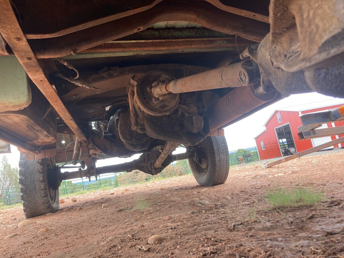 This was going to be my husband’s next project before his cancer got in the way. He passed away this past Thanksgiving, and I am selling his vehicles. I don’t know much about them, but I will provide what information I can. We believe this was originally a Forest Service vehicle (the green paint is the old US Forest Service color). It has the frame for the seat, without upholstery. There is some rusting out of the floor, but it comes with brand new pans to put in.