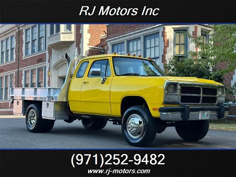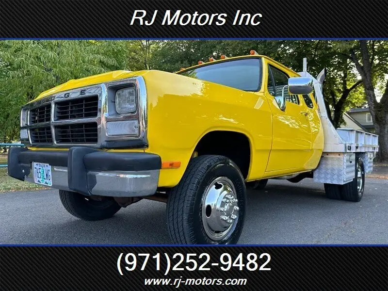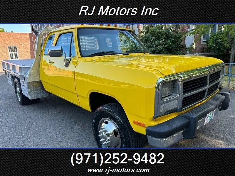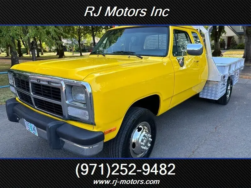 WE CAN SHIP THIS BEAUTIFUL 5-SPEED MANUAL CUMMINS NATIONWIDE !!! CHECK OUT THIS LOW MILEAGE RUST FREE DODGE RAM !! SUPER LOW MILES PICTURES OR VIDEOS PLEASE CONTACT US THANKS DON'T LOSE YOUR CHANCE ON THIS RARE FIND. THIS WILL NOT LAST LONG SO PLEASE SEE US ON OUR WEBSITE RJ-MOTORS.COM FOR MORE INFORMATION, MORE DETAILED PHOTOS & ADDITIONAL INVENTORY! CALL US FOR APPOINTMENT TODAY! "BY APPOINTMENT ONLY" WE'RE A SMALL FAMILY OWNED AND OPERATED DEALERSHIP PLEASE CALL AHEAD OF TIME TO CHECK FOR AVAILABILITY & TO SCHEDULE YOUR HASSLE-FREE DEMONSTRATION! THANK YOU FOR YOUR UNDERSTANDING Introducing a 1993 Dodge RAM 350 2dr Turbodiesel, powered by a 5L TC I6 OHV 12V engine. This vehicle comes with factory default features that include a durable suspension system, power steering, power brakes, and a comfortable gray cloth interior. The exterior is coated in a bold yellow finish, giving it a distinctive look. With less than 161,000 miles, this vehicle has an average mileage of fewer than 6,000 miles per year. It is in excellent overall condition, making it an excellent choice for those in search of a reliable and stylish truck.