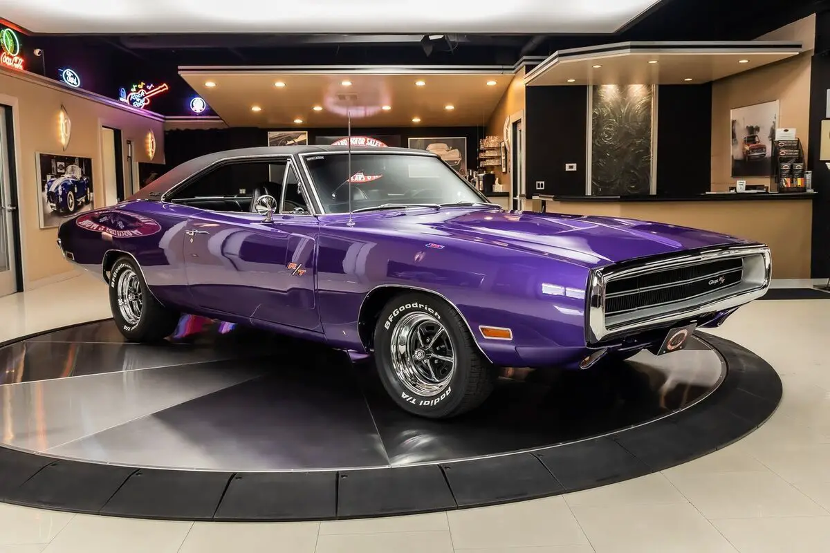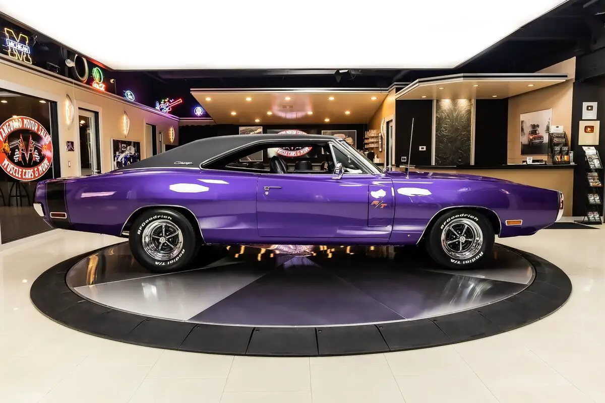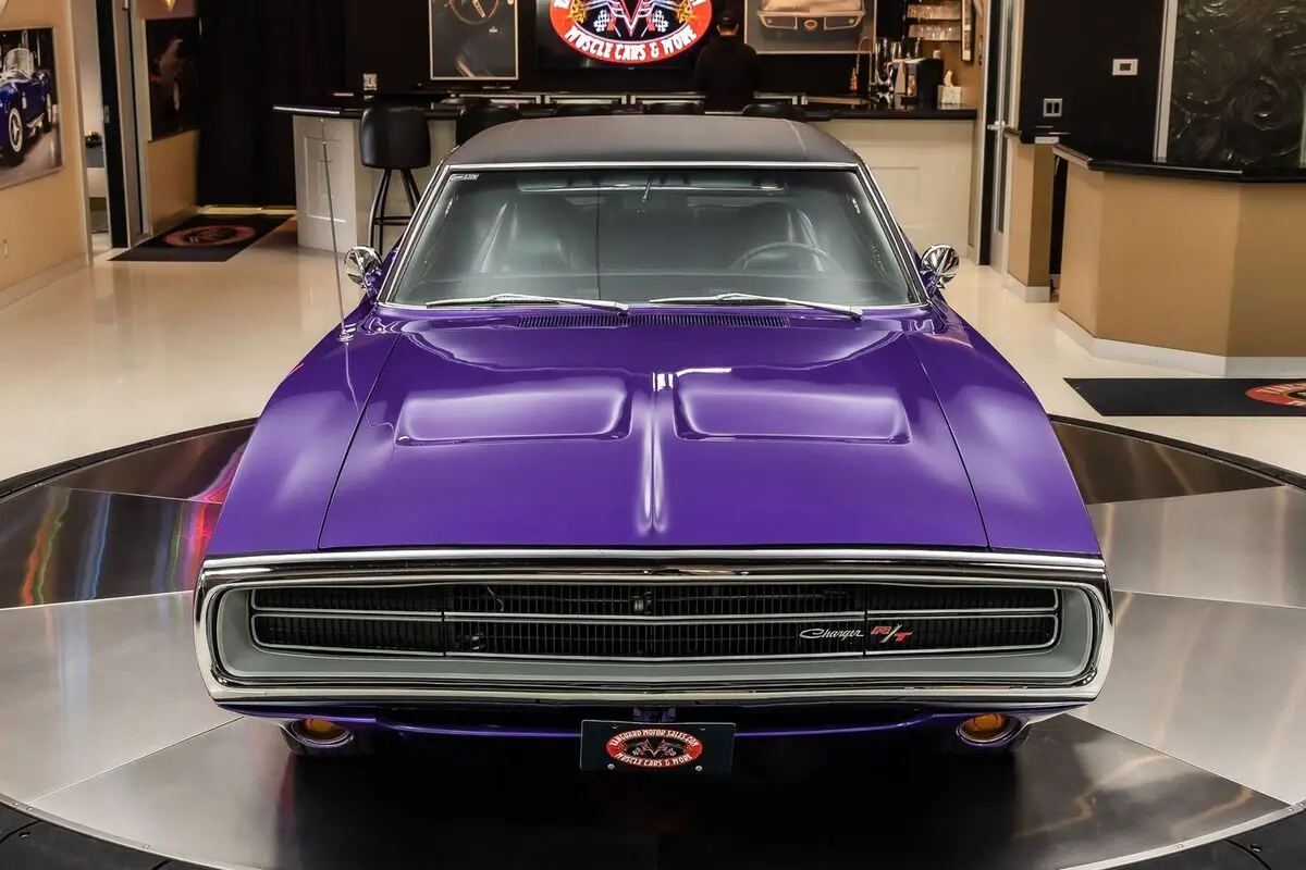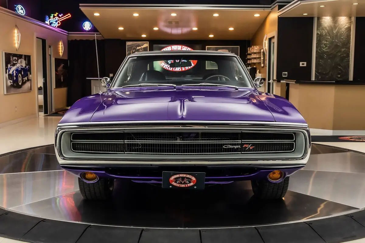 Check out this amazing 1970 Dodge Charger R/T! This Charger has been rotisserie restored to the closest detail with no expense spared! This Charger has been finished in Plum Crazy Purple along with Black Vinyl Top, Rear Black Stripe and a set of Magnum 500 wheels wrapped in BF Goodrich Radial TA tires completing the look! Under the hood of this beautiful Mopar is a 440ci V8 with an Edelbrock Carburetor! Power is sent to the rear wheels through a 3 Speed Automatic Transmission and a Factory Style Open Rear End with 2.73:1 Gear Ratio. This car has also been optioned with Power Brakes, Power Steering and After Market Air Conditioning!