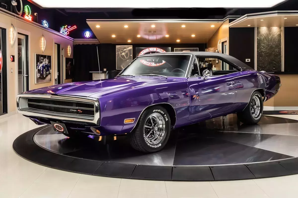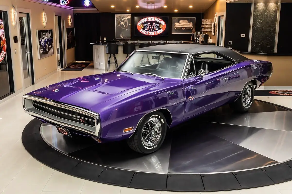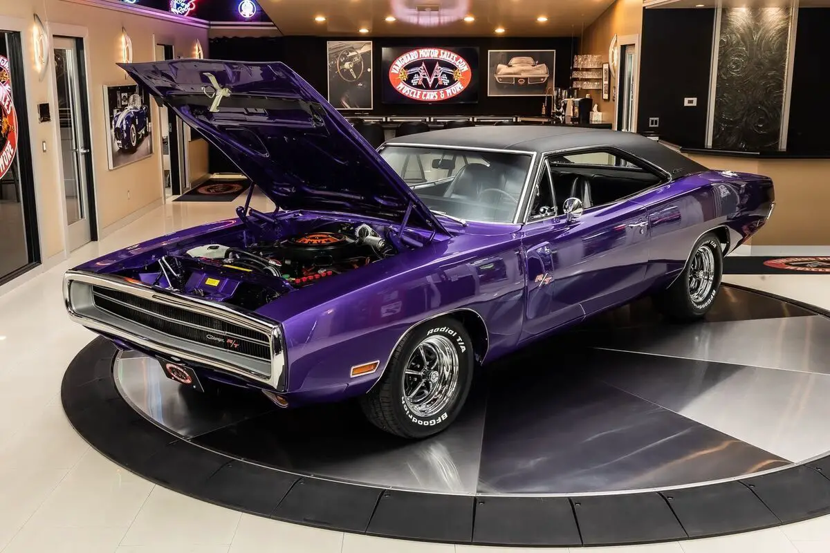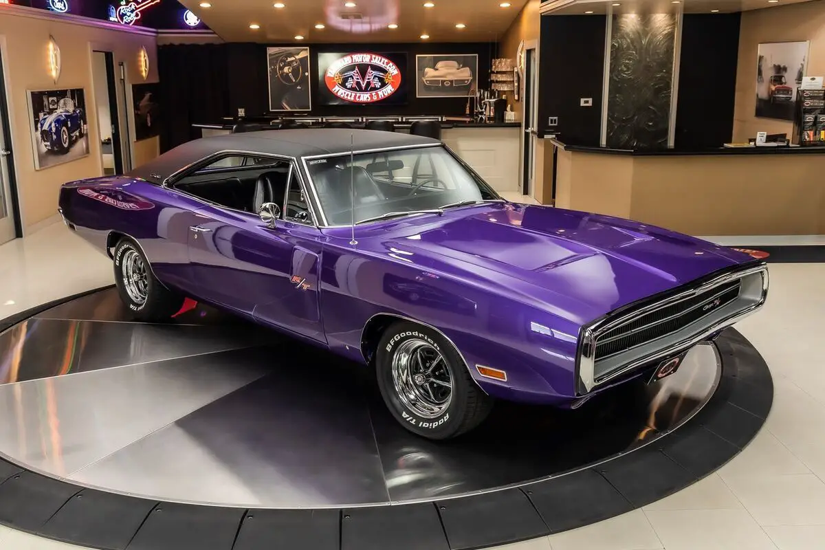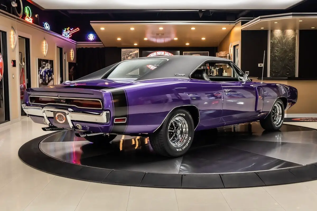 Check out this amazing 1970 Dodge Charger R/T! This Charger has been rotisserie restored to the closest detail with no expense spared! This Charger has been finished in Plum Crazy Purple along with Black Vinyl Top, Rear Black Stripe and a set of Magnum 500 wheels wrapped in BF Goodrich Radial TA tires completing the look! Under the hood of this beautiful Mopar is a 440ci V8 with an Edelbrock Carburetor! Power is sent to the rear wheels through a 3 Speed Automatic Transmission and a Factory Style Open Rear End with 2.73:1 Gear Ratio. This car has also been optioned with Power Brakes, Power Steering and After Market Air Conditioning!