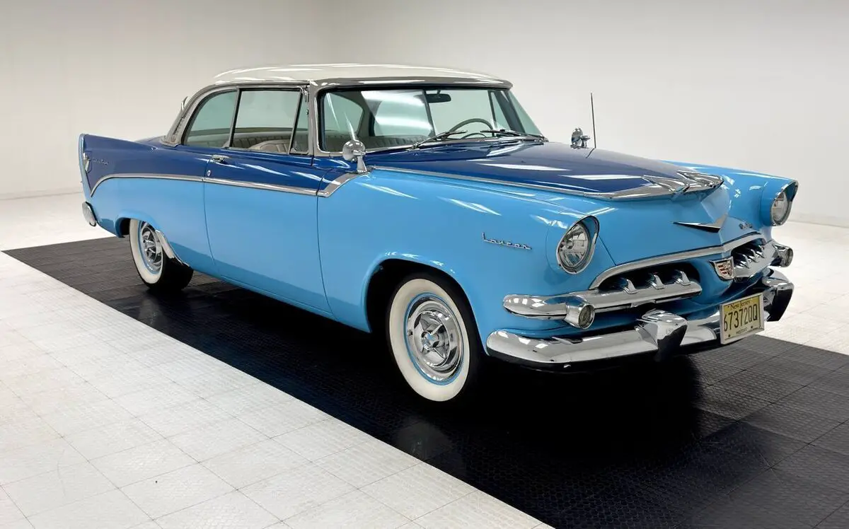 1956 Dodge Royal Custom Lancer Hardtop For consignment, a 1956 Dodge Royal Custom Lancer hardtop with a title verified 69,944 actual miles and all of aeronautical influences Dodge could muster into a single car. In a period of unique and creative designs, this Lancer stands apart and is a nicely preserved example we rarely see at the mall! Exterior Not satisfied with simply two tone coverage, Dodge added a third and in this case it was repainted with a Sky Blue body is capped by a Royal Blue layer under a white roof, creating a dramatic three tone presentation. The darker blue panel cants rearward at which point it flares at the tail, creating a sweeping effect and at the same time, emphasizing the rear fin and jet-like tail. The afterburner tail lights are based in white nacelles, trimmed in chrome which blends visually with the large bumper, the panel trim, and the V-shaped decklid ornamentation. In front, an artful wing fronts the bulging hood and trails back to frame the Royal Blue. Spectacular! Big chrome teeth adorn the grille while a cross design on the hubcaps front 15-inch Sky Blue wheels wrapped in white walls, the rears fronted by a chrome gravel guard. It's in fantastic condition. If we had to be picky, there's some minor pitting on the side mirror base but the entirety of the metal is bright, and the paint is very nice. Interior The color palette continues on the interior beginning with the door panels that have a chrome header, aluminum insert, then blue and white layers over a carpeted kick panel. The split bench is based in a sky blue shell, while buttoned blue panels define the sitting areas surrounded by blue stitched white vinyl in fantastic shape and mirrored by the back bench with sidewalls that pull in the material and color configuration of the door panels. Your aircraft awaits up front where even the steering wheel is more than one color and wears a shiny chrome horn ring and a hairline crack in the white upper rim. Then, you gaze upon the gauge cluster, the brochure calls it the "flite-styled, (sic), control panel" with a row of small circles flanking a black faced speedometer in the middle, and to your left is the push button shifter. The clean mid panel, with its ribbed chrome backing plate, hosts a number of metallic knobs and the AM radio and to the right, is an asymmetrical glove box door with a stylized handle that conjures the exterior door handles. The footwells are lined with the button backed blue vinyl over black loop carpet and the trunk is fully dressed in patterned material identical to the interior. Drivetrain Under the hood, a super clean 315ci Red Ram V8 rated at 218 horsepower with a 2-barrel carburetor and mated to a 2-speed PowerFlite automatic transmission that sends power to 3.54 gears in back. Power disc brakes are up front and rear power drums are on board. The underside of the hood is texture coated and the bay itself allows for easy access to the engine, unencumbered by extra components. Power steering which Dodge called "full time coaxial power steering" is on board. Undercarriage The underside is generally clean with some typical surface rust, some fluid on the engine bottom and some residual on the rear differential. The dual exhaust with mismatched mufflers, shows newer condition on the left with a glasspack style muffler, while the right has some rust holes in the exhaust pipe after the stock style muffler and the full extent has surface rust. Both pipes terminate with dressy chrome tips that extend past the rear bumper. Suspension here is made up of coil springs in front and leaf springs in back. Drive-Ability Bright and white on the inside, the cavernous interior provides quintessential 1950's vibes, a big steering wheel, and lots of curved glass for visibility. The 315 comes to life with a gentle rumble from the exhaust and rolls smoothly onto the test loop where it proves itself a comfortable cruiser, tracking straight, stopping well, and affording decent power to move this big car. Functionality is on point as well with only the clock not operating amongst a fully operational vehicle. While Classic Auto Mall represents that these functions were working at the time of our test drive, we cannot guarantee these functions will be working at the time of your purchase. Nearly 50,000 Royal Customs were produced in 1956 and that includes all configurations including this 2 door Lancer model. This was the top of the line product for Dodge and it serves as a chrome laden, multi colored piece of rolling artwork today. A stunning show car that needs nothing, (except for that exhaust pipe), and your tri-colored ticket to the podium at the end of the car show! TRIM TAG B7-Unknown SCHEDULE 05 04 16 065-May 4th BODY 836-V8 Lancer Custom Royal 2 Door Hardtop PAINT 160-Stone Gray TRIM 545-Silvery Black & White Cordagrain & Patterned Jacquard Weave Fabric Classic Auto Mall is home to more than 1,000 classic and collectible vehicles for sale via consignment in a climate controlled 336,000-square foot showroom (that's more than 8 acres!). The largest single location consignment dealer of classic and collectible vehicles in the country is located in Morgantown, Pennsylvania, just 1-hour west of Philadelphia off Exit 298 of the I-76 Pennsylvania Turnpike. For more information visit or call us at 610-901-3804. Contact us anytime for more information or to come see the vehicle in person. There is no guarantee of mileage. A $299 Dealer Administrative fee is not included in the advertised price.