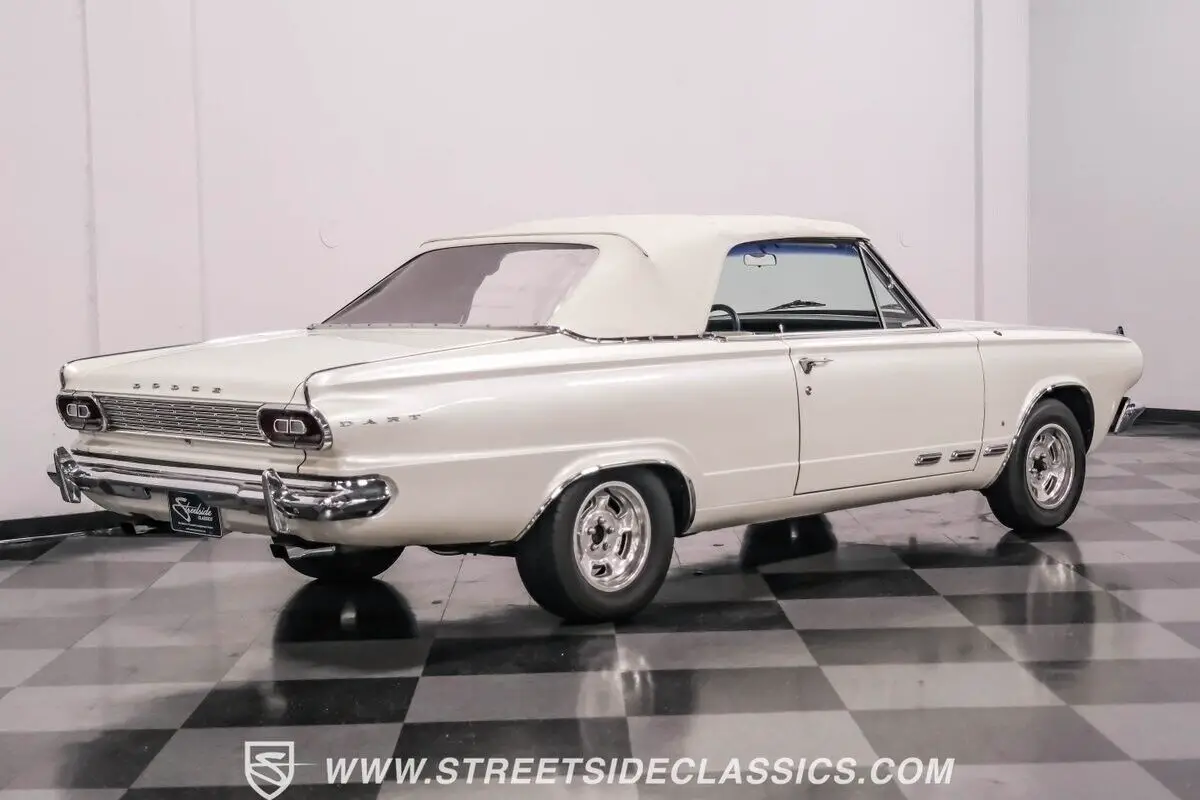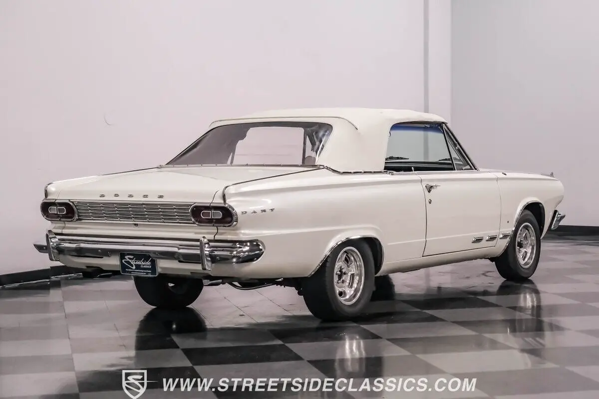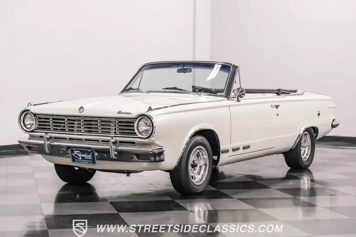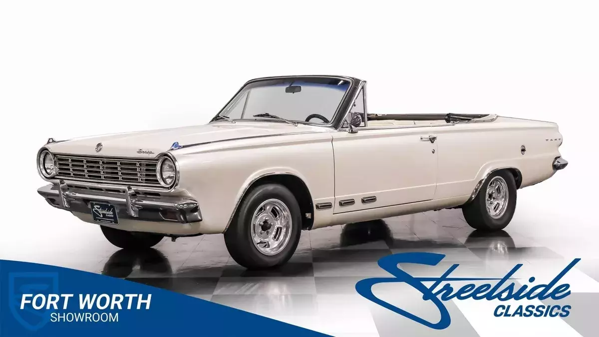 Vehicle Original VIN : L455107823This 1965 Dodge Dart GT Convertible combines performance and style with its pearl white finish and power-operated white vinyl top. The exterior comes alive with genuine period-correct 14-inch Halibrand Sprint wheels wrapped in Hankook 195/70R14 front and 235/60R14 rear tires. The clean lines of this Dart GT create a bold look, enhanced by its chrome trim and electric antenna. The pearl white interior features vinyl bucket seats, a Grant GT steering wheel and Hurst shifter for performance-oriented control. The dash houses factory gauges and a Sun Super Tach II on the steering column, while a Pioneer AM/FM/CD/AUX stereo mounted in the glovebox provides modern audio options with an amp tucked neatly under the seat. The 5.9-liter 360 V8 from a late model Mopar provides substantial power, managed through a 4-speed manual transmission with hydraulic clutch. A Holley carburetor and Mopar Performance M1 intake maximize the engine's potential. The updated mechanical specs include a rebuilt 8 1/4" rear end with 3.55 limited-slip gears, front and rear sway bars, and a FlowMaster dual exhaust system that announces this Dart's presence. HIGHLIGHTS: • 5.9L 360 V8 Engine • 4-Speed Manual Transmission with Hydraulic Clutch • Holley Carburetor • Mopar Performance M1 Intake • FlowMaster Dual Exhaust • Rebuilt 8 1/4" Rear End with 3.55 Limited-Slip Gears • Front and Rear Sway Bars • Power Steering • Pearl White Paint • Power-Operated White Vinyl Top • 14" Halibrand Sprint Wheels with Hankook 195/70R14 Front, 235/60R14 Rear Tires • Pearl White Interior w/ Bucket Seats • Hurst Shifter • Sun Super Tach II • Pioneer AM/FM/CD/AUX Stereo with Amp The 1965 Dodge Dart GT Convertible brings together raw Mopar power with its 360 V8 engine and 4-speed manual transmission. The white-on-white color combination and distinctive Halibrand wheels make this GT Convertible an exceptional example of American muscle. Call today!