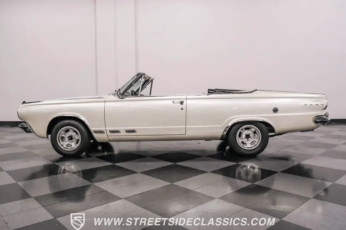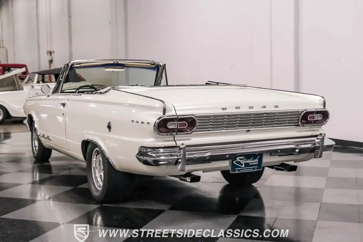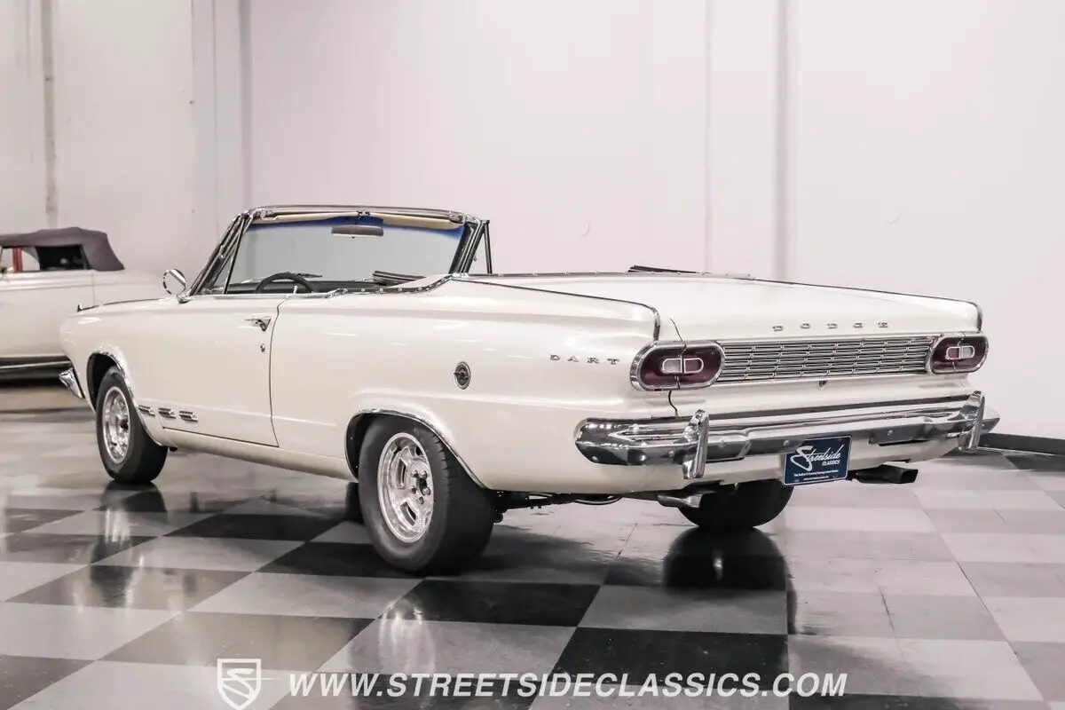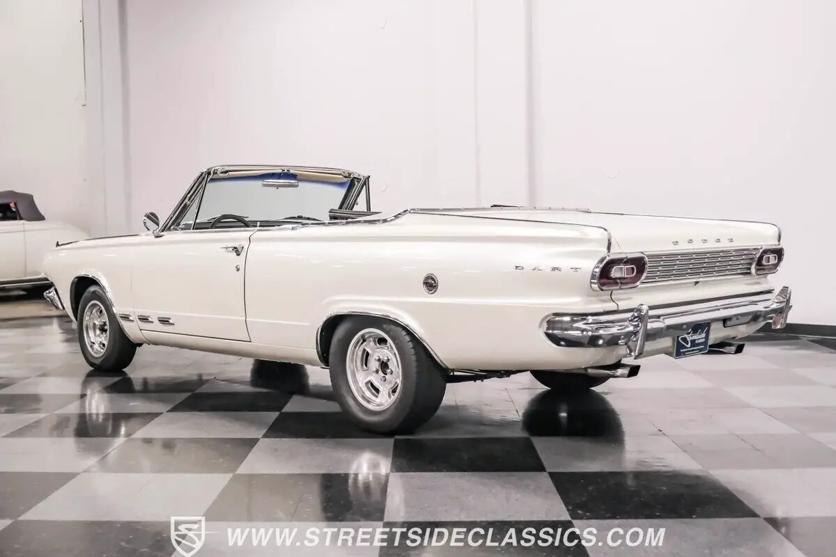Vehicle Original VIN : L455107823This 1965 Dodge Dart GT Convertible combines performance and style with its pearl white finish and power-operated white vinyl top. The exterior comes alive with genuine period-correct 14-inch Halibrand Sprint wheels wrapped in Hankook 195/70R14 front and 235/60R14 rear tires. The clean lines of this Dart GT create a bold look, enhanced by its chrome trim and electric antenna. The pearl white interior features vinyl bucket seats, a Grant GT steering wheel and Hurst shifter for performance-oriented control. The dash houses factory gauges and a Sun Super Tach II on the steering column, while a Pioneer AM/FM/CD/AUX stereo mounted in the glovebox provides modern audio options with an amp tucked neatly under the seat. The 5.9-liter 360 V8 from a late model Mopar provides substantial power, managed through a 4-speed manual transmission with hydraulic clutch. A Holley carburetor and Mopar Performance M1 intake maximize the engine's potential. The updated mechanical specs include a rebuilt 8 1/4" rear end with 3.55 limited-slip gears, front and rear sway bars, and a FlowMaster dual exhaust system that announces this Dart's presence. HIGHLIGHTS: • 5.9L 360 V8 Engine • 4-Speed Manual Transmission with Hydraulic Clutch • Holley Carburetor • Mopar Performance M1 Intake • FlowMaster Dual Exhaust • Rebuilt 8 1/4" Rear End with 3.55 Limited-Slip Gears • Front and Rear Sway Bars • Power Steering • Pearl White Paint • Power-Operated White Vinyl Top • 14" Halibrand Sprint Wheels with Hankook 195/70R14 Front, 235/60R14 Rear Tires • Pearl White Interior w/ Bucket Seats • Hurst Shifter • Sun Super Tach II • Pioneer AM/FM/CD/AUX Stereo with Amp The 1965 Dodge Dart GT Convertible brings together raw Mopar power with its 360 V8 engine and 4-speed manual transmission. The white-on-white color combination and distinctive Halibrand wheels make this GT Convertible an exceptional example of American muscle. Call today!