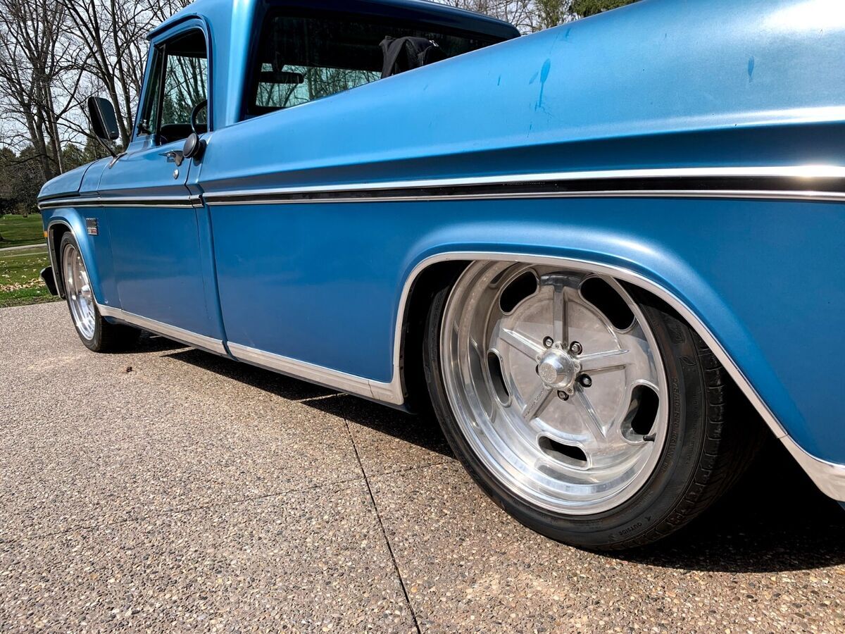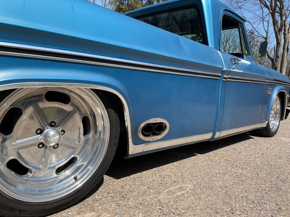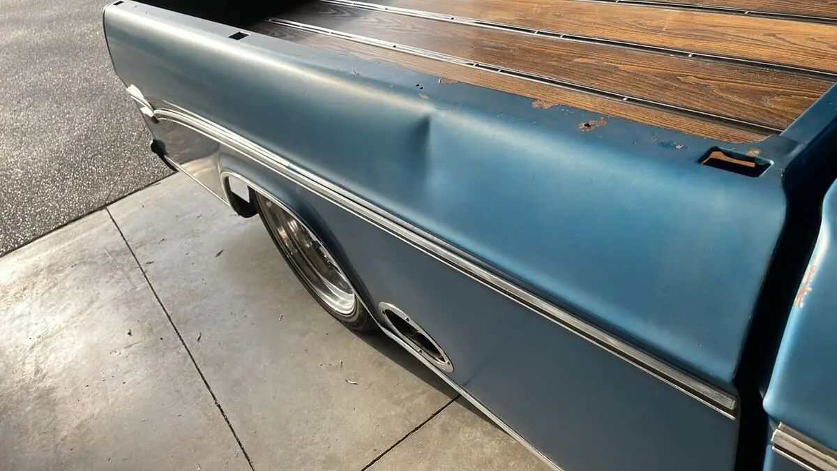 Body- mild dent on passenger side of bed. The rest of it is solid and rust free. No rust in roof rails, no rust in floors, rockers, bed, fenders. Very very, small hole on driver side floor pan. I did not install Dynamat or carpeting on floors so next owner can see condition. Obviously, the bed has been cut to accommodate the 4-link rear suspension and fuel cell. Previous owner had a shop make a raised bed to clear the C-notch. I had to remove it when I upgraded to a larger 20 gallon, Aeromotive Stealth 340 fuel cell, (baffled and in-tank fuel pump). It now has an access panel to the fuel cell.