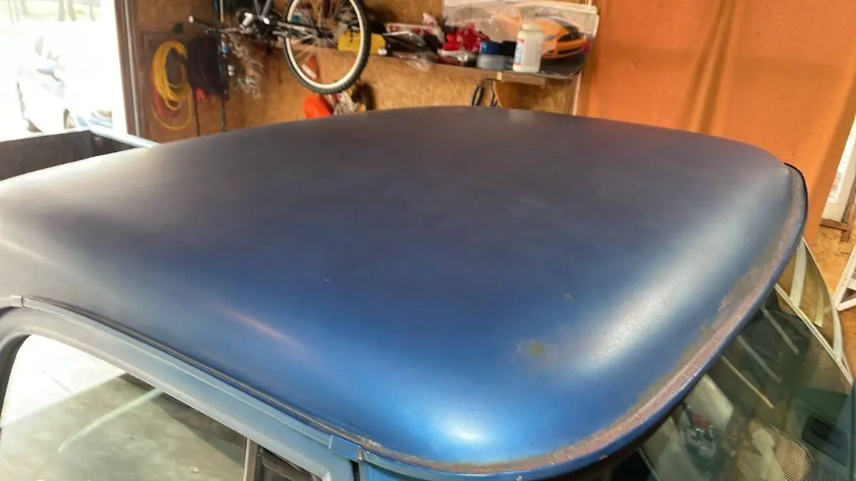 Interior- Swapped original steering wheel for 15” Mooneyes metalflake. I have the original steering wheel and center cap. Bench seat is in really good condition, minor splitting on the driver side, side. Installed Dynamat on headliner and center console, and inside driver side door. Original dash pad has a couple of cracks.
