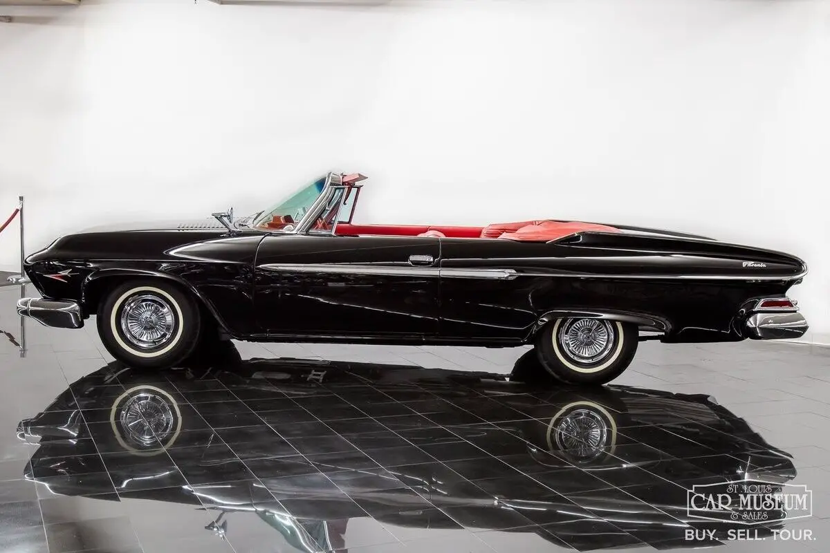 We are proud to offer for sale a gorgeous 1961 Dodge Dart Phoenix D-500 Convertible finished in factory code correct BB1- Midnight (Black) with a Black convertible top of correct 325- Red Vinyl & Cloth interior! This fine Phoenix D-500 example has been restored to an excellent, show-level condition throughout! Under the hood rests its original 383ci High Performance V8 with D-500 dual carburetion resting on the impressive Cross Ram tuned intake system to produce 340 horsepower and 460 lb. ft. of torque! Options include pushbutton TorqueFlite 3-speed automatic transmission, AM radio, power folding convertible top, heater/defrost, chrome full wheel covers, Goodyear Custom Super Cushion 8.00-14 1.5" whitewall tires, and a fender-mounted rearview mirror.