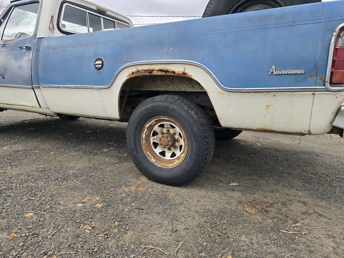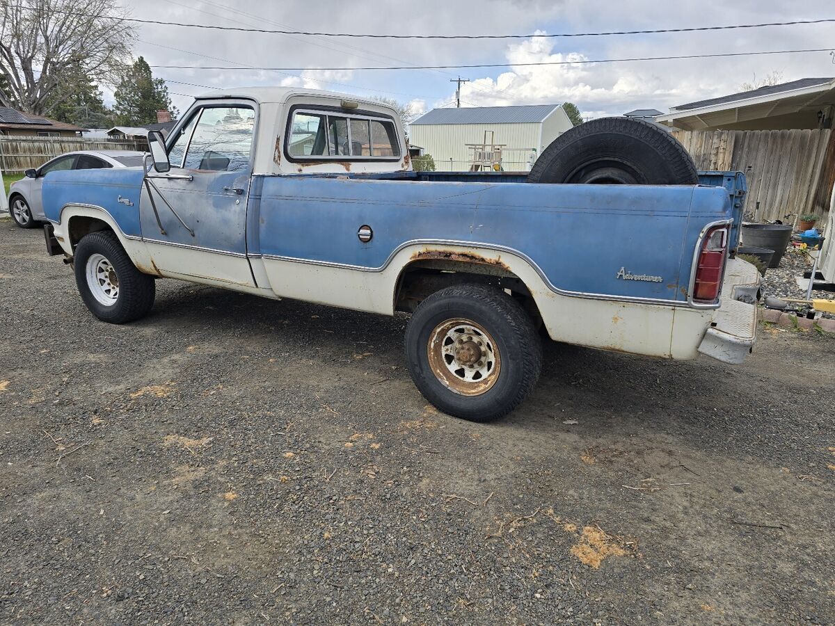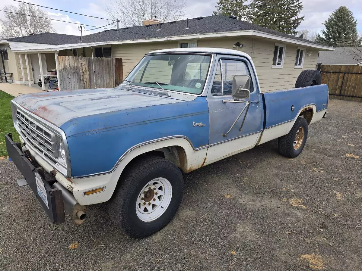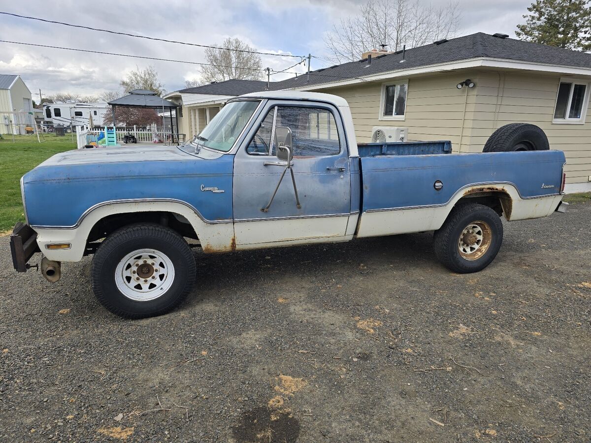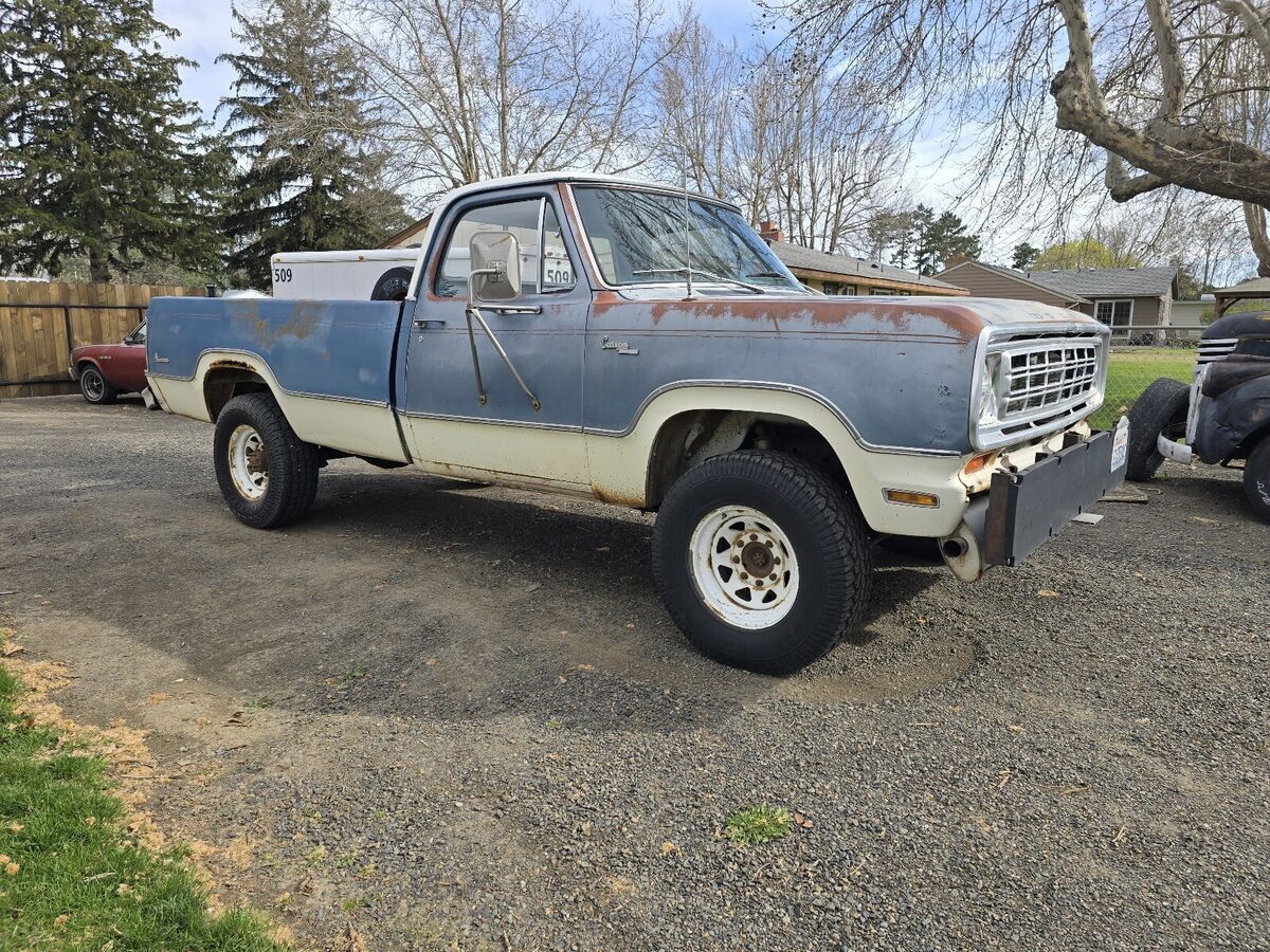 Cool classic 1975 Dodge power wagon W200 4x4 3/4 ton Adventurer Camper special package! Has a rebuilt 318 with low miles with aftermarket alum intake and 4v carb and new stsrter battery snd distributor, also has duel electric cooling fans that are electronically temperature controlled backed by a automatic trans and 4x4 with shift lever on the floor, Has some cool history. Was a retired fire dept truck from here in town at the Horse Heaven fire dept. Has been a local truck all its life. Motor runs great and has low miles. The truck drives great but it's geared low. I think 410s. 4x4 works as it should and has had the transfer case rebuilt at some point as well.. All the glass is nice cond. Not broken or cracked Tires are old and hasn't been driven alot in the last few yrs. No tailgate unfortunately, Does have a little rust in a few spots (have pics) but very solid orginal truck for the most part. Has a good clean washington title in my name and multiple sets of keys along with a box of extra and spare parts If you have anymore questions your welcome to call or text 5o9-46o-3592 located in eastern washington Kennewick 99336