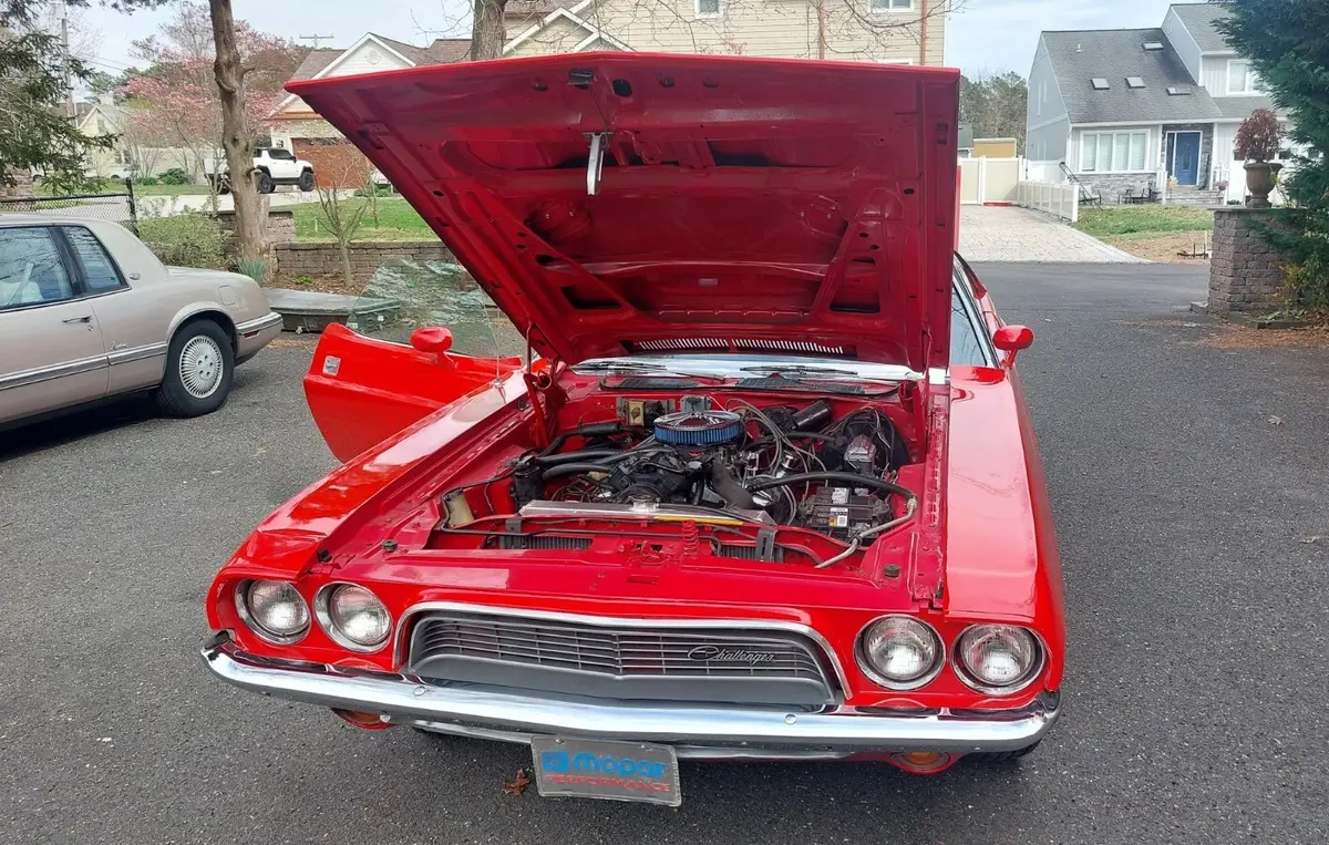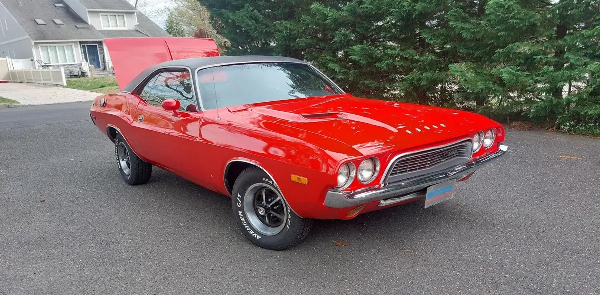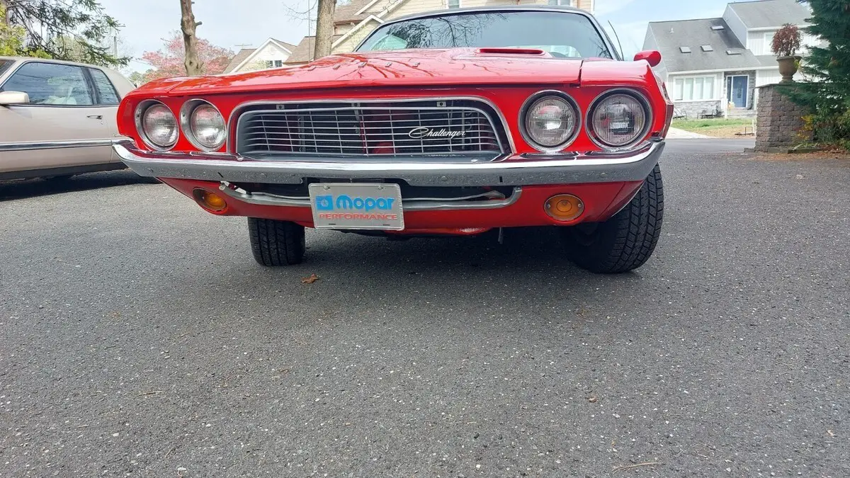 1974 DODGE CHALLENGER JUST OUT OF RESTORATION I WILL TRY TO DESCRIBE THIS CAR THE BEST I CAN.THERE HAS BEEN ALOT OF TIME AND MONEY INVESTED IN THIS CAR..THE BODY WAS STRIPPED TO BARE METAL AS IT HAD A TERRIBLE LIGHT BLUE PAINT JOB AN AMATURE HAD JUST LAID PAINT ALL OVER EVERYTHING.OTHER THAN THAT,THE CAR IS A GREAT SURVIVOR AND AFTER DISSASSEMLING AND SANDING MOSTLY SURFACE RUST SHE WAS GIVEN MANY COATS OF EPOXI PRIMER AND BLOCK SANDED BEFORE BASE COAT CLEAR COAT OF FE5 RALLY RED.SPORT HOOD AND REAR VALANCE WERE ADDED GIVING IT THAT TRUE CHALLENGER MUSCLE CAR LOOK. ALL THE TRIM WAS REMOVED AND EITHER RESTORED OR REPLACED.THE VINYL TOP AND WINDSHIELD IS NEW ALL THE OTHER GLASS IS VERY NICE ORIGINAL.. THE ORIGINAL 318 WAS REBUILT TO STOCK NEW PISTONS AND BEARINGS.THE HEADS WERE SENT OUT TO A MACHINE SHOP AND REBUILD.THE 340 TORQER INTAKE AND 1406 EDLEBROCK CARB GIVE THE CAR A REALLY POWERFUL DRIVE THROUGH THE CUSTOM DUAL EAHAUST THE THE STAINLESS TIPS. BEFORE REINSTALLING THE ENGINE, THE COMPARTMENT WAS PAINTED AND DETAILED NICELY.ALL THE BELTS AND HOSES AS WELL AS THE AC COMPONENTS WERE RESTORE AS WELL.THE TRANSMISSION IS NOT ORIGINAL.THE LIGHT DUTY 904 TRANS WAS REPLACED WITH THE BULLET PROOF 727.SHE HAS A 3.23 POSI REAR AND DOES GET UP AND GO..SHE IS ALOT OF FUN TO DRIVE AND REALLY TURNS HEADS! AS YOU SEE IN THE PICS, A FRESHLY RESTORED NICE DRIVER - NEW BRAKES ALL ARROUND POWER DISC IN FRONT AND 11 INCH REAR DRUMS ALL NEW HOSES,CALIPERS, AND MASTER CYLINDER. FRONT AND REAR STABILIZERS WITH TIGHT SUSPENSION,AIR SHOCKS IN REAR FRONT ALIGNMENT WAS ADJUSTED WHEN THE NEW AVENGERS 215/70/14 WERE INSTALLED ON THE ORIGINAL MAGNUM WHEELS. THE INTERIOR WAS GIVEN NEW LEGIONDARY SEATS WITH NEW CARPET,HEADLINER, AND DASH.ALL ELECTRICAL WORKS EXCEPT THE RADIO.CAR APEARS TO BE AN UNMOLESTED GOOD SOLID BODY AND FRAME, LOW MILEAGE SURVIVOR. AND IS READY FOR CRUISES. I HAVE DISCRIBED THIS BEAUTIFUL CAR THE BEST I COULD AND THE PICS SHOULD DO THE REST..PLEASE ASK ALL QUESTIONS BEFORE BIDDING/OFFER AS YOUR BID IS TO BUY.LESS THAN 10 FEEDBACK CONTACT ME FIRST. I AM NOT A DEALER AND HAVE CLEAR TITLE IN MY NAME PLEASE CHECK MY FEEDBACK FOR MY HONESTY. THANK YOU FOR LOOKING