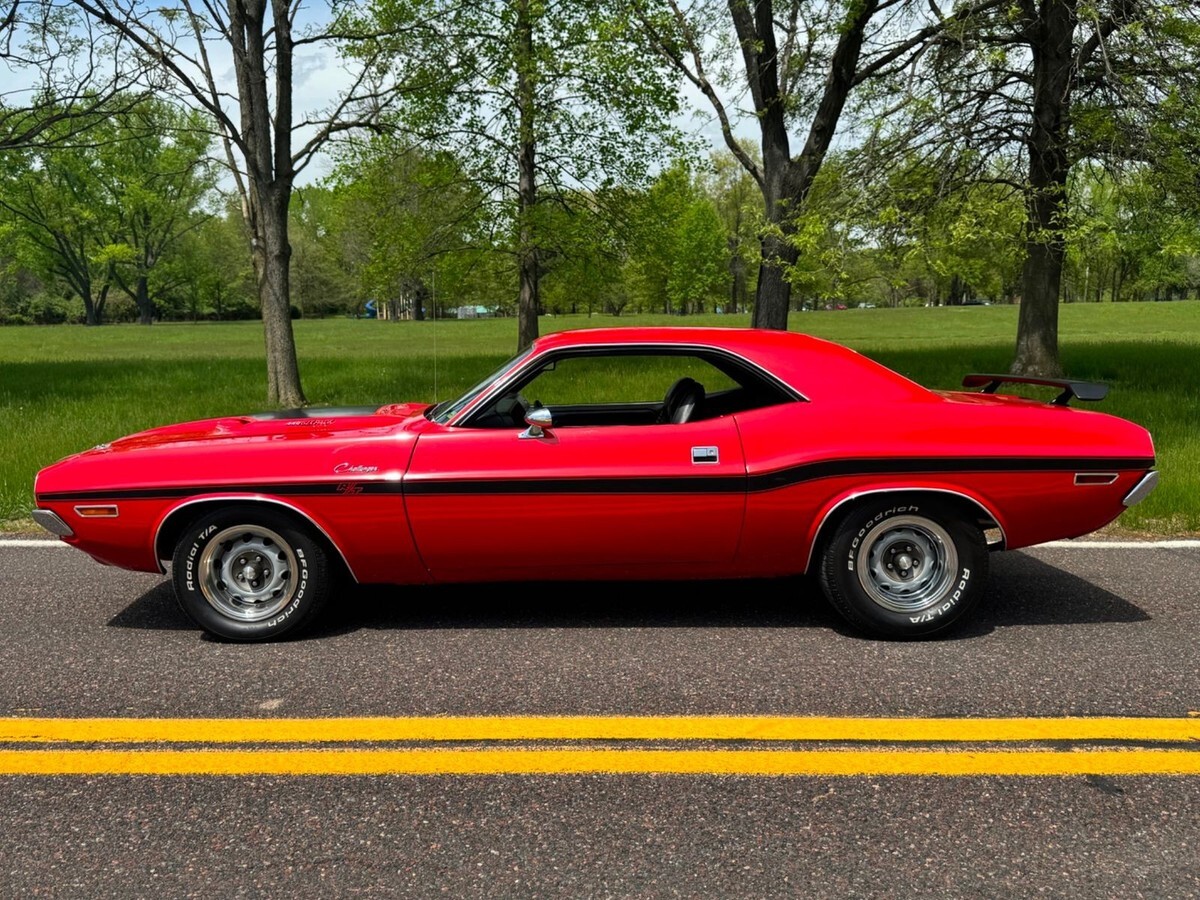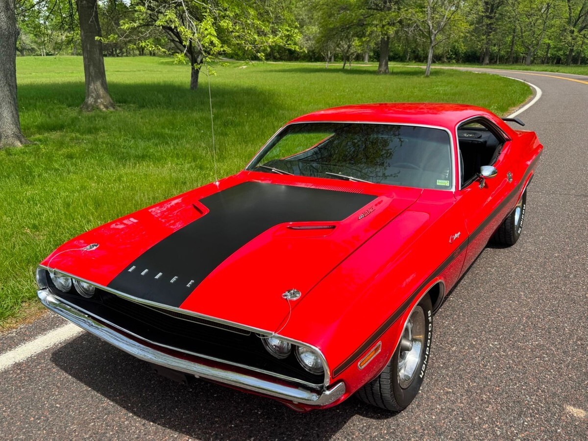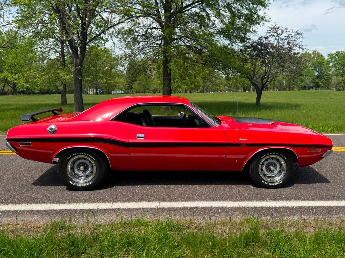TODAY WE PRESENT THIS BEAUTIFUL 1970 DODGE CHALLENGER R/T 440 6 PACK V-CODE TRIBUTE. FINISHED IN A BEAUTIFUL RED EXTERIOR WITH LASER STRAIGHT SIDES AND BLACK R/T STRIPING SHE INCLUDES A SOLID UNDERCARRIAGE WITH NO KNOWN ISSUES. THE BLACK INTERIOR FEATURES POWER FRONT DISC BRAKES, BUCKET SEATS, RALLEY DASH WITH WORKING TACHOMETER, CENTER CONSOLE AND HIDDEN ROCKFORD FOSGATE STEREO WITH REAR SUBWOOFER. THE POWER IS SUPPLIED BY A 440 MAGNUM V8 ENGINE WITH A 6 PACK SETUP MATED TO A HEMI 4 SPEED MANUAL TRANSMISSION AND DANA 60 REAREND WITH 4:10 GEARS. THE CAR RUNS STRONG AND GETS LOOKS WHEREVER YOU TRAVEL. PLEASE FEEL FREE TO CALL ASK QUESTIONS OR MAKE AN OFFER ANYTIME @ 314-941-5226