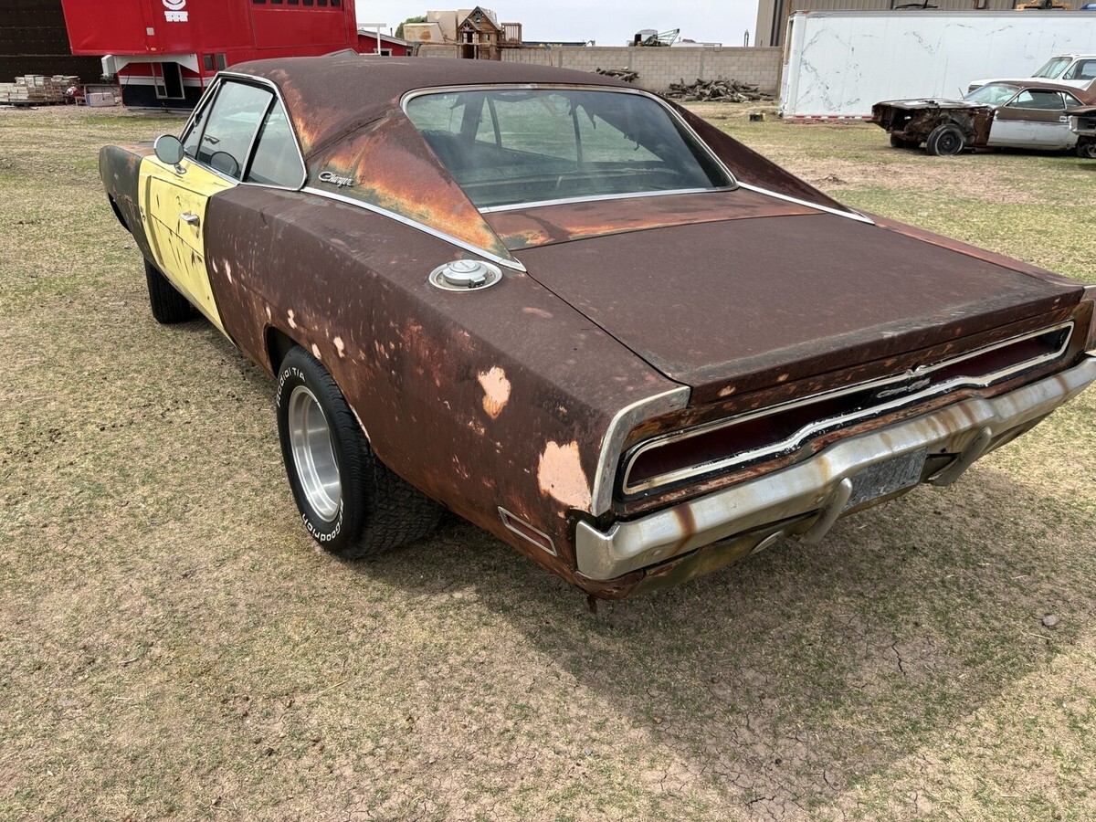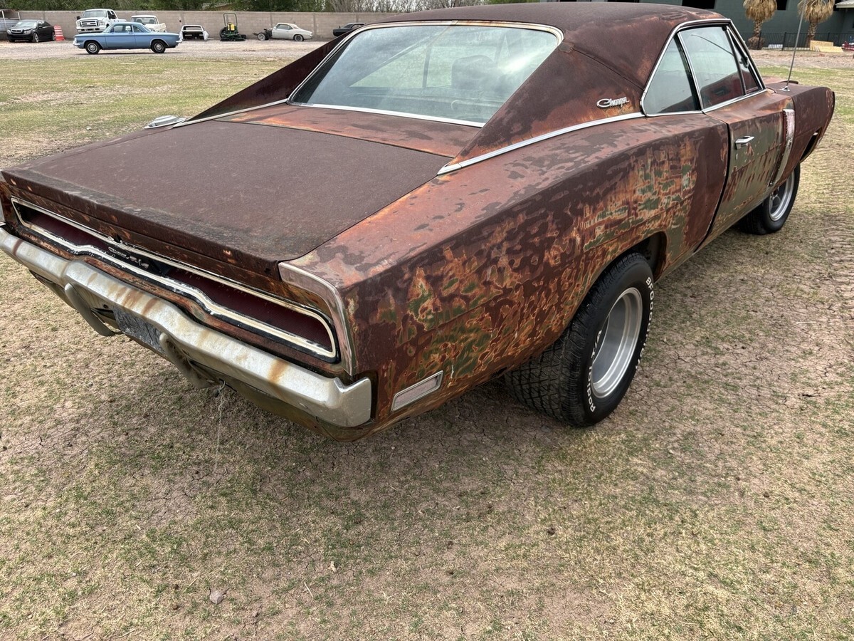 It’s a project needs work but has potential still has fender tag, no engine or transmission on it but I still have contact info from previous owner who has the matching numbers engine running and driving in another charger and is willing to sell. It’s an original R/T 440 automatic car with vinyl top. Has dings here and ther, some surface rust not bad only trunk pan does need work other stuff is minor . What you see is what you get will come with original wheels not ones pictured. Any questions feel free to contact me