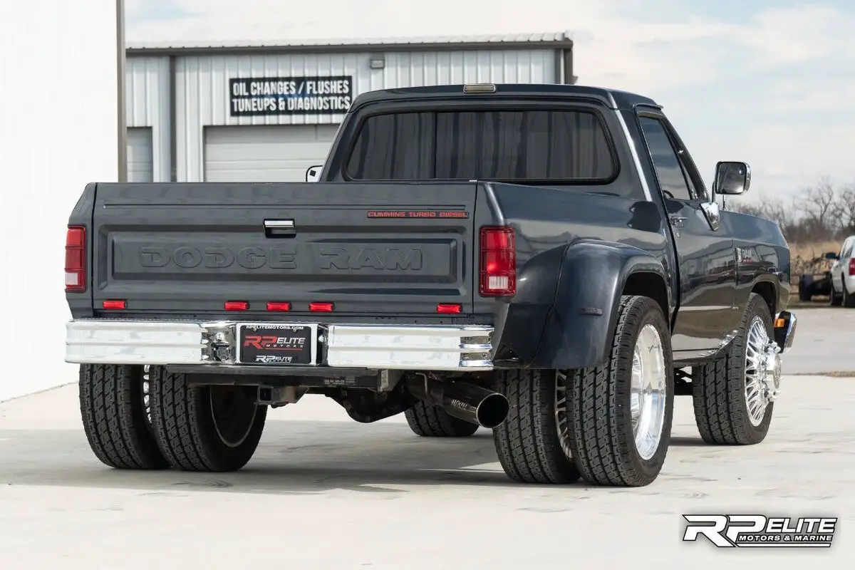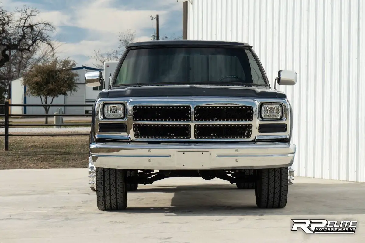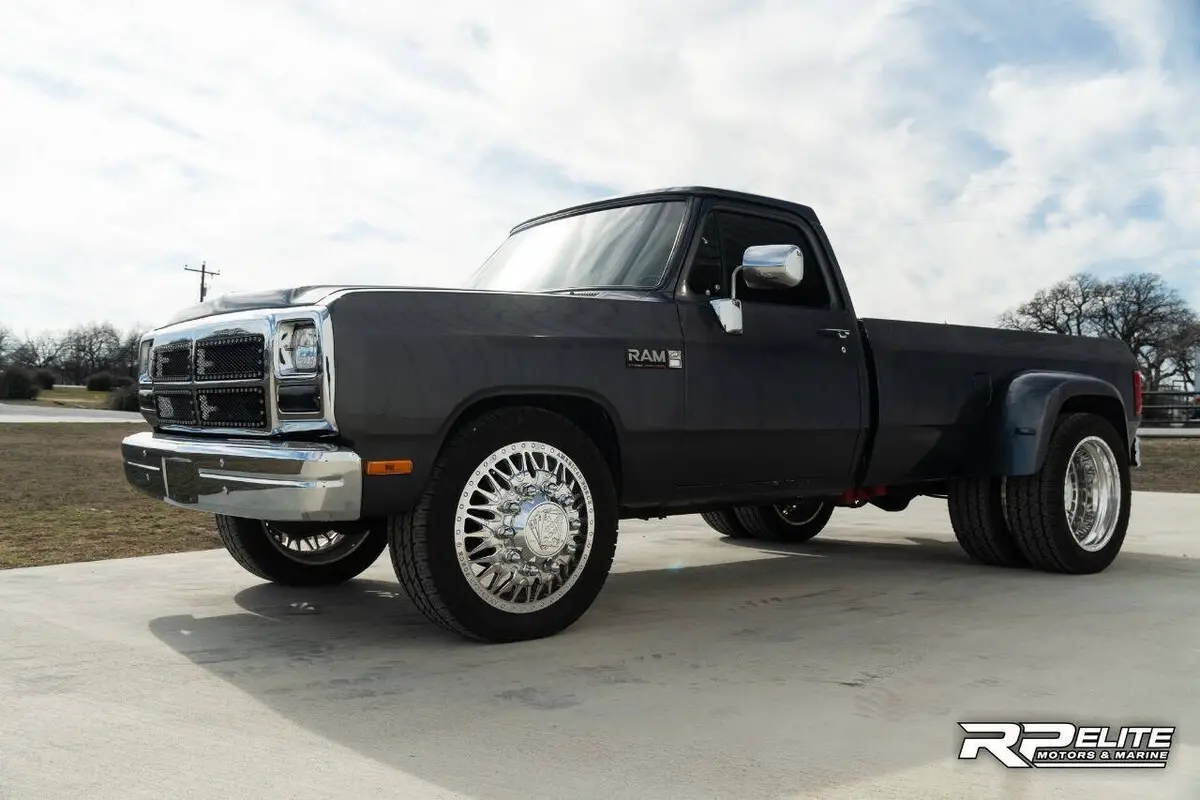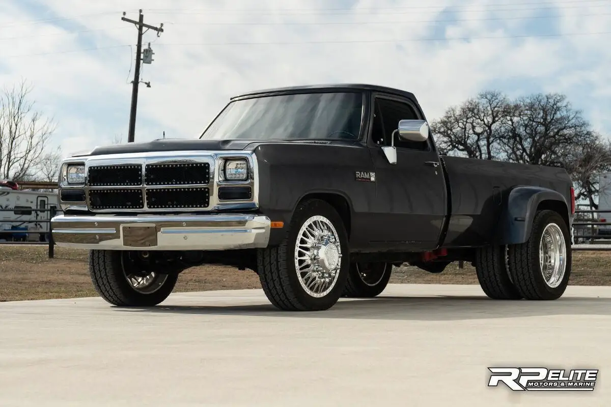 1990 Dodge D350 • Painted by Litzenberg Body Shop in Las Cruces, NM • ATS transmission • B&W turn over hitch • Airbag kit with remote • 22 American Force Wheels • LT285/50R22 Nitto Dura Grappler Tires all around • Black Tie Fab fuel pump • P7100 fuel pump from Farrels Diesel • Custom made compound turbo kit by Black Diamond Diesel • Keating Machine valve cover and timing cover • Industrial injection performance head • Industrial injection fire ring head gasket • Custom interior by Sanchos Audio in El Paso, TX • Autometer Invision gauge cluster • Idit steering column • Billet Specialties steering wheel • LED headlights auto meter pods • Original miles are unknown - Dash shows miles since engine and truck modifications (2,012 miles)
