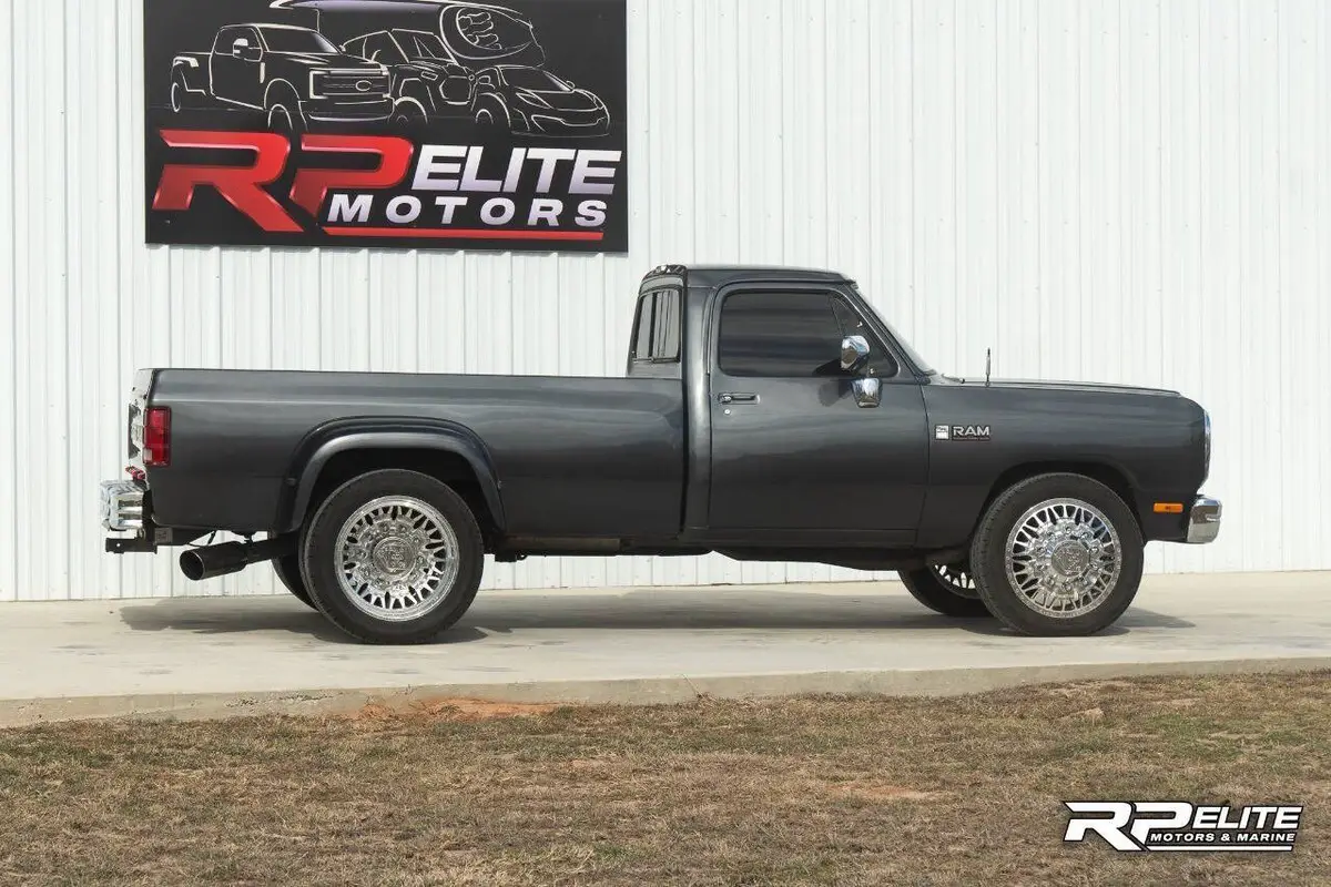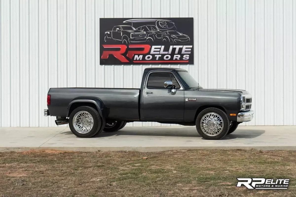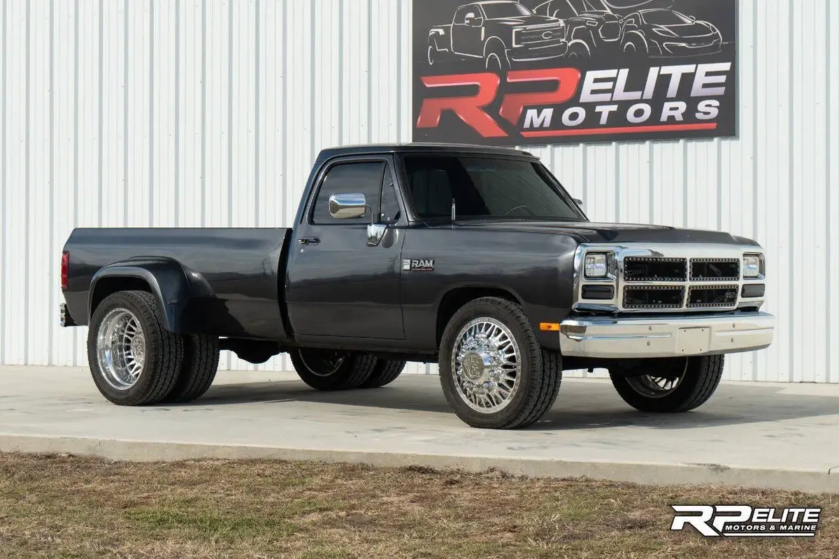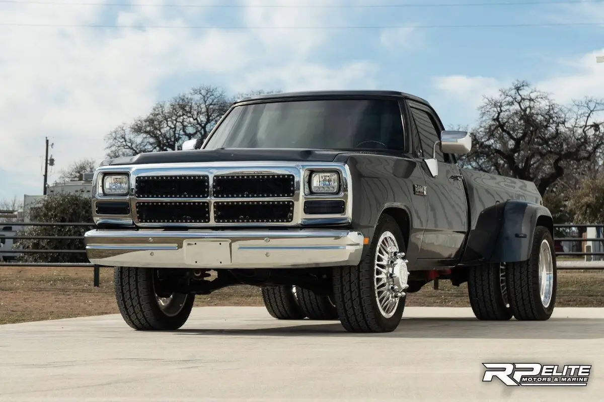 1990 Dodge D350 • Painted by Litzenberg Body Shop in Las Cruces, NM • ATS transmission • B&W turn over hitch • Airbag kit with remote • 22 American Force Wheels • LT285/50R22 Nitto Dura Grappler Tires all around • Black Tie Fab fuel pump • P7100 fuel pump from Farrels Diesel • Custom made compound turbo kit by Black Diamond Diesel • Keating Machine valve cover and timing cover • Industrial injection performance head • Industrial injection fire ring head gasket • Custom interior by Sanchos Audio in El Paso, TX • Autometer Invision gauge cluster • Idit steering column • Billet Specialties steering wheel • LED headlights auto meter pods • Original miles are unknown - Dash shows miles since engine and truck modifications (2,012 miles)