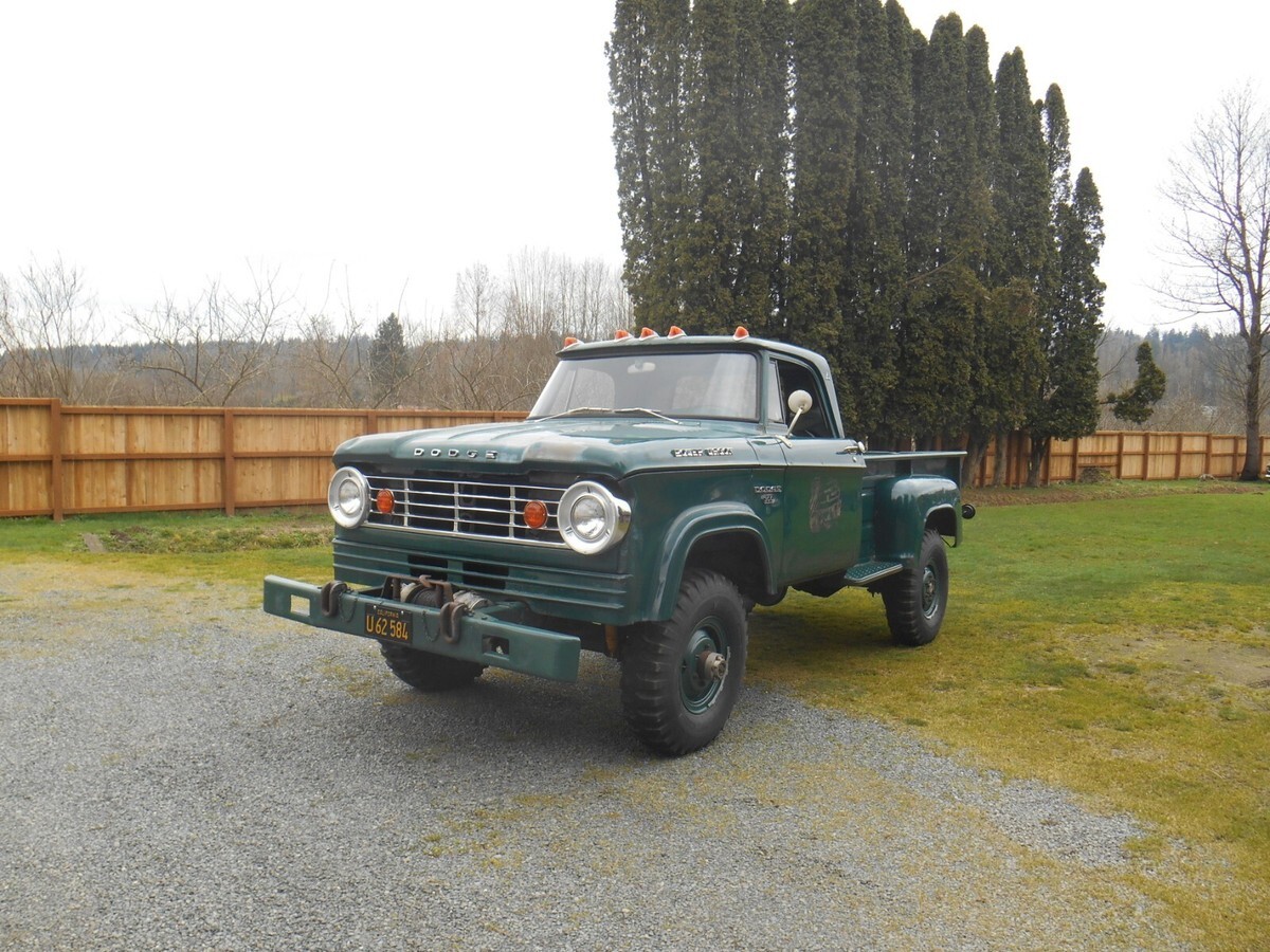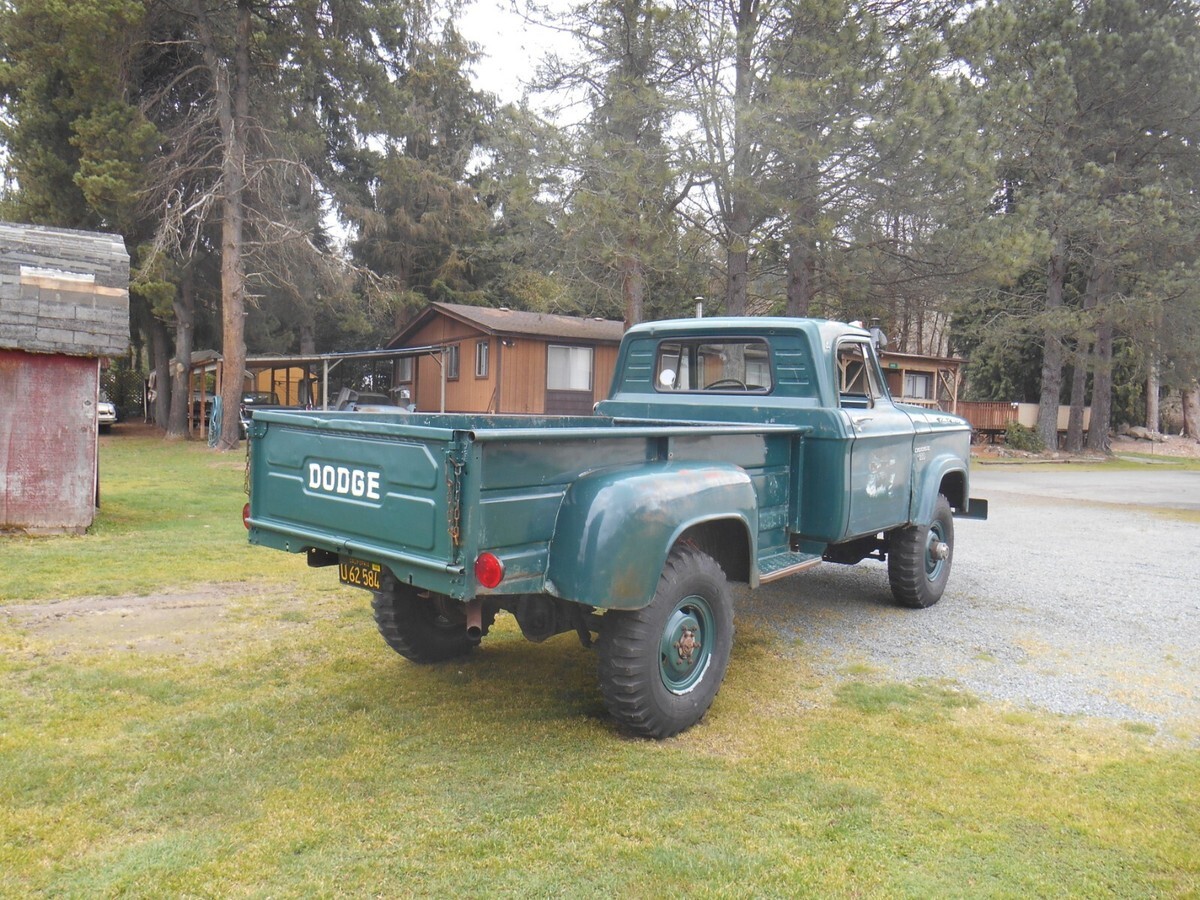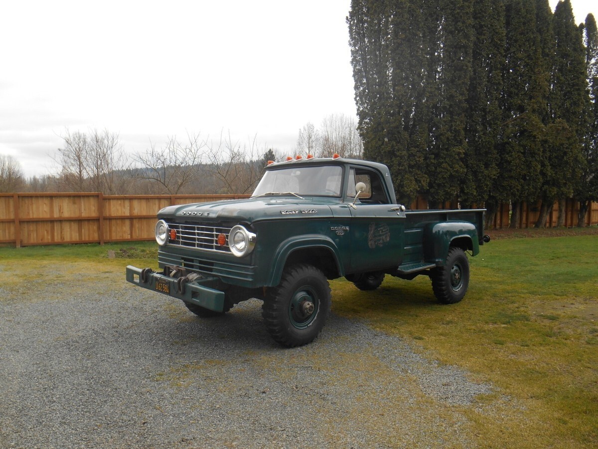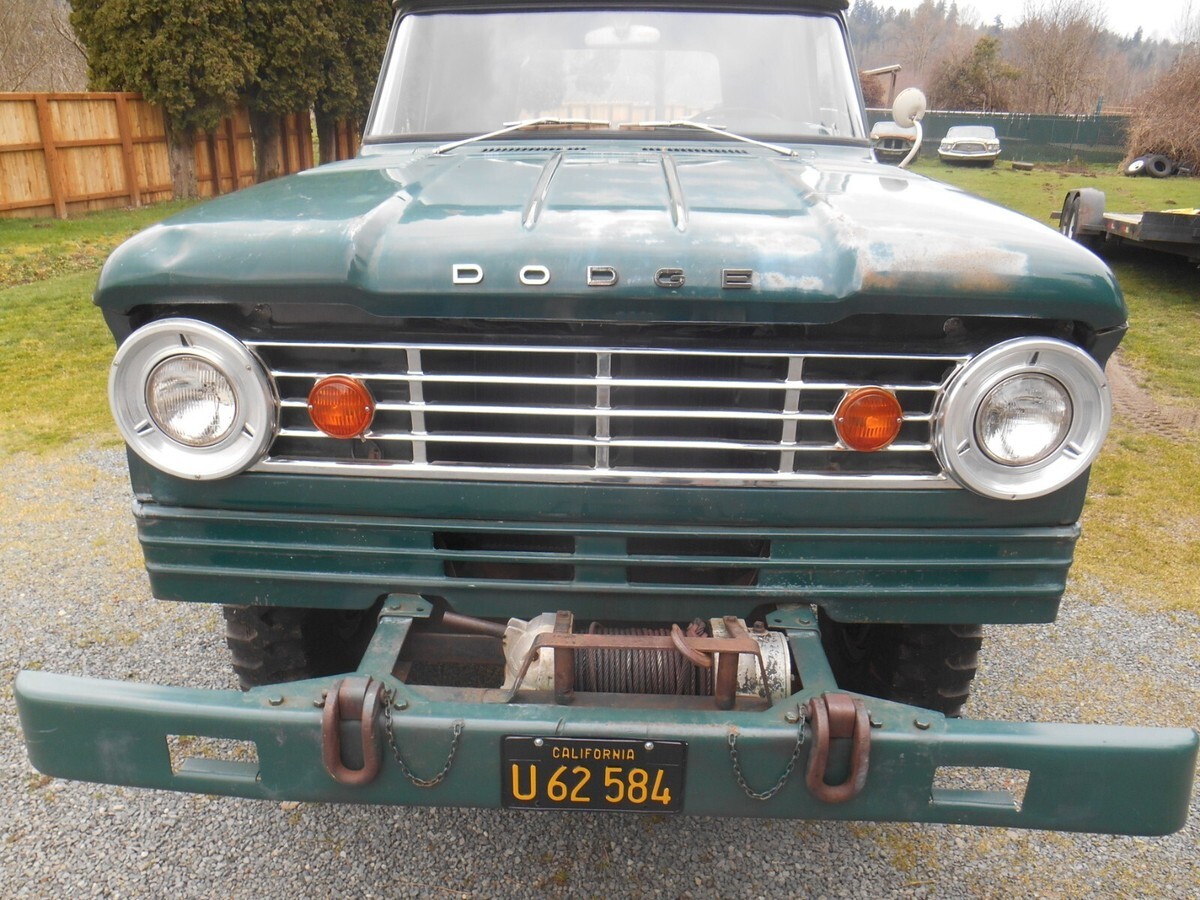 Selling a survivor 1966 Dodge W300 1 Ton Power Wagon 4x4 pickup truck in good clean original running condition.....dark green with green interior......mostly all original paint....hardly any rust.....former New Mexico Power Company truck spent it's whole life in Carlsbad, New Mexico where sold new.....Poly 318 2bbl, 4 speed, Warn hubs, Braden winch with PTO, power brakes, manual steering, radio delete, cab lites, 4.88 Trac Lock....everything works including dash lites, all gauges, wipers, winch, e-brake, etc.....all new brakes, clutch, radiator rebuilt, etc.....runs and drives great.....as nice a survivor 1 ton 4x4 truck you will find.....bank wire works if truck sells....if any questions? 425 219 3663 also comes with lots of extra parts ....truck sold as is