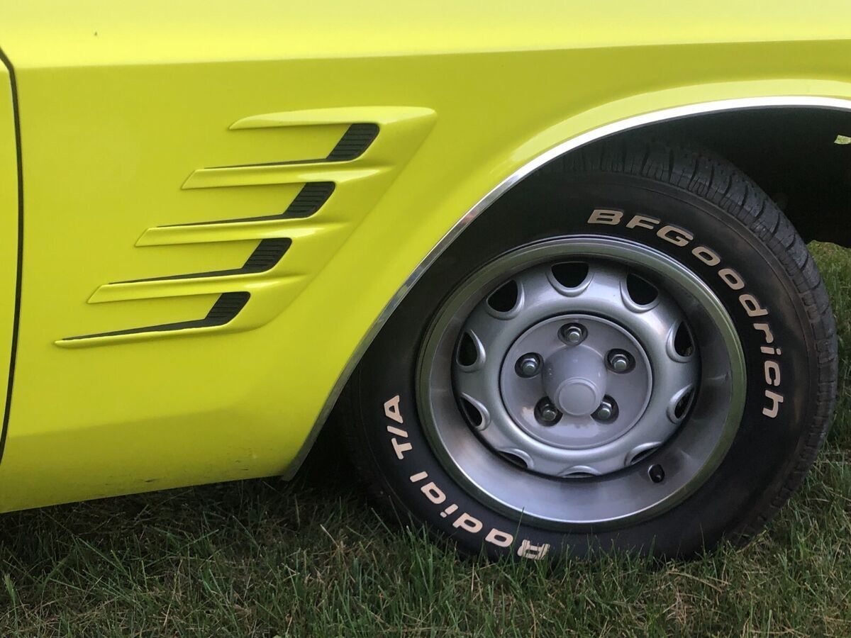 Bodywork and paint professionally done, nearly zero bondo, fully undercoated, new soft top, 1971 Mopar Curious Yellow, windshield, door handles, marker lights, bezels, etc.